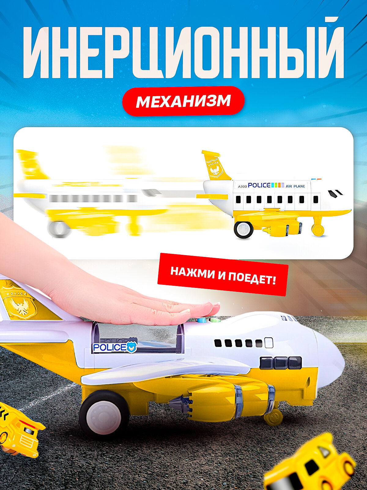 Игровой набор SHARKTOYS "Грузовой самолет", 4 машинки в комплекте, инерционный, со светом и звуком интересное: