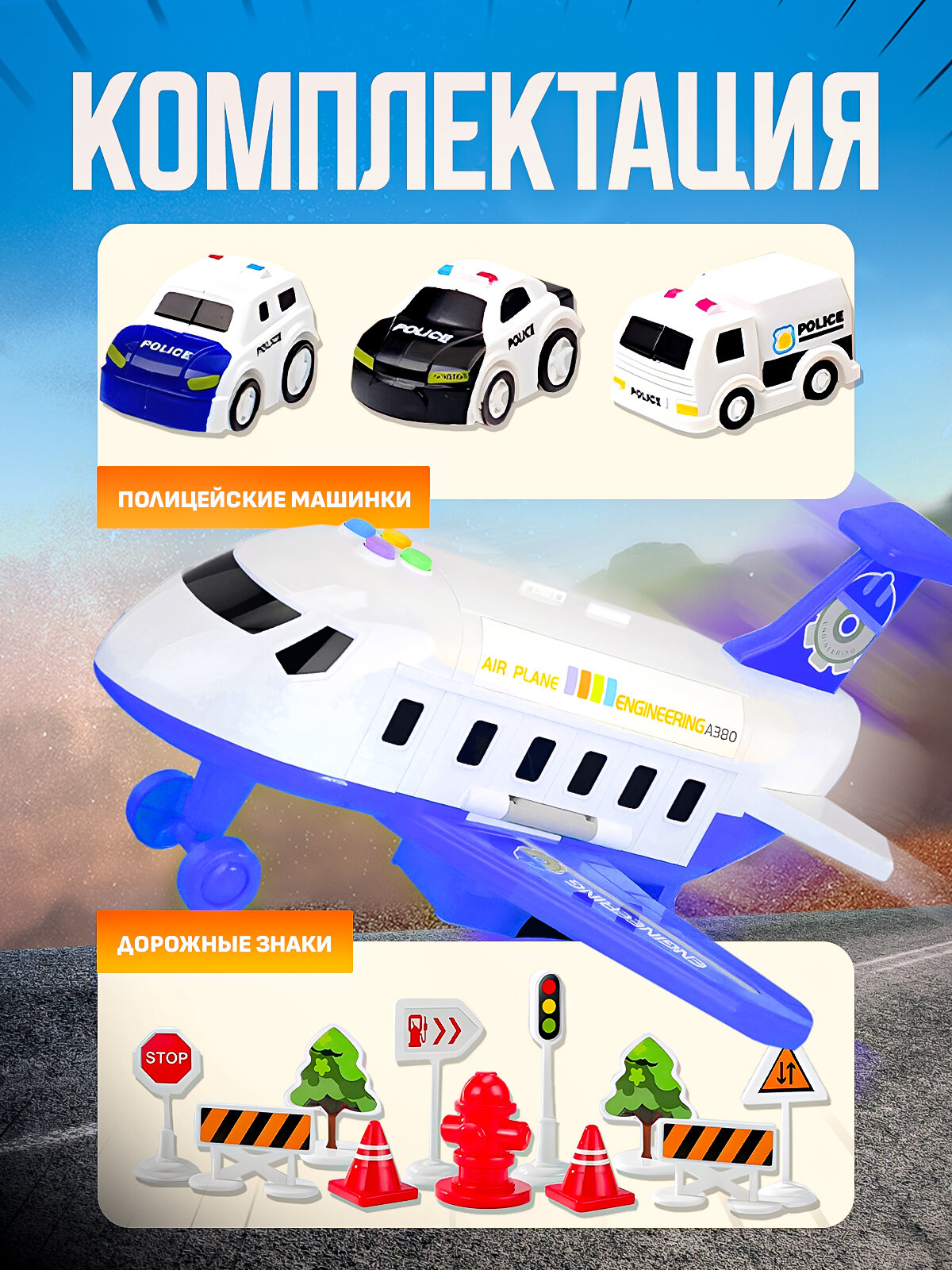 Купить Игровой набор SHARKTOYS Самолет грузовой, 4 машинки, инерционный механизм, световые и звуковые эффекты