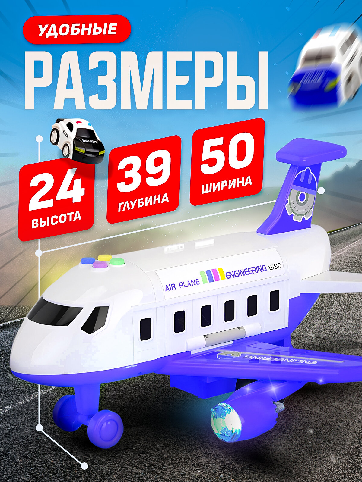 Игровой набор SHARKTOYS Самолет грузовой, 4 машинки, инерционный механизм, световые и звуковые эффекты интересное: