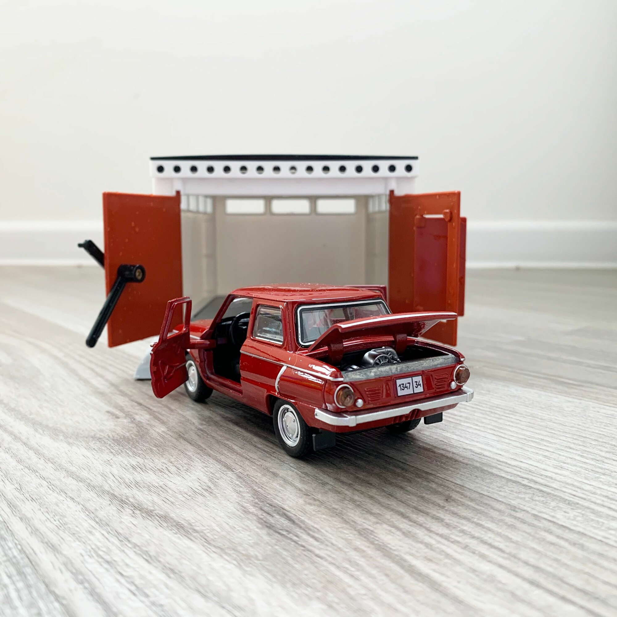 Гараж ретро + машинка модель Запорожец ЗАЗ-968А (12 см, метал, инерция, открытие 2-х дверей, багажника) - бордовый интересное: