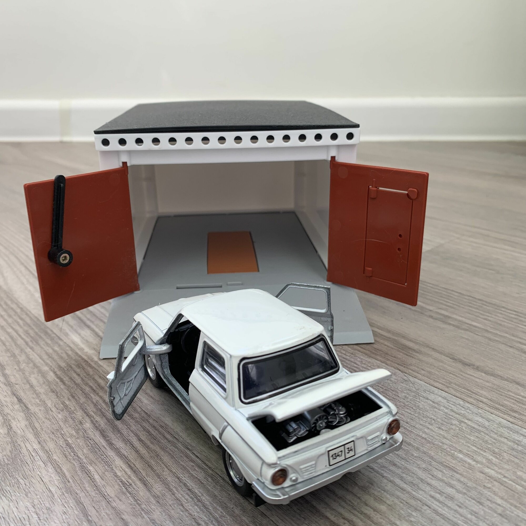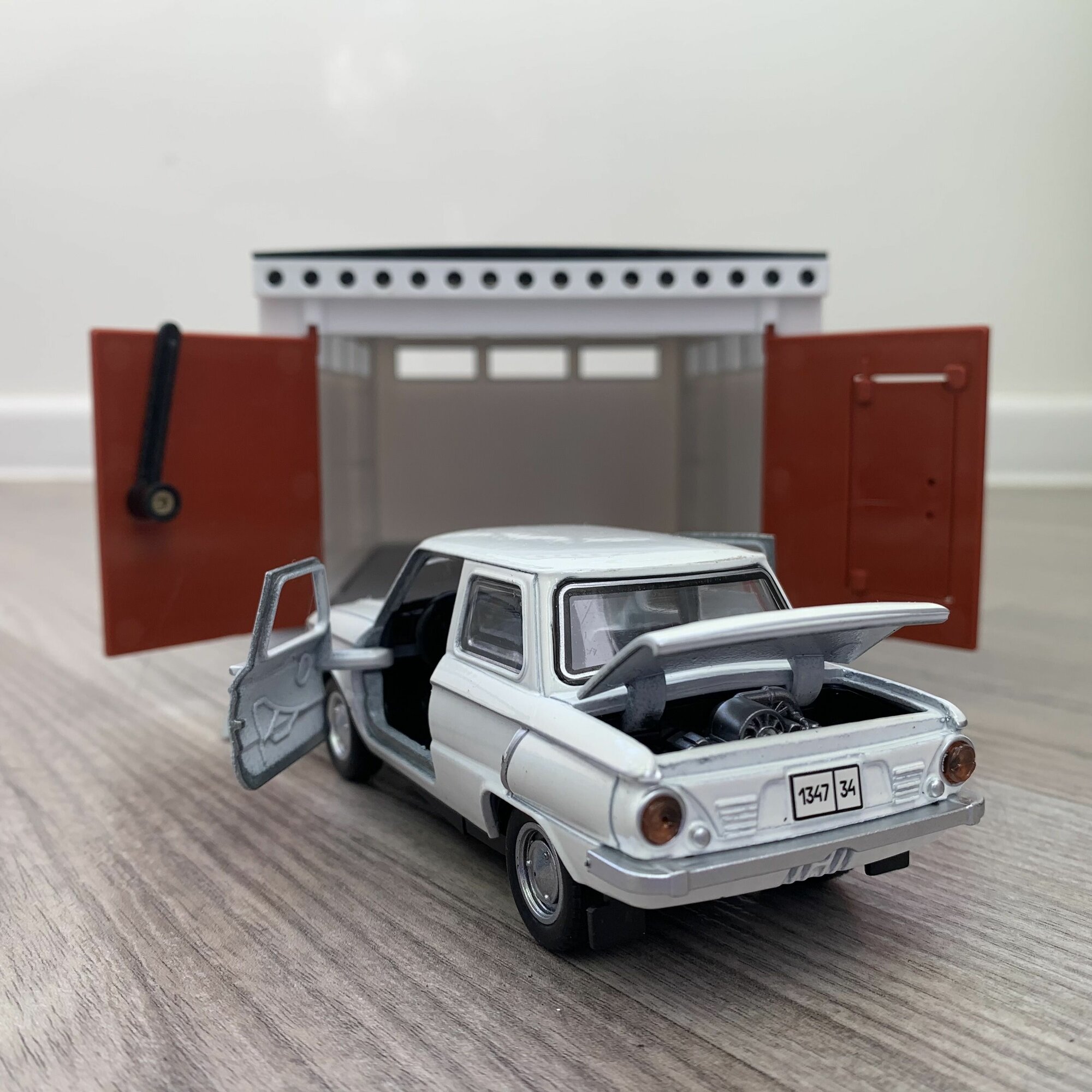 Купить Гараж + машинка модель Запорожец ЗАЗ-968А (12 см, метал, инерция, открытие 2-х дверей, багажника) - белый