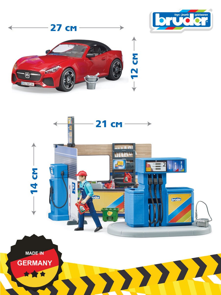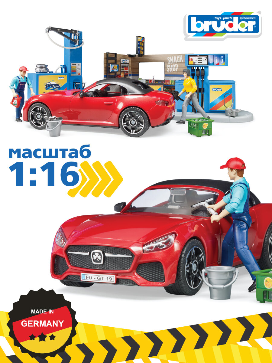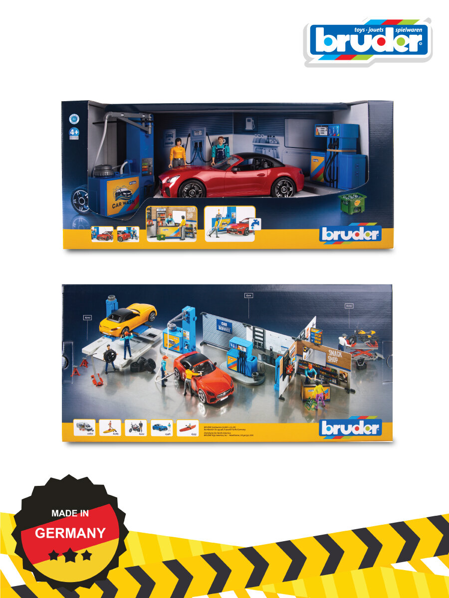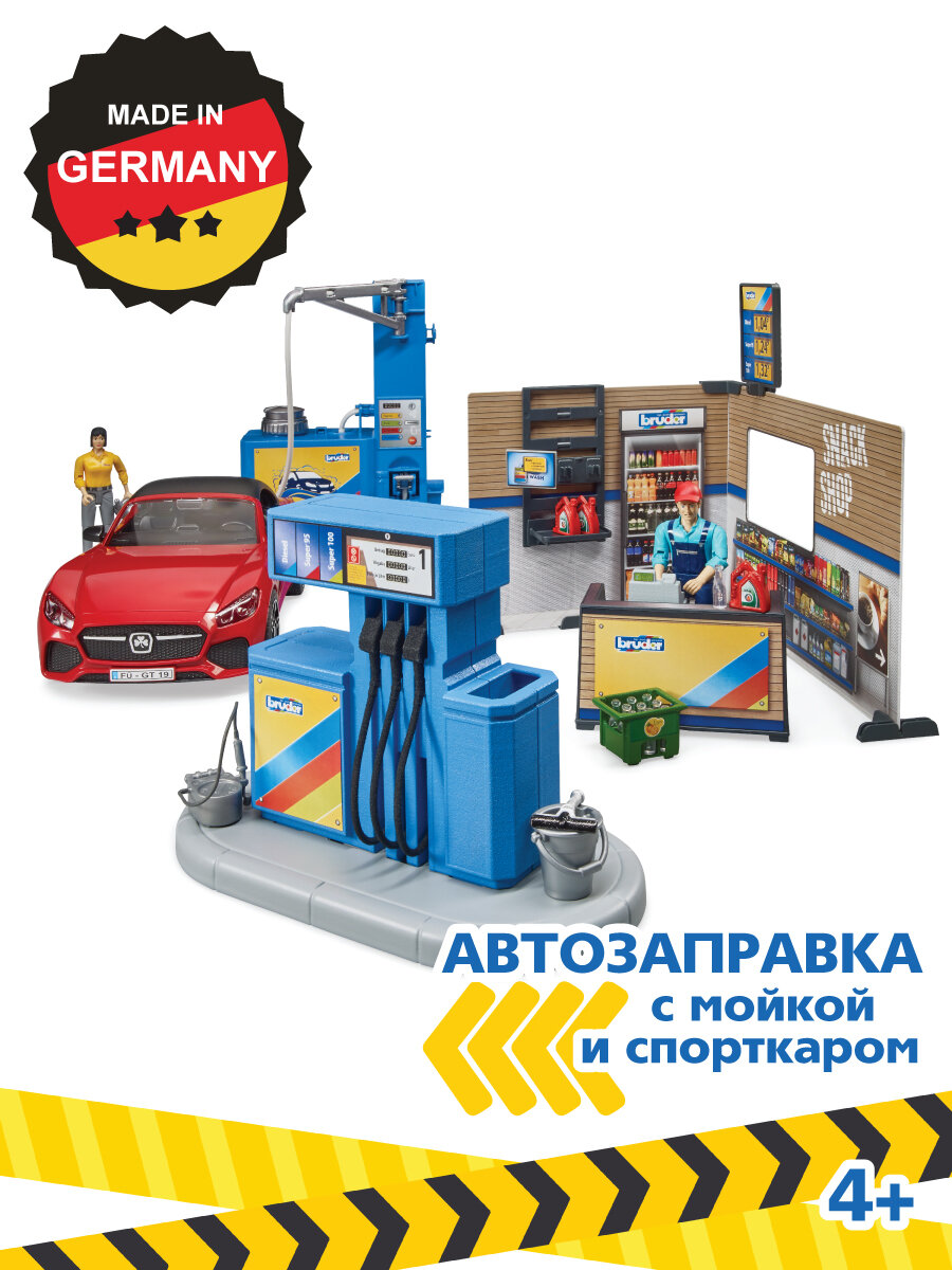 Брудер, набор Автозаправка с автомойкой и аксессуарами, Bruder интересное: