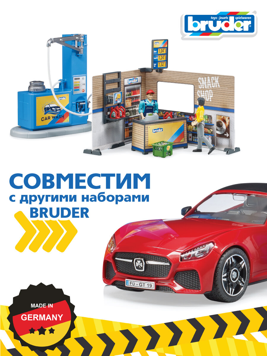 Купить Брудер, набор Автозаправка с автомойкой и аксессуарами, Bruder