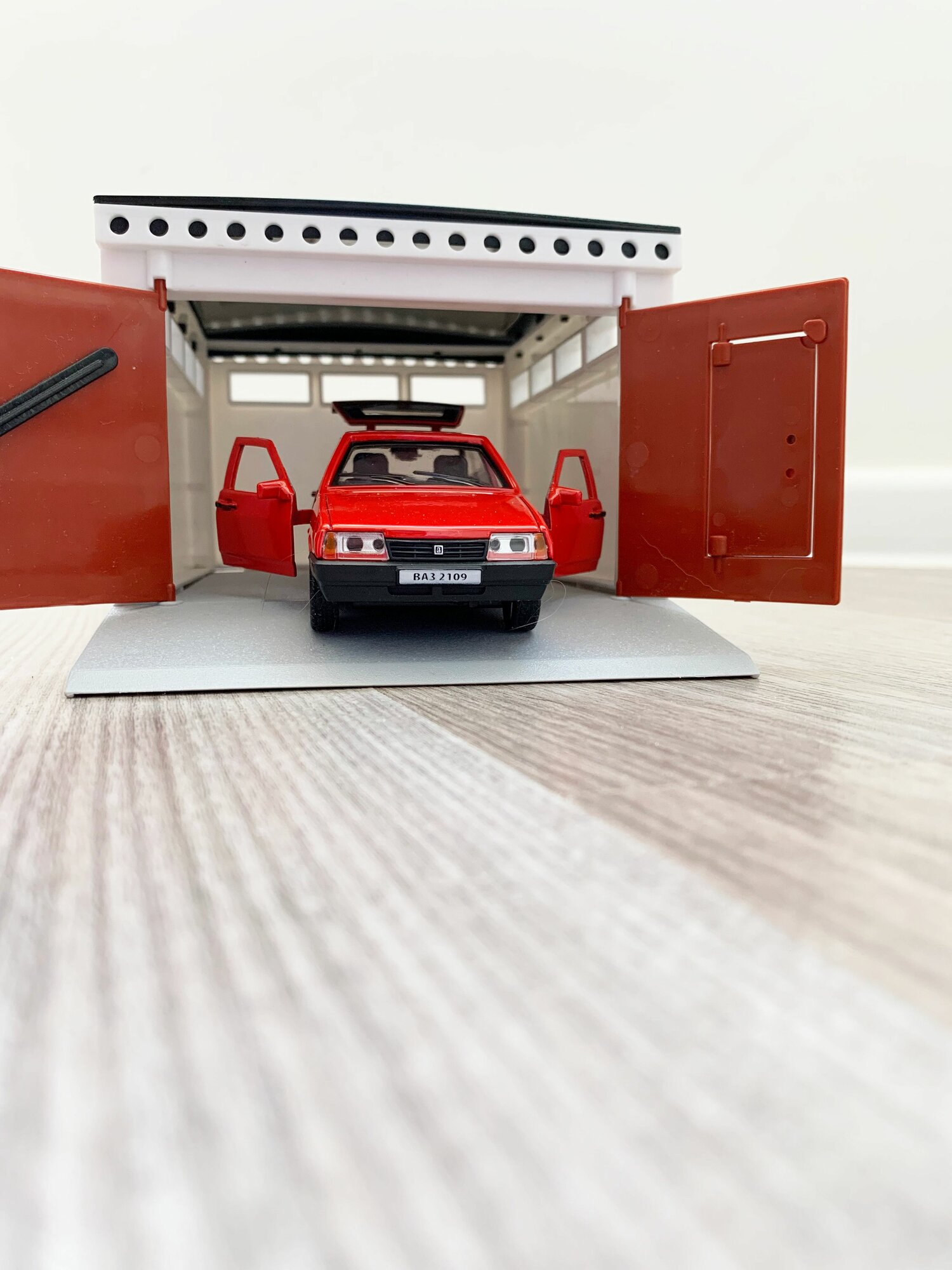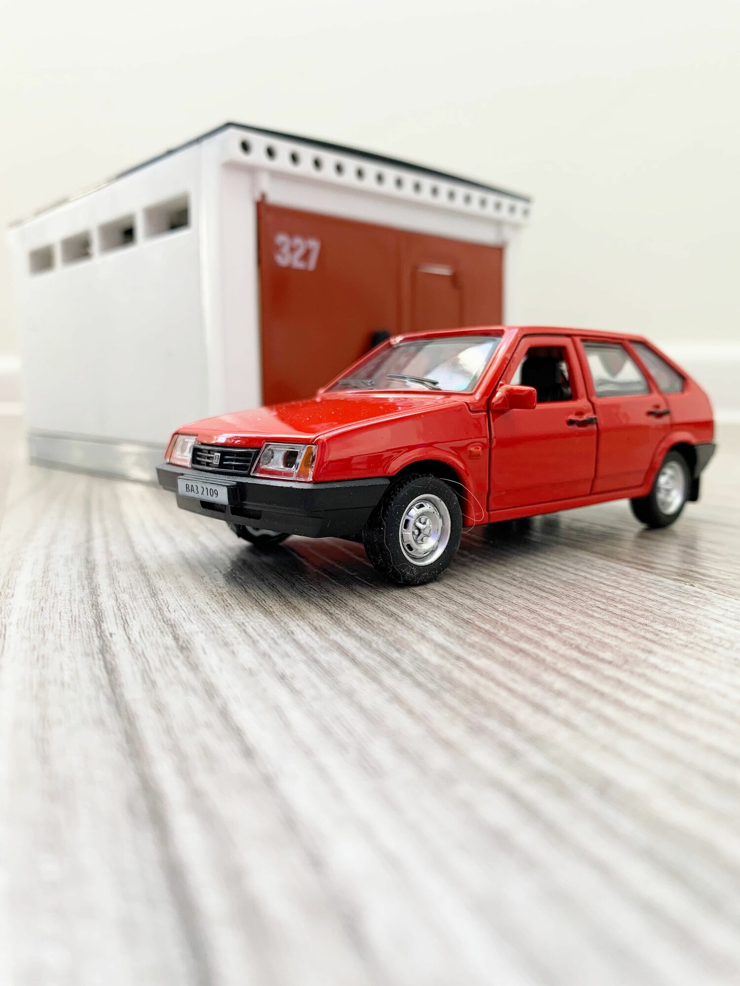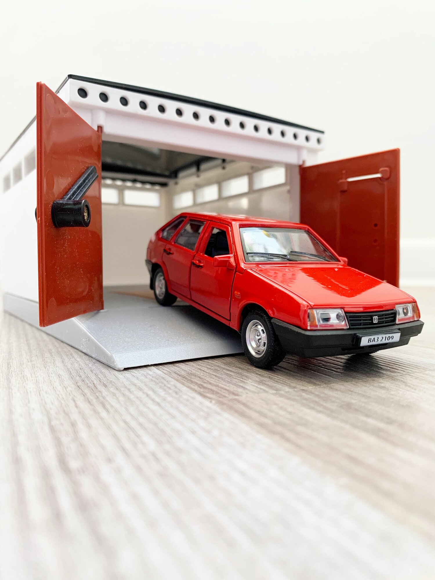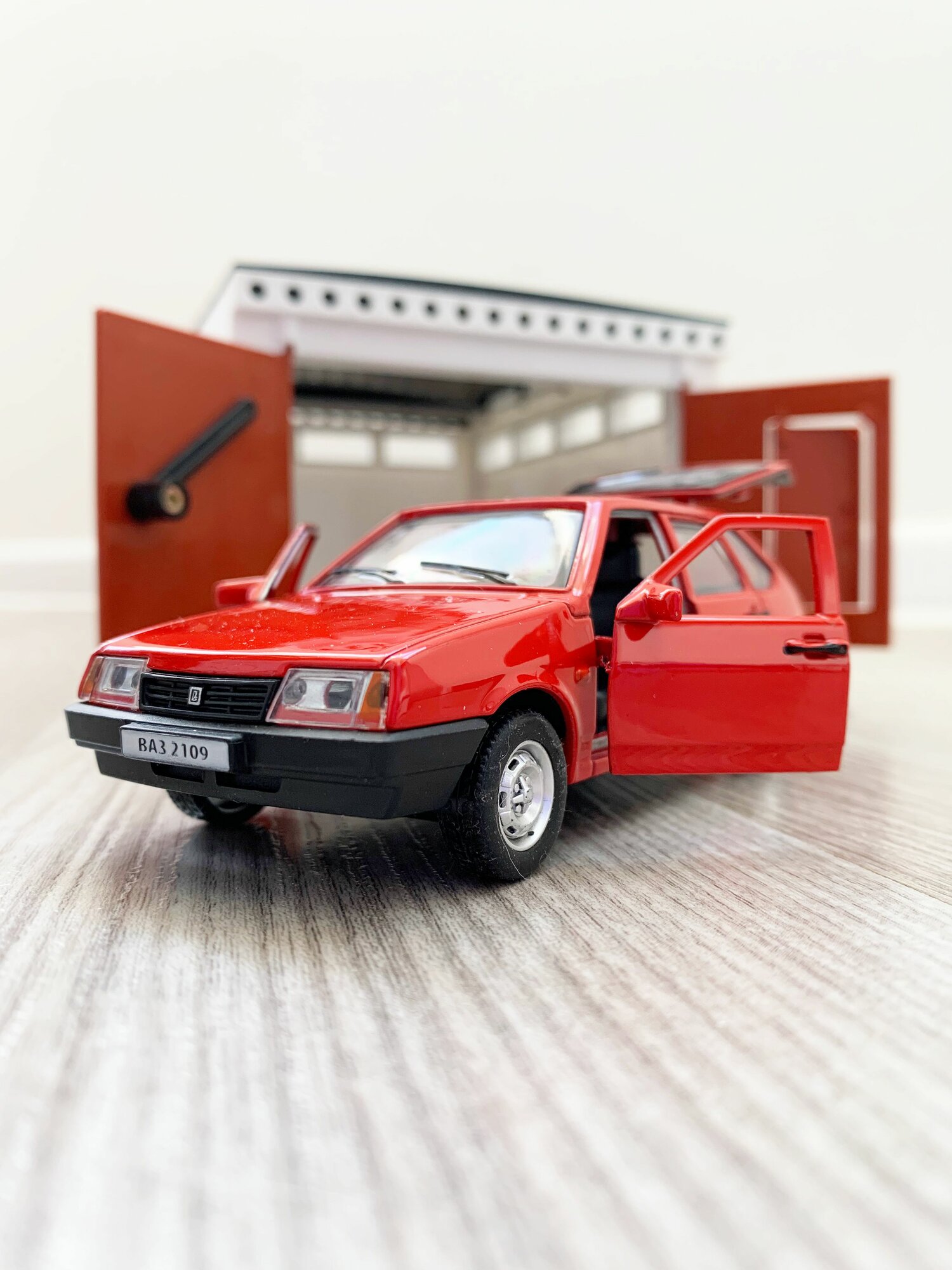 Купить Гараж + машинка модель ВАЗ 2109 (12 см, метал, инерция, открытие 2-х дверей, багажника) - алый