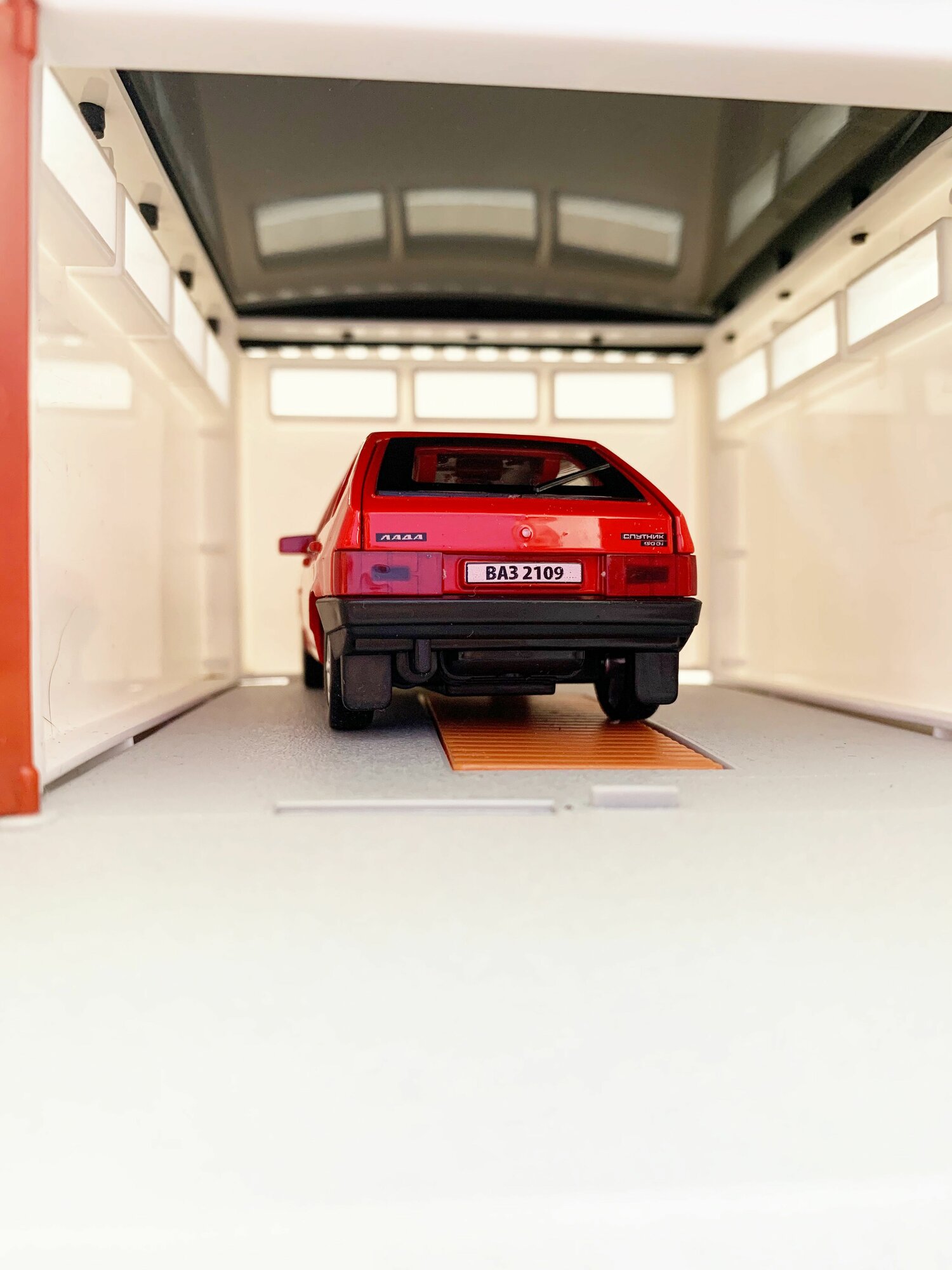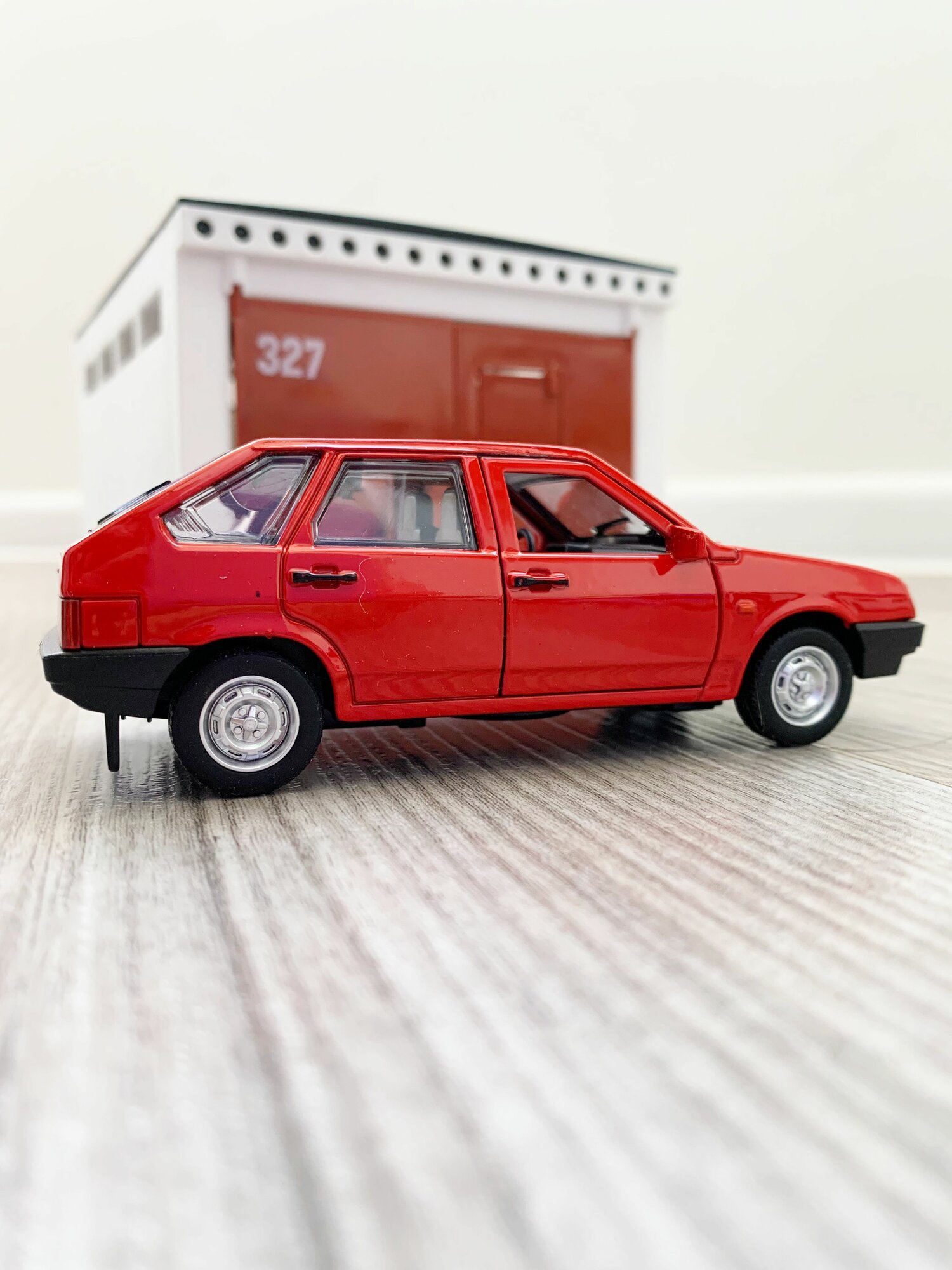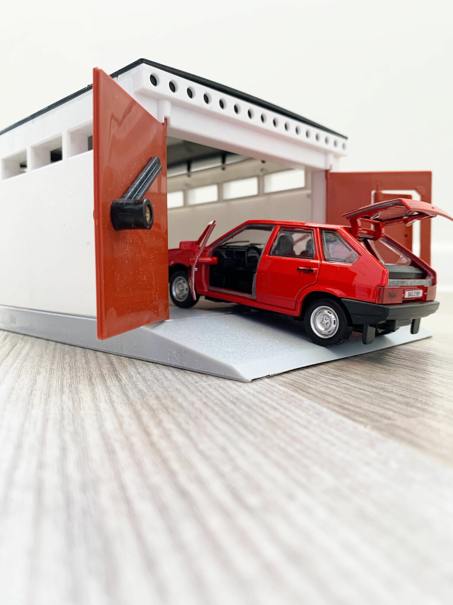 Купить Гараж + машинка модель ВАЗ 2109 (12 см, метал, инерция, открытие 2-х дверей, багажника) - алый