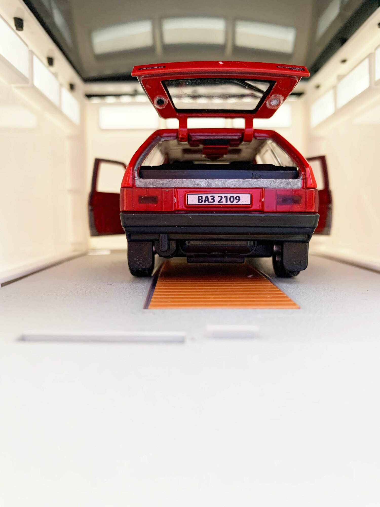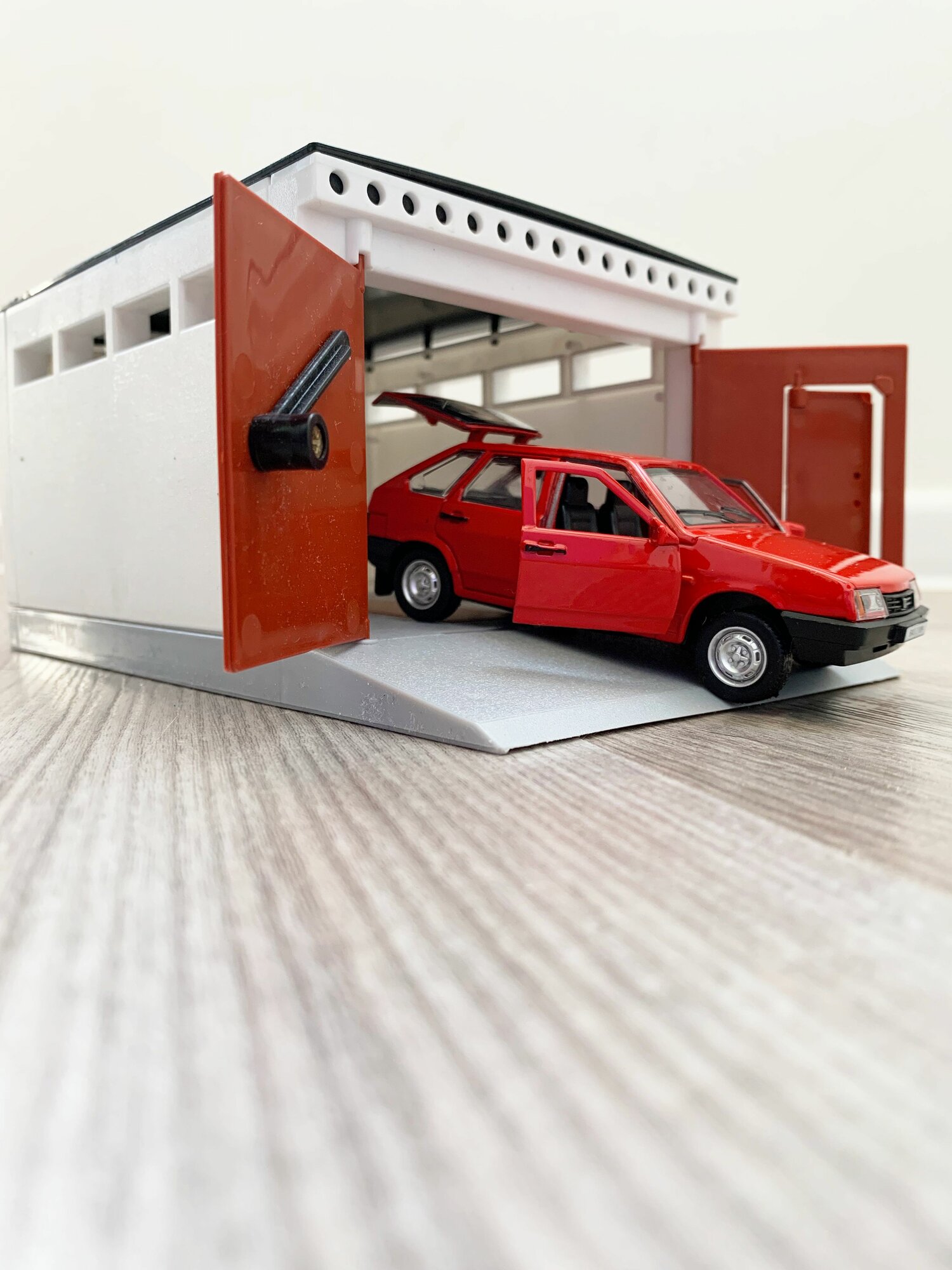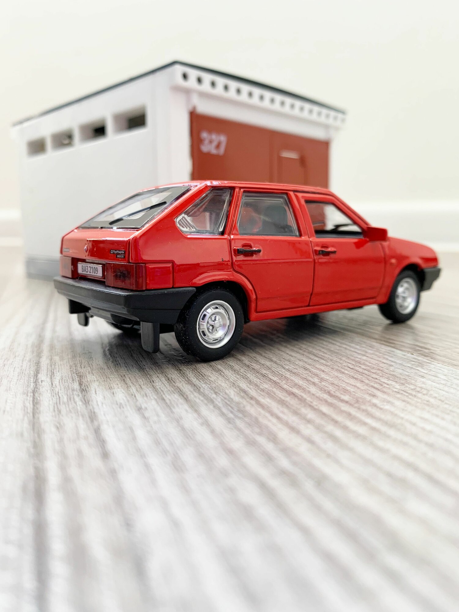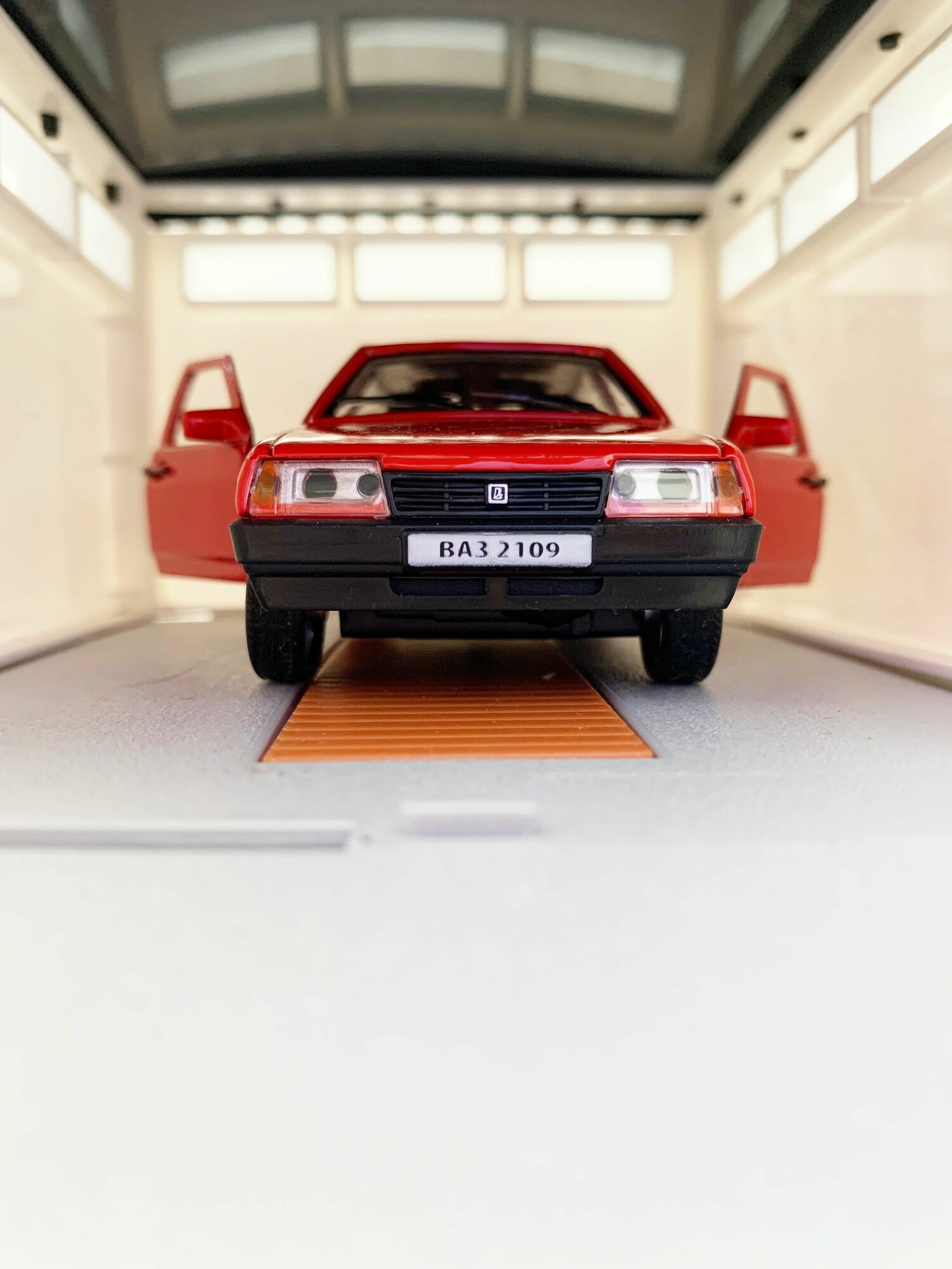 Купить Гараж + машинка модель ВАЗ 2109 (12 см, метал, инерция, открытие 2-х дверей, багажника) - алый