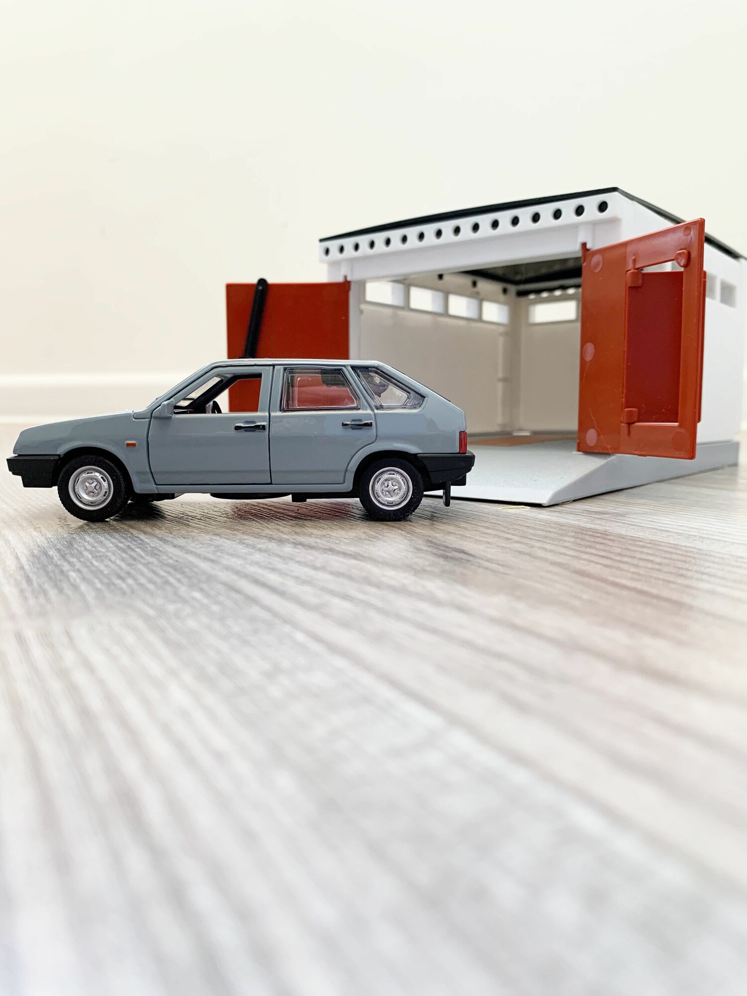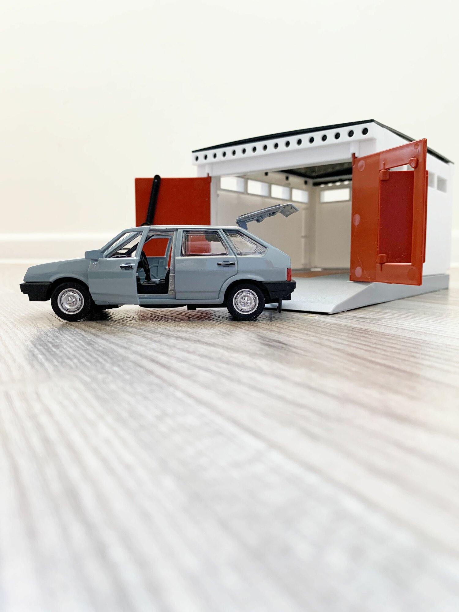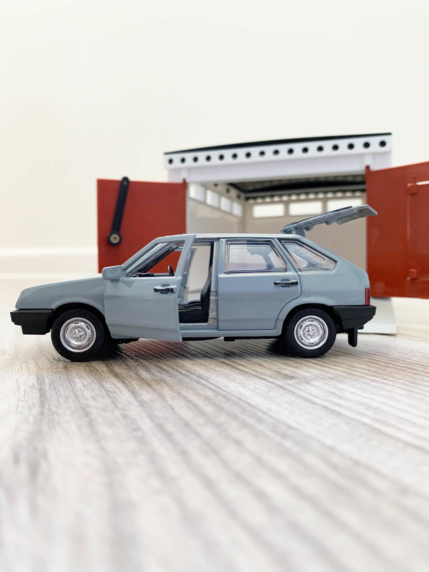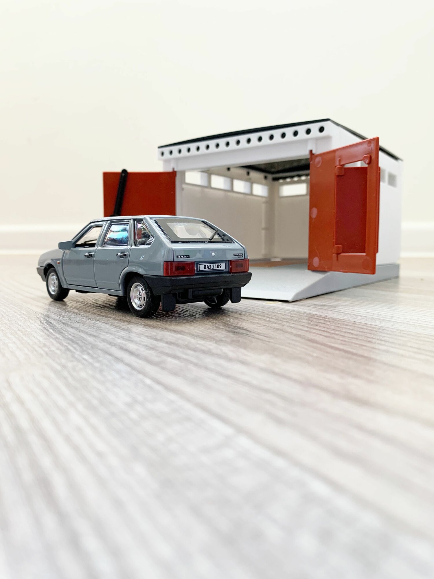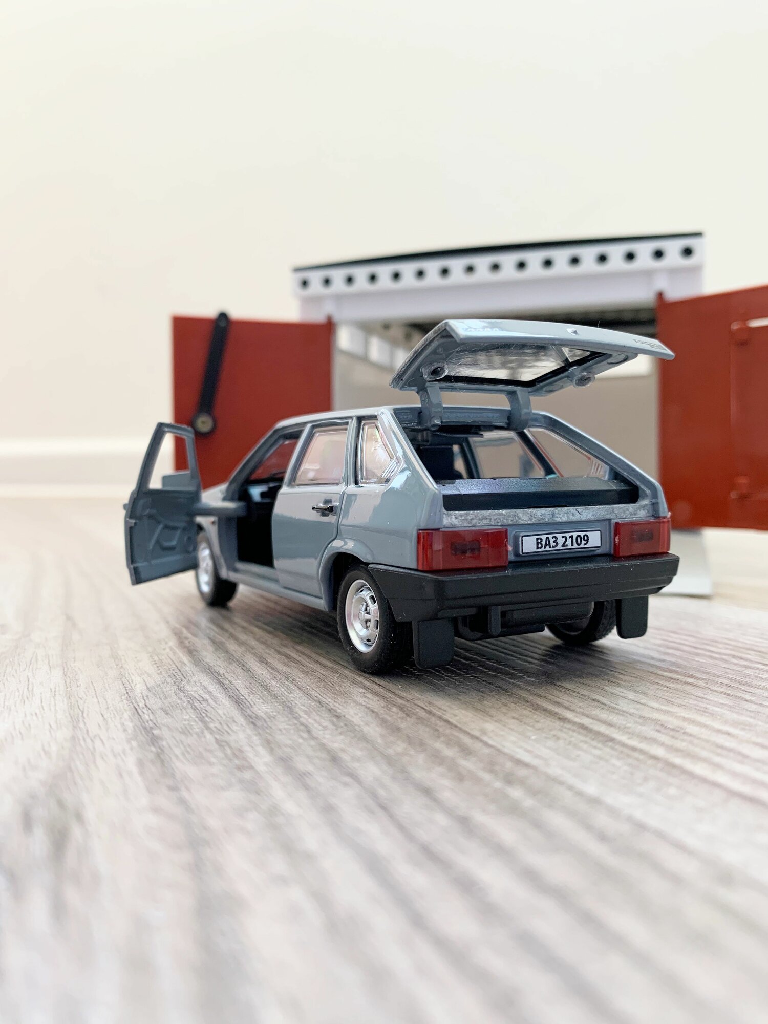 Гараж + машинка модель ВАЗ 2109 (12 см, метал, инерция, открытие 2-х дверей, багажника) - алый