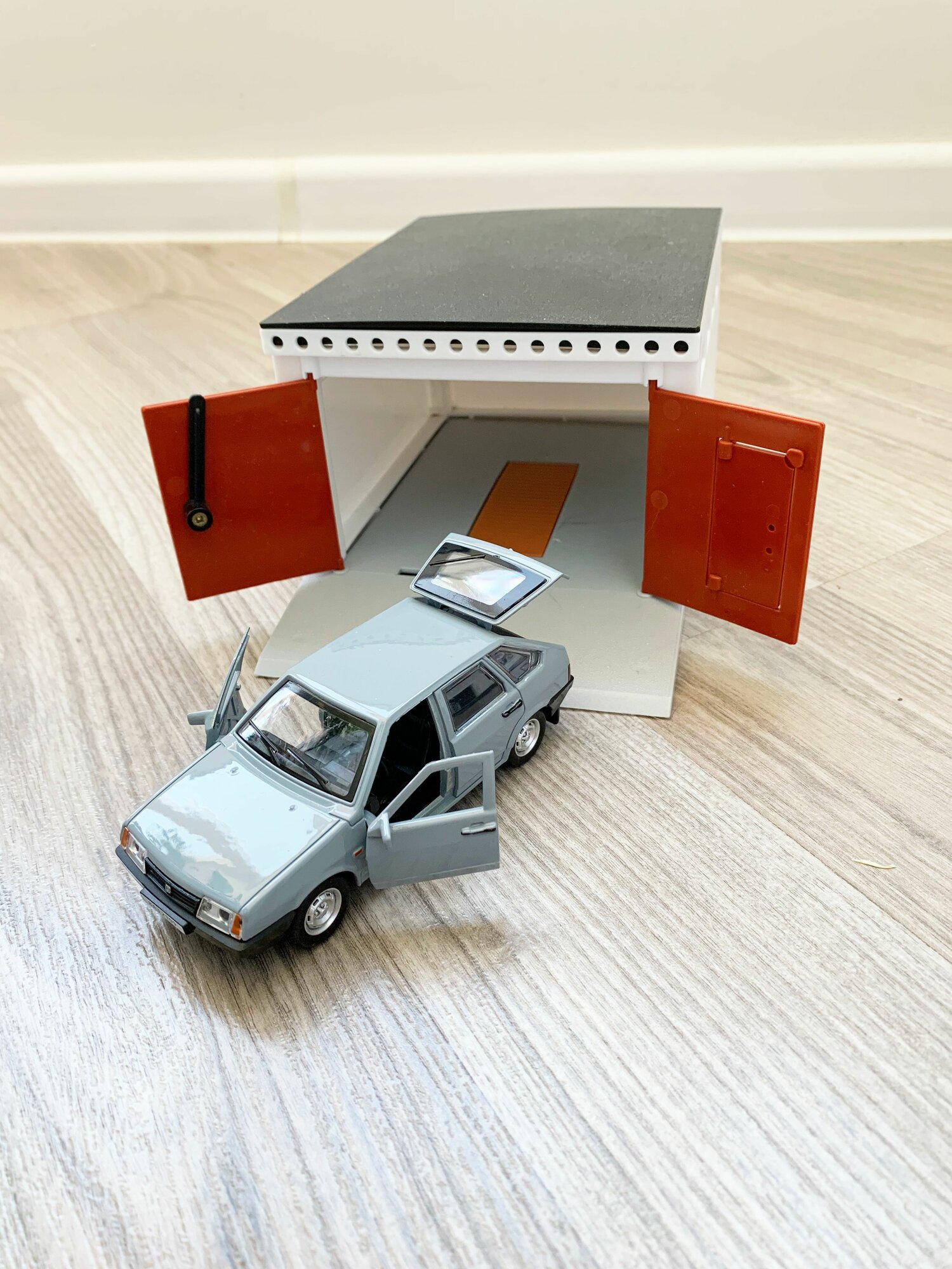 Гараж + машинка модель ВАЗ 2109 (12 см, метал, инерция, открытие 2-х дверей, багажника) - серебряный интересное: