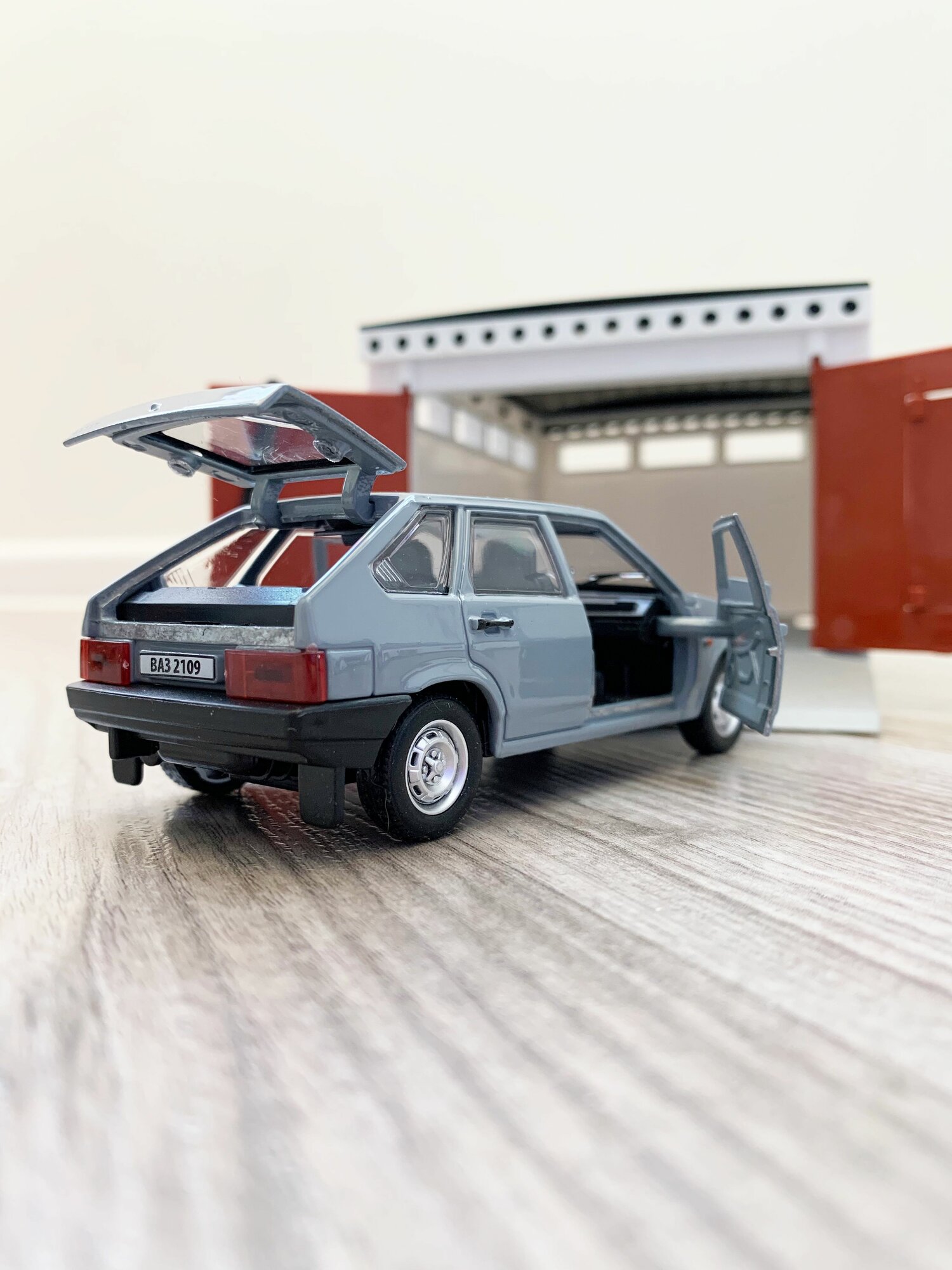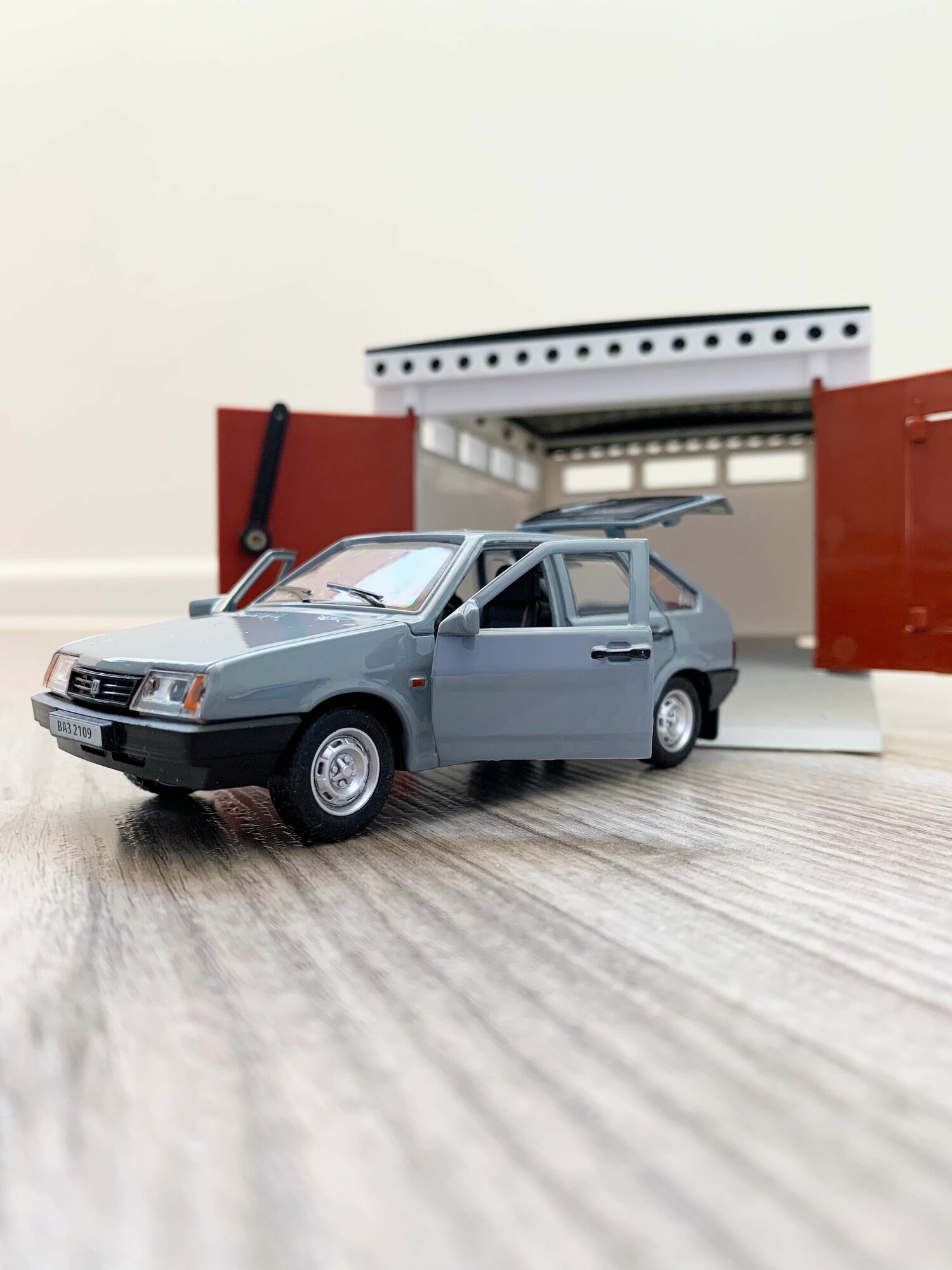 Купить Гараж + машинка модель ВАЗ 2109 (12 см, метал, инерция, открытие 2-х дверей, багажника) - серебряный
