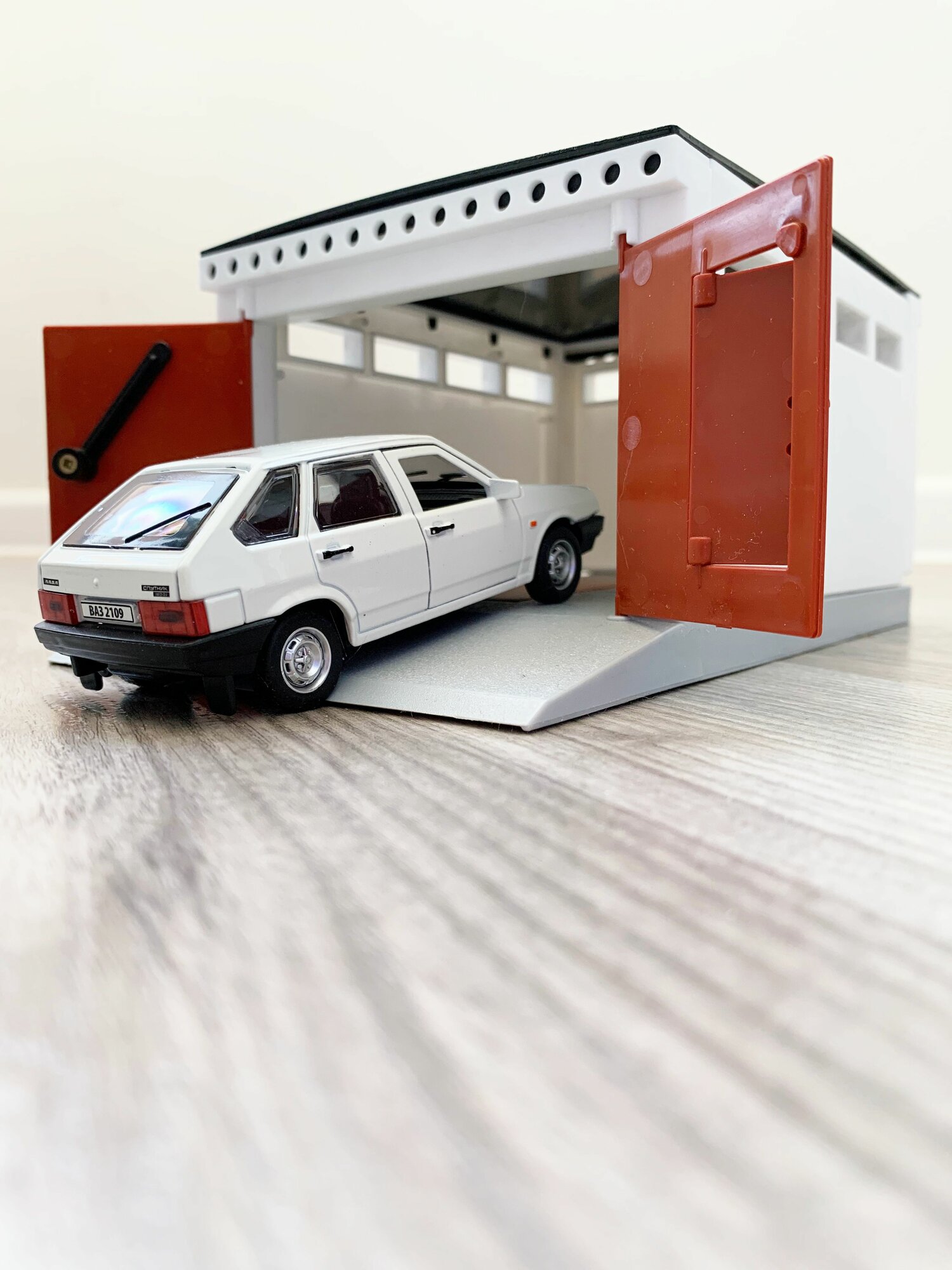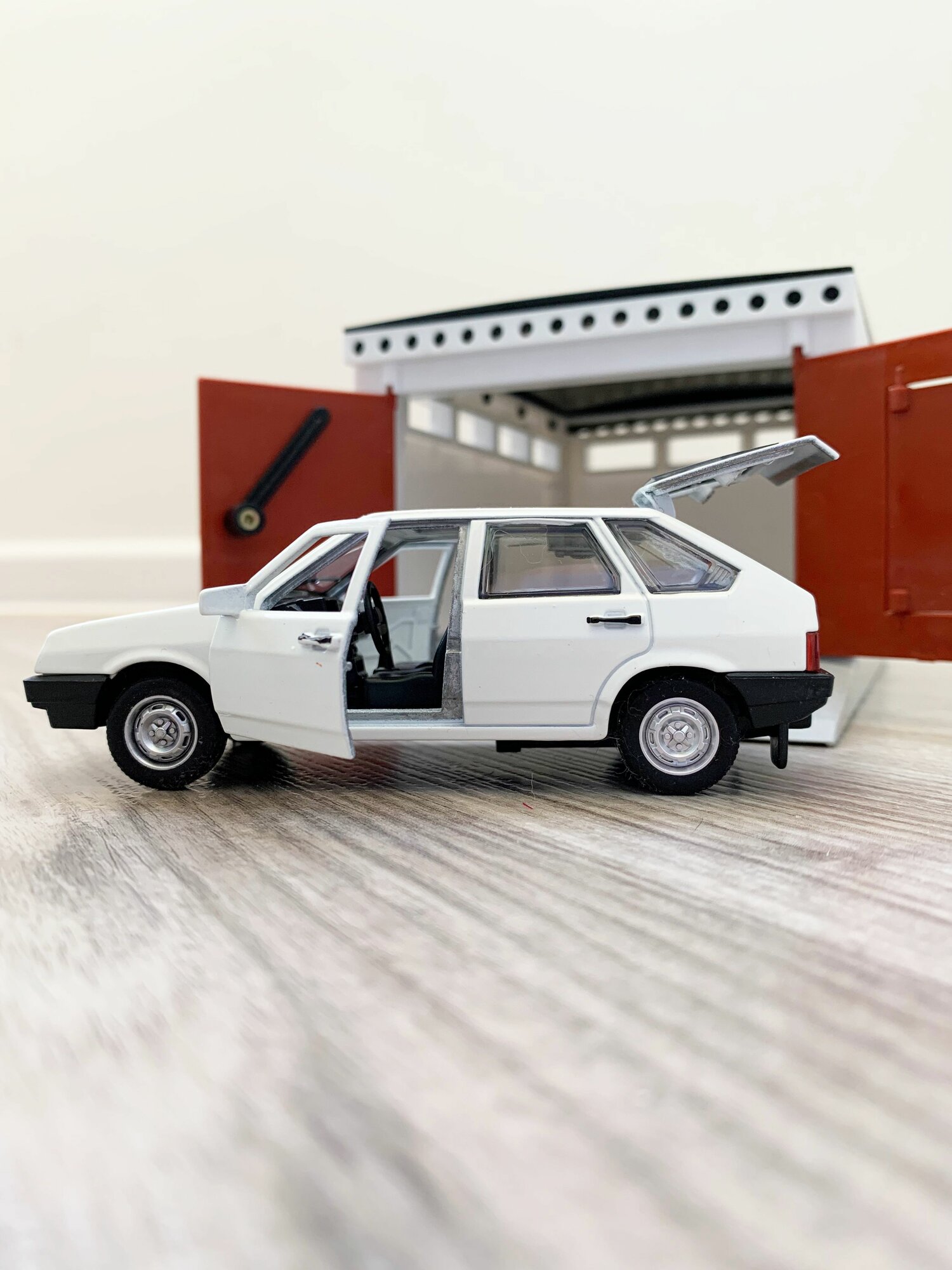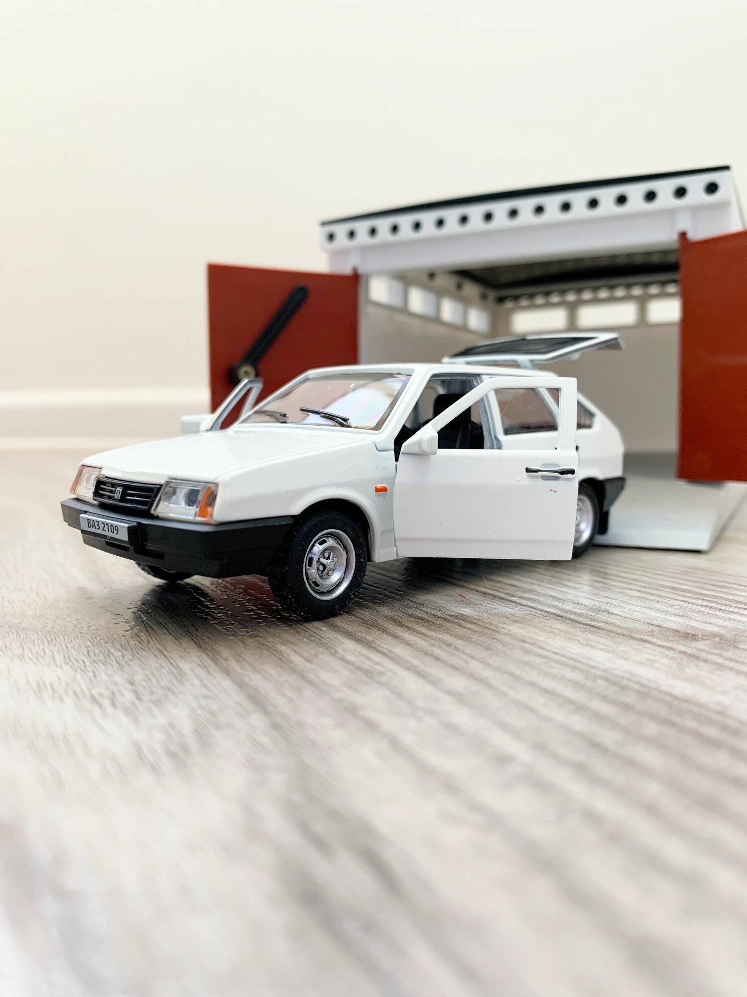 Купить Гараж + машинка модель ВАЗ 2109 (12 см, метал, инерция, открытие 2-х дверей, багажника) - белый