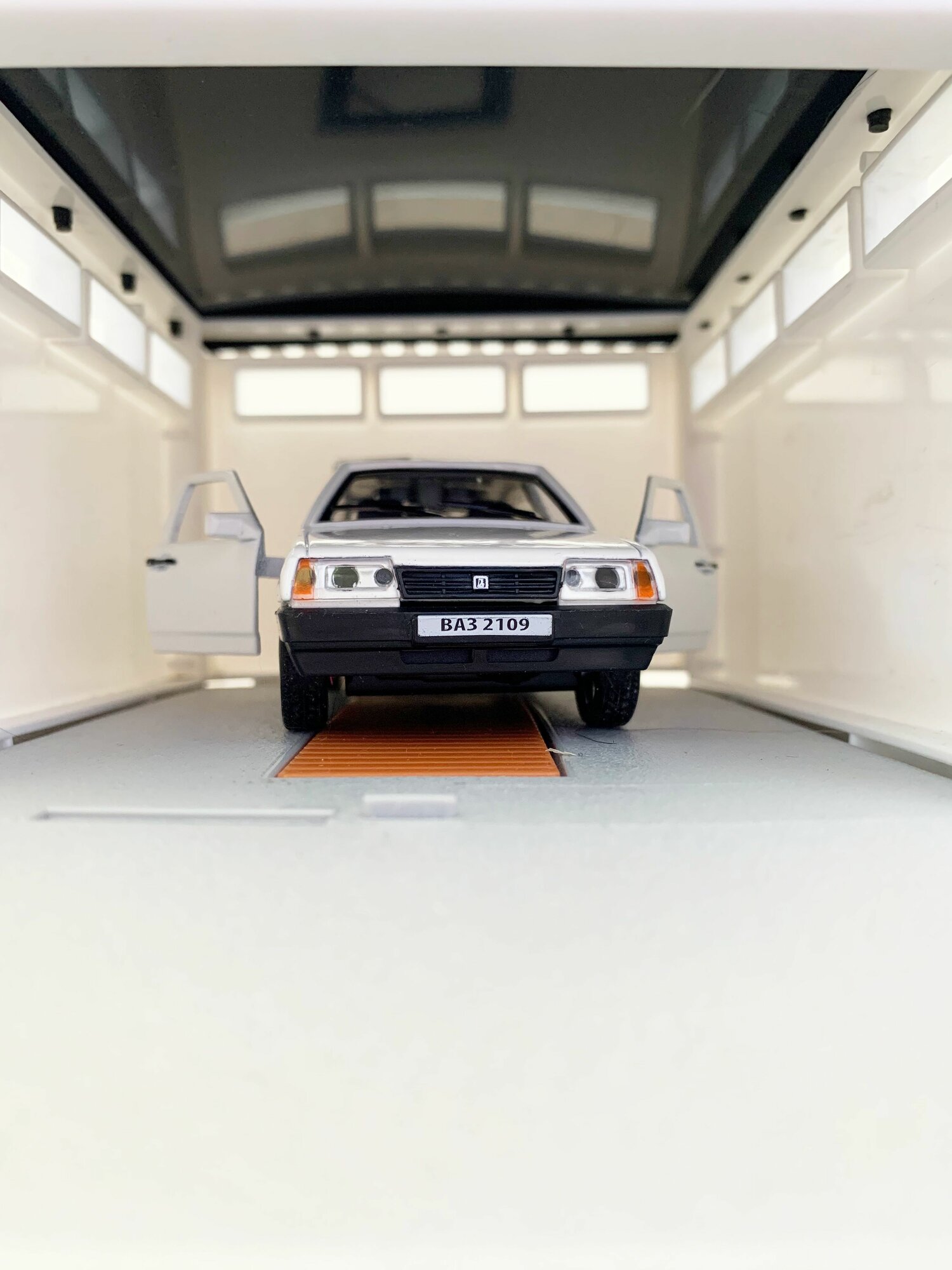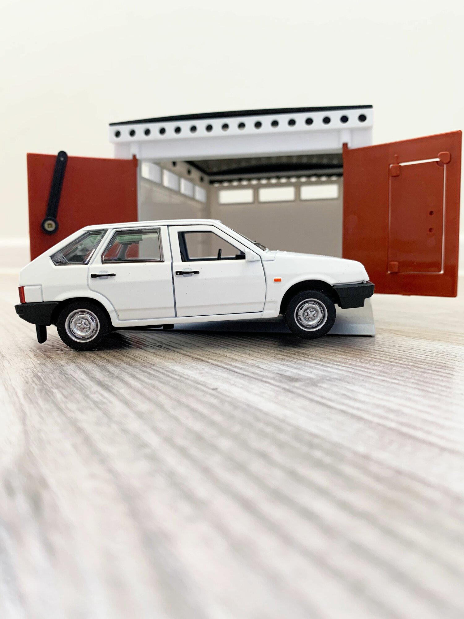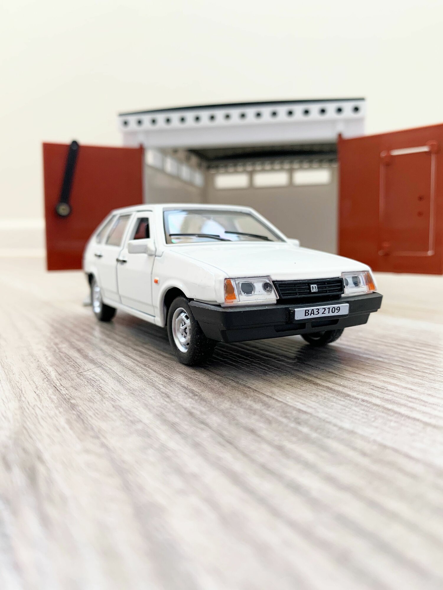 Купить Гараж + машинка модель ВАЗ 2109 (12 см, метал, инерция, открытие 2-х дверей, багажника) - белый