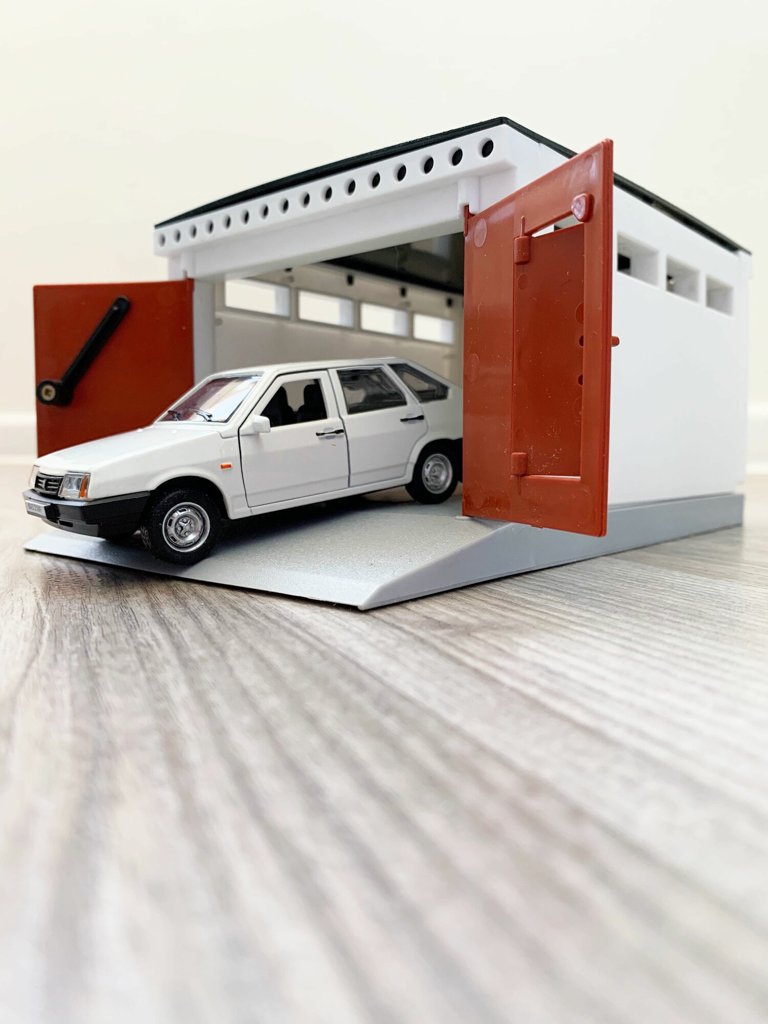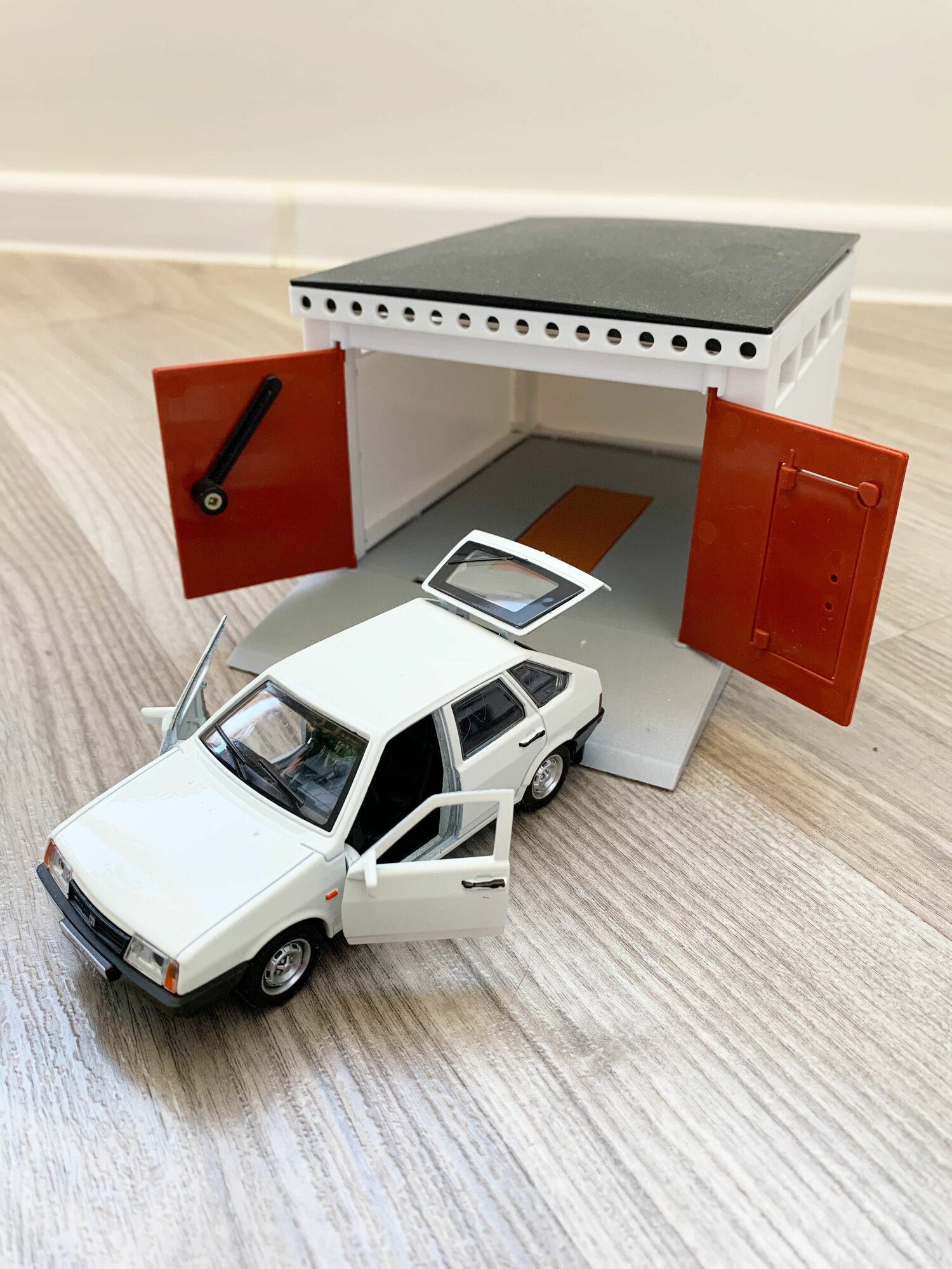 Гараж + машинка модель ВАЗ 2109 (12 см, метал, инерция, открытие 2-х дверей, багажника) - белый интересное: