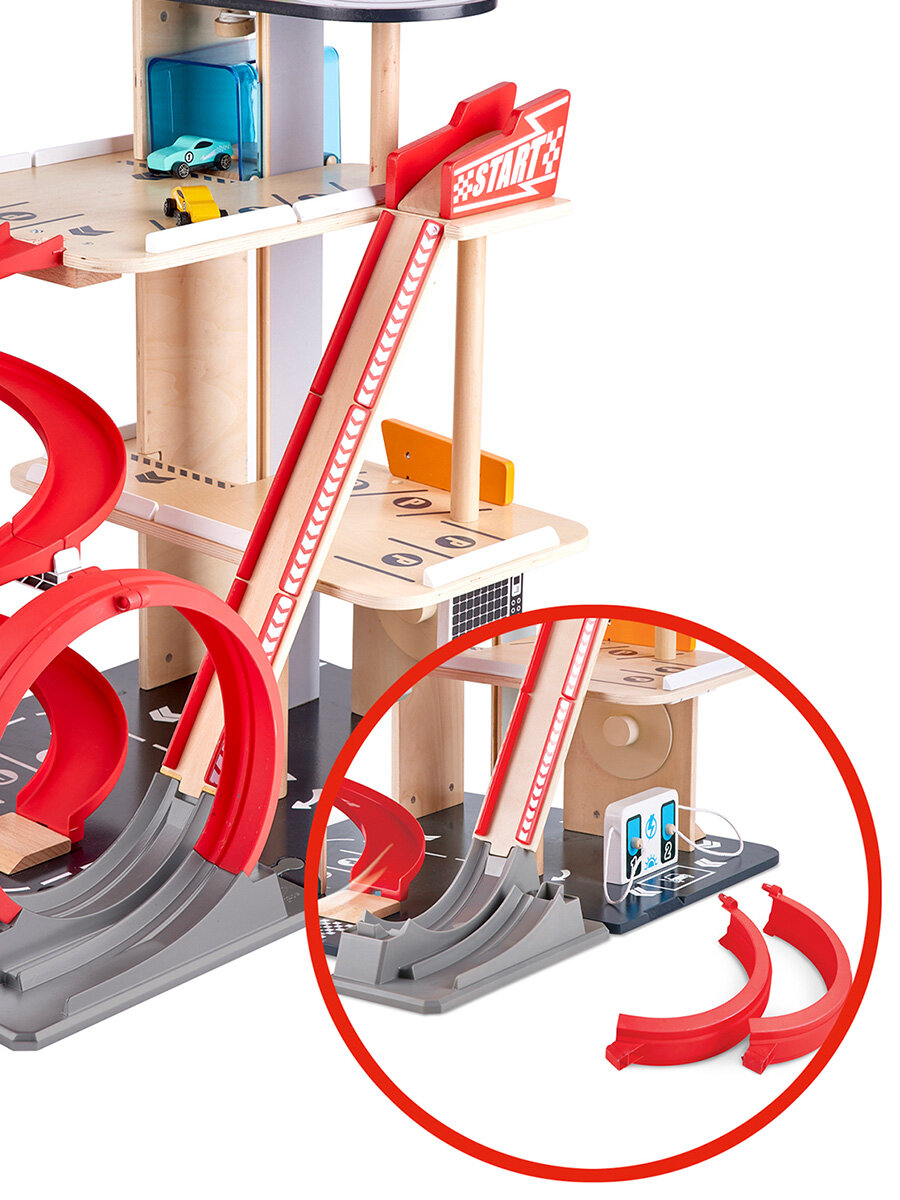 Купить Деревянная многоуровневая автостоянка Hape Гараж для трюков E3019_HP