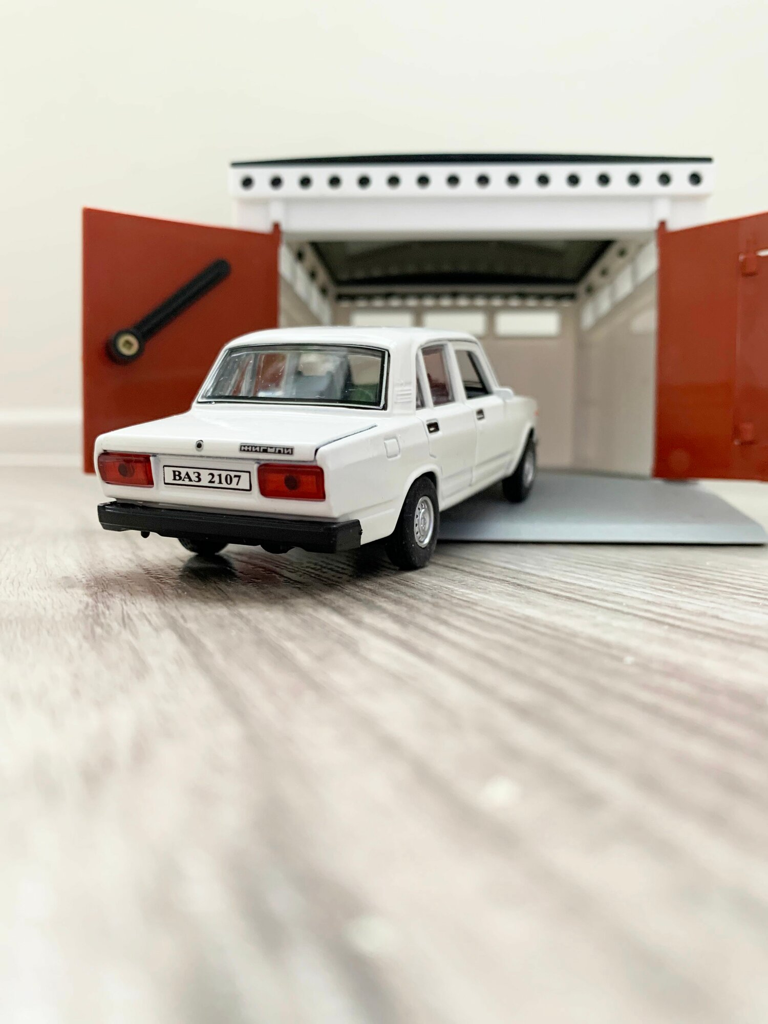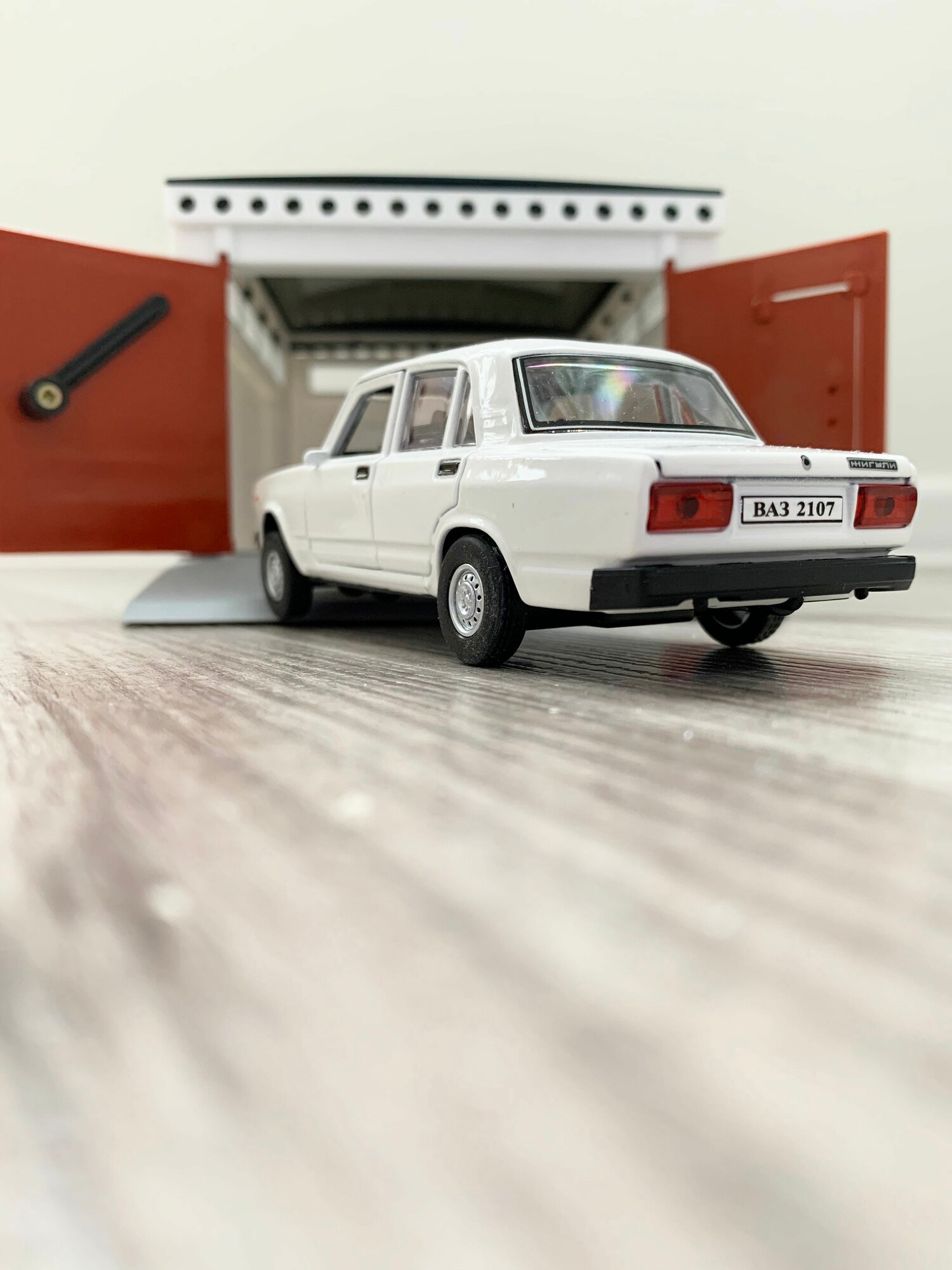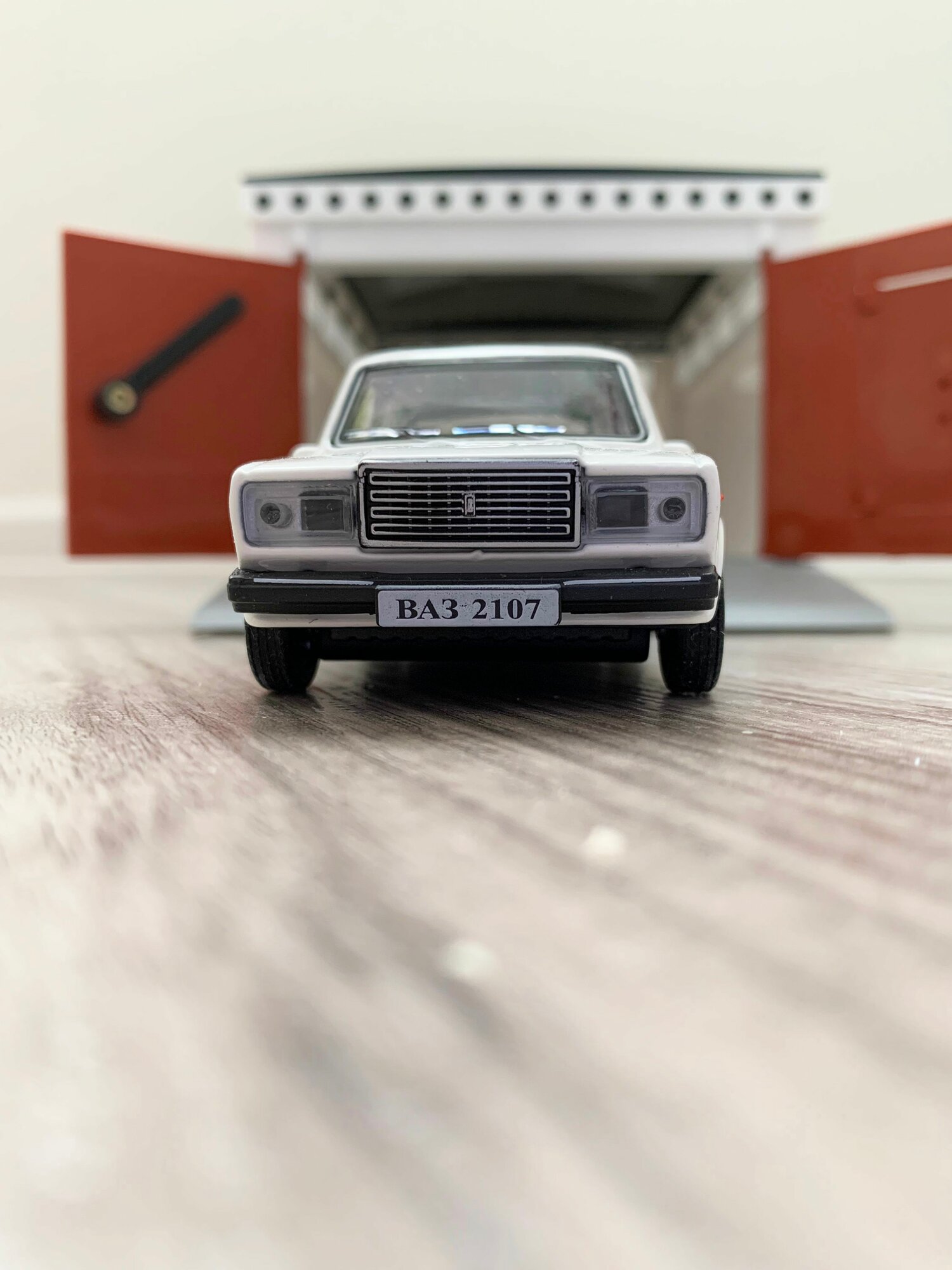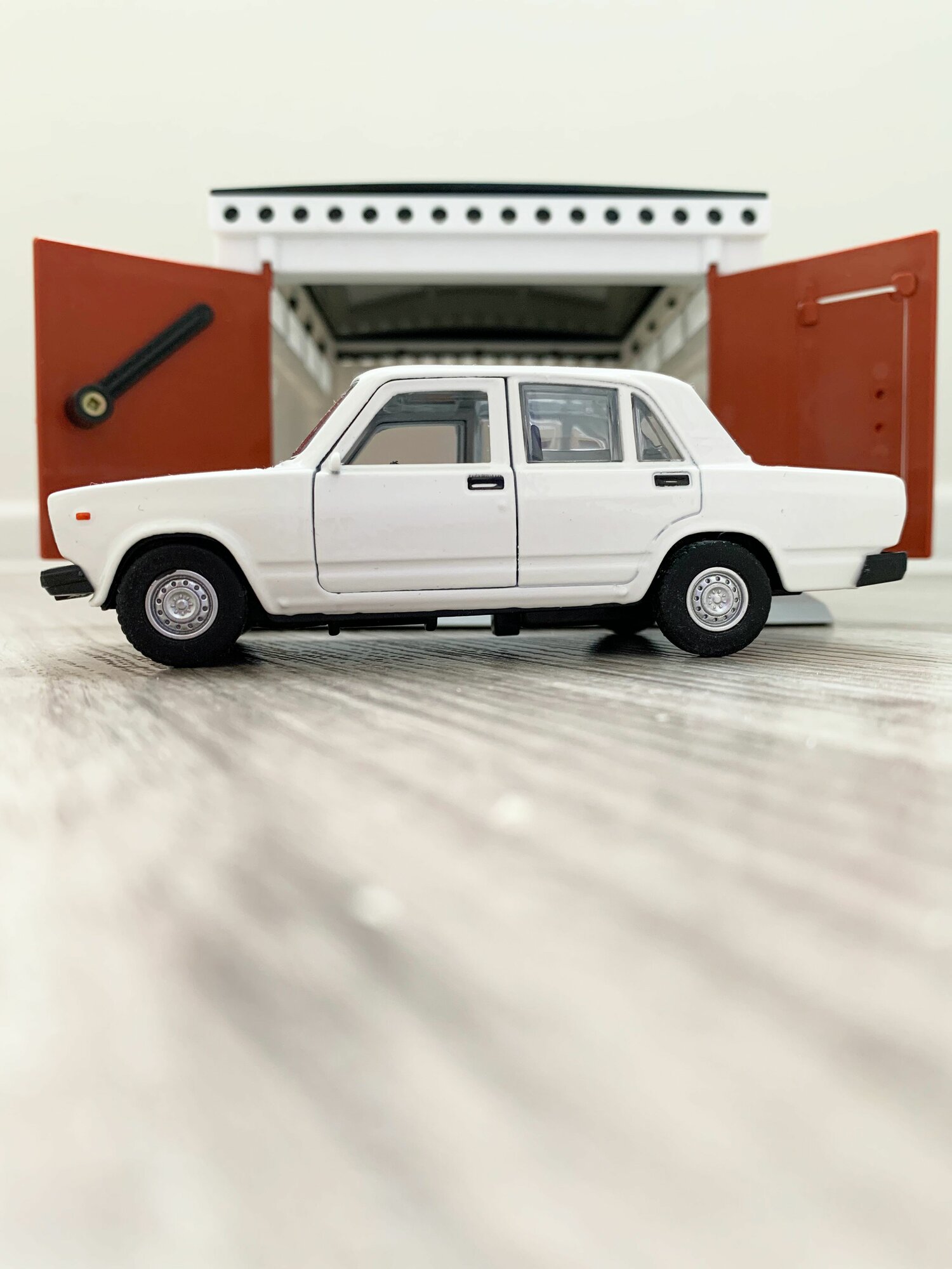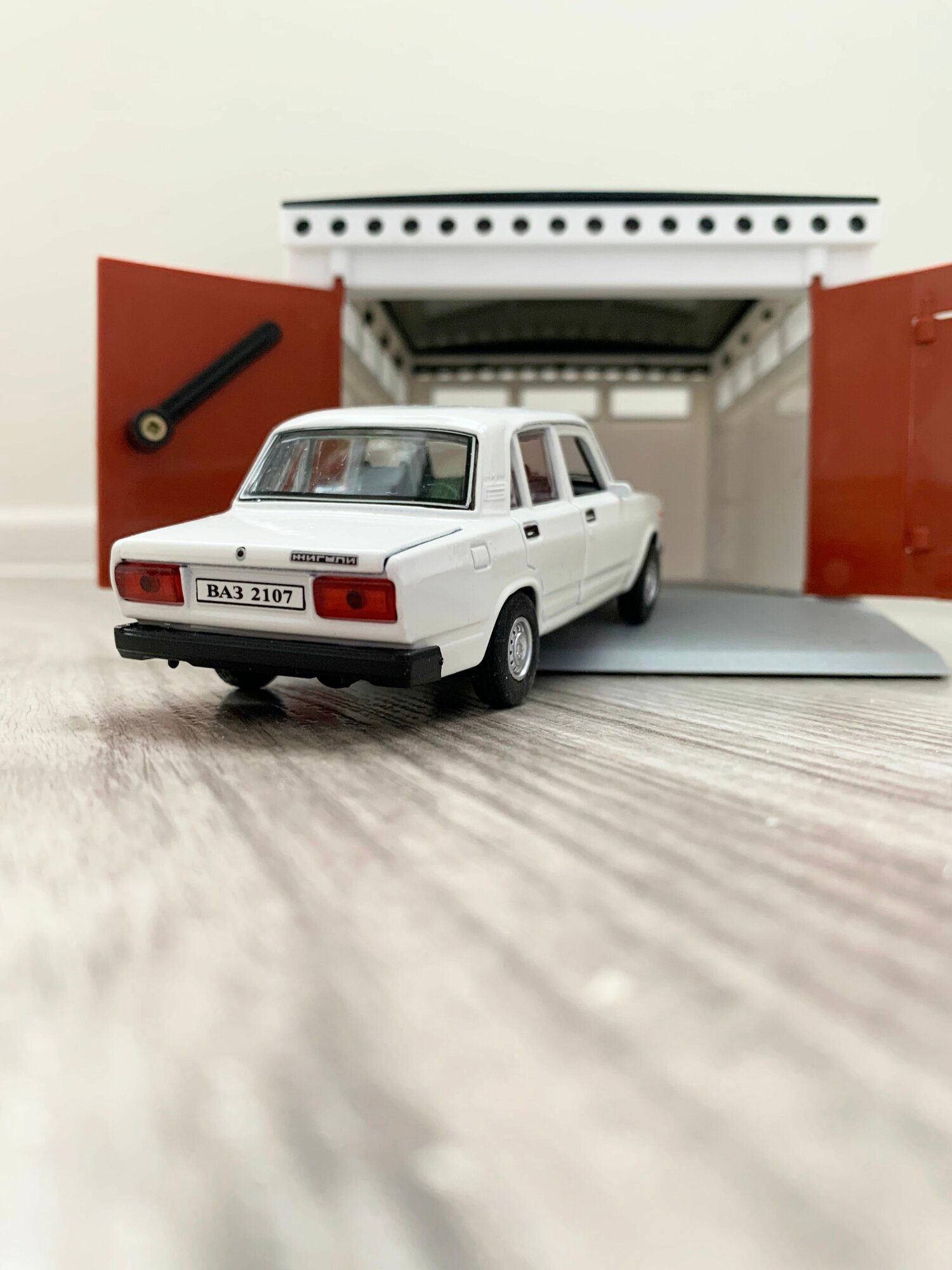 Купить Гараж + машинка модель ВАЗ 2107 (12 см, метал, инерция, 2 откр. двери и багажник) - белая