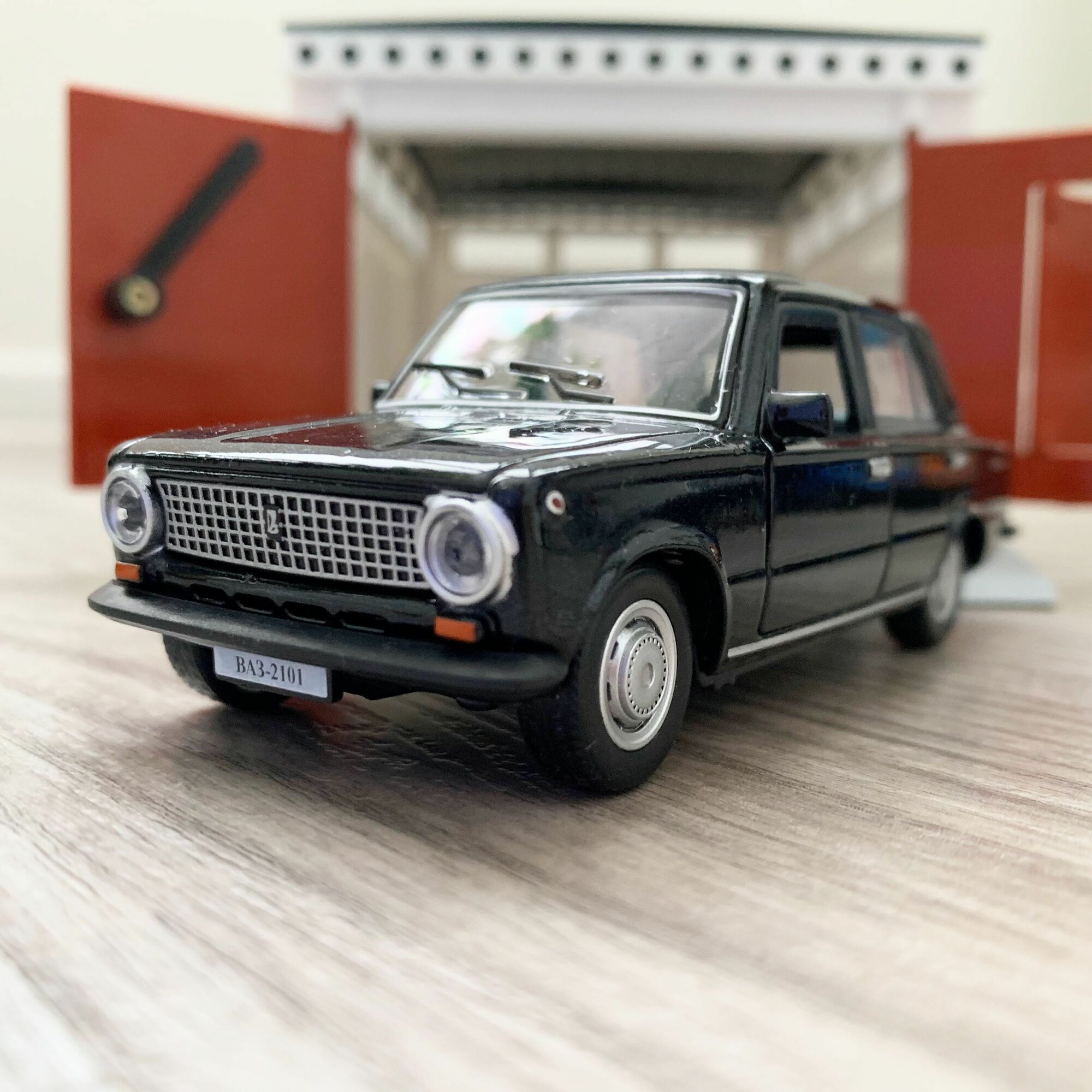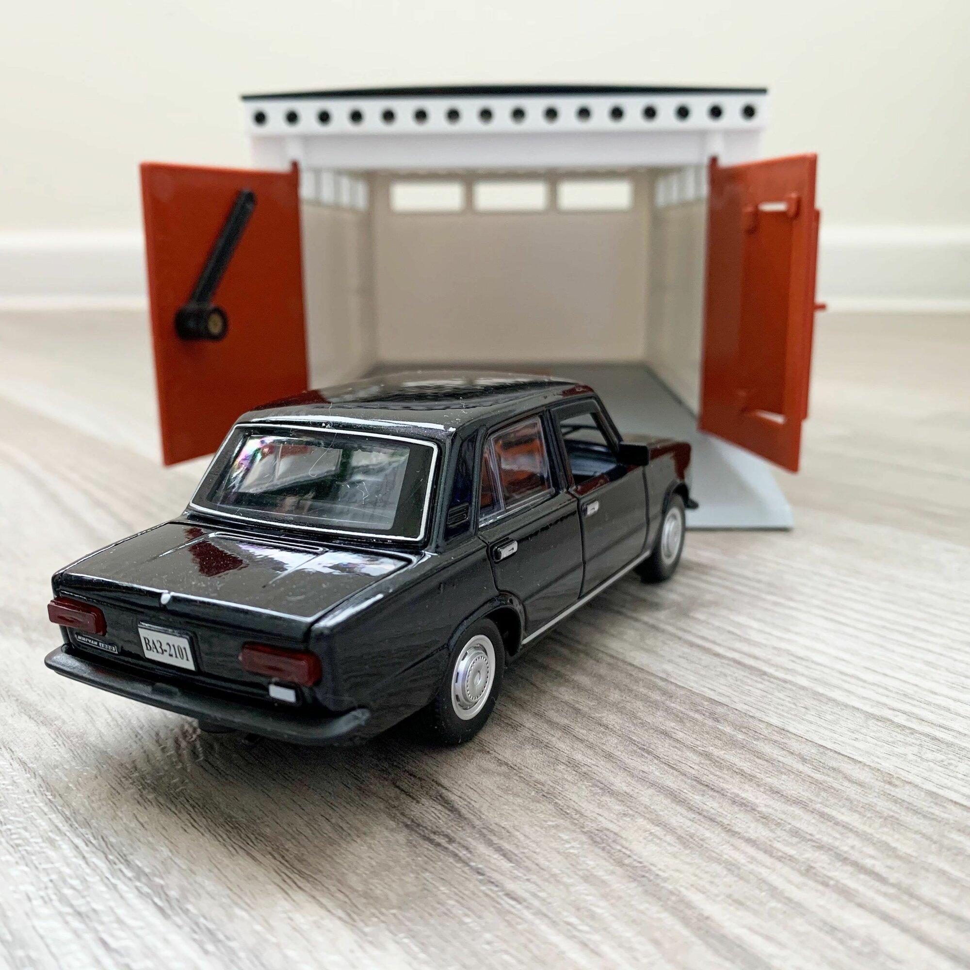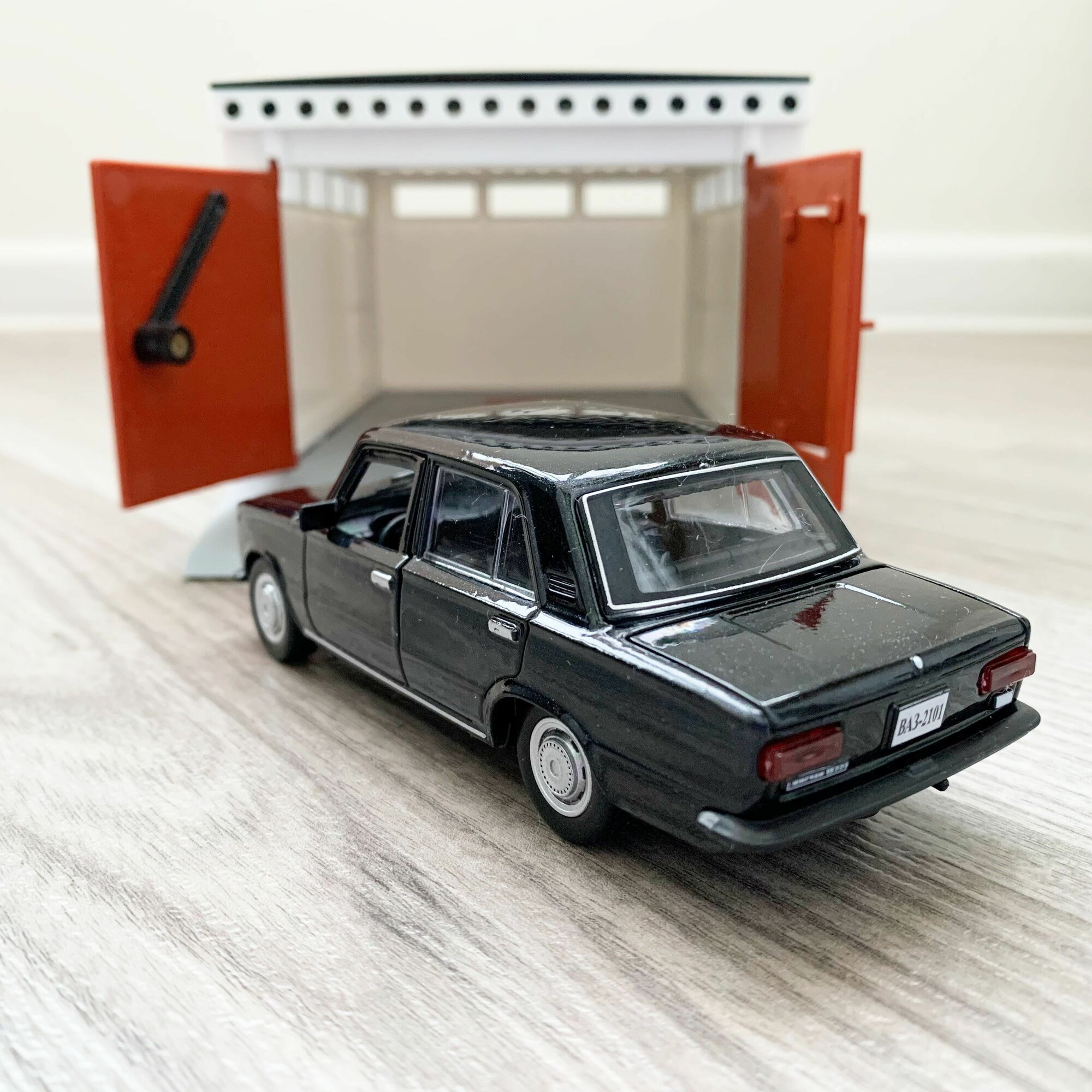 Купить Гараж + машинка модель ВАЗ 2101 (метал, 12 см, инерция, открытие 2-х дверей и багажника) -черная
