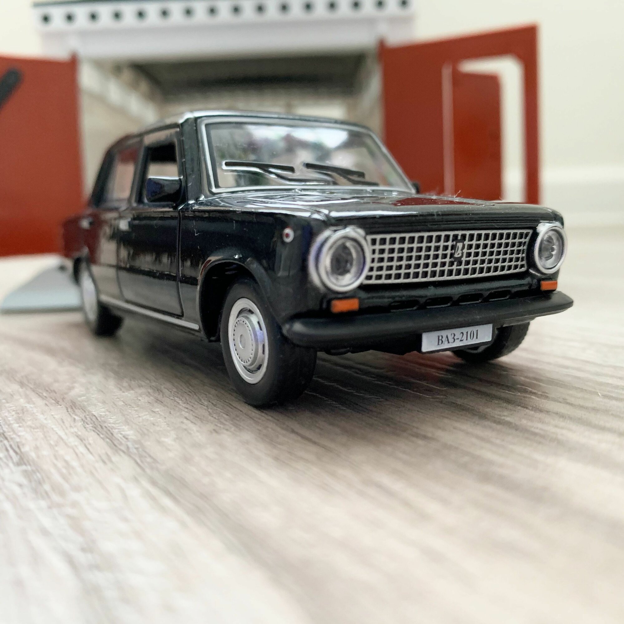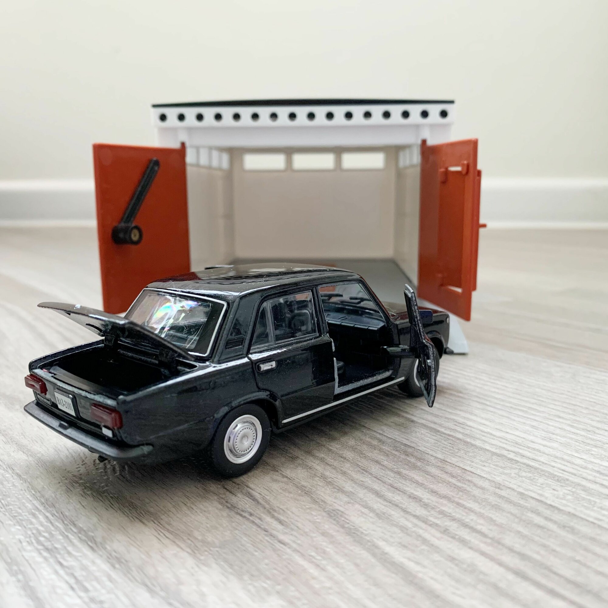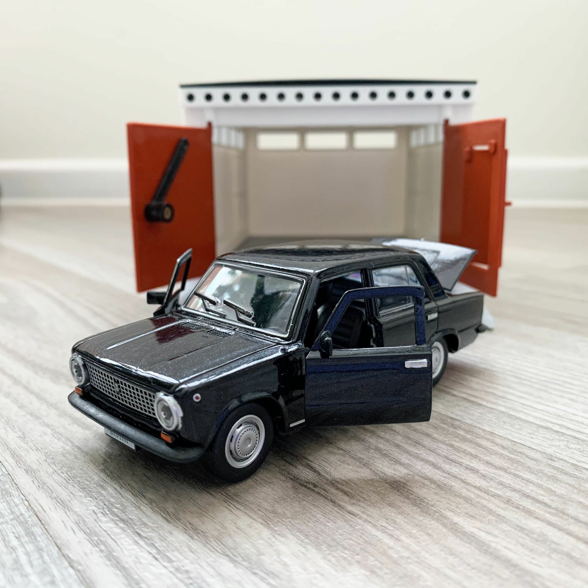Купить Гараж + машинка модель ВАЗ 2101 (метал, 12 см, инерция, открытие 2-х дверей и багажника) -черная