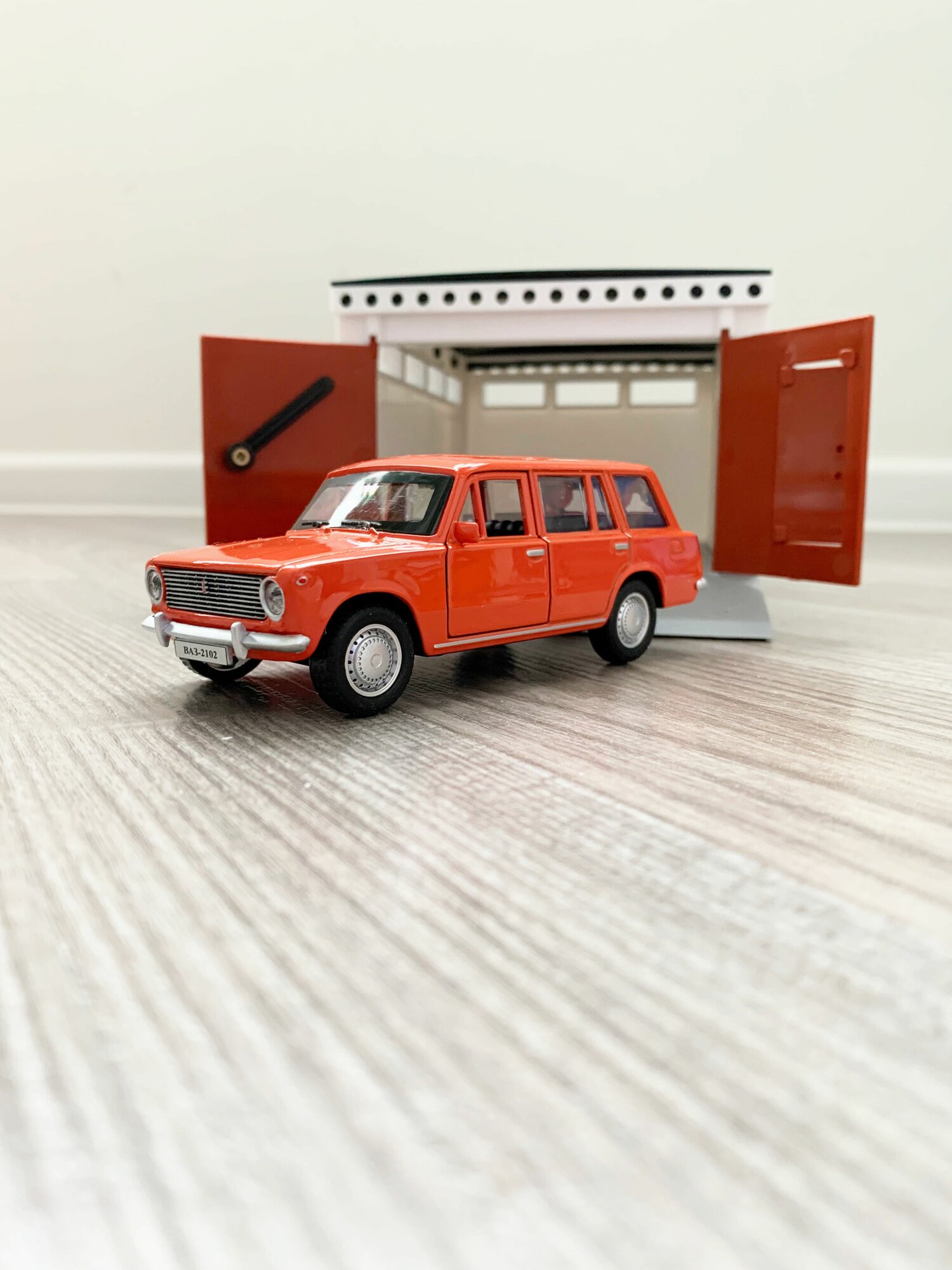 Купить Гараж + машинка модель ВАЗ 2102 (метал, 12 см, инерция, открытие 2-х дверей и багажника) - оранжевая