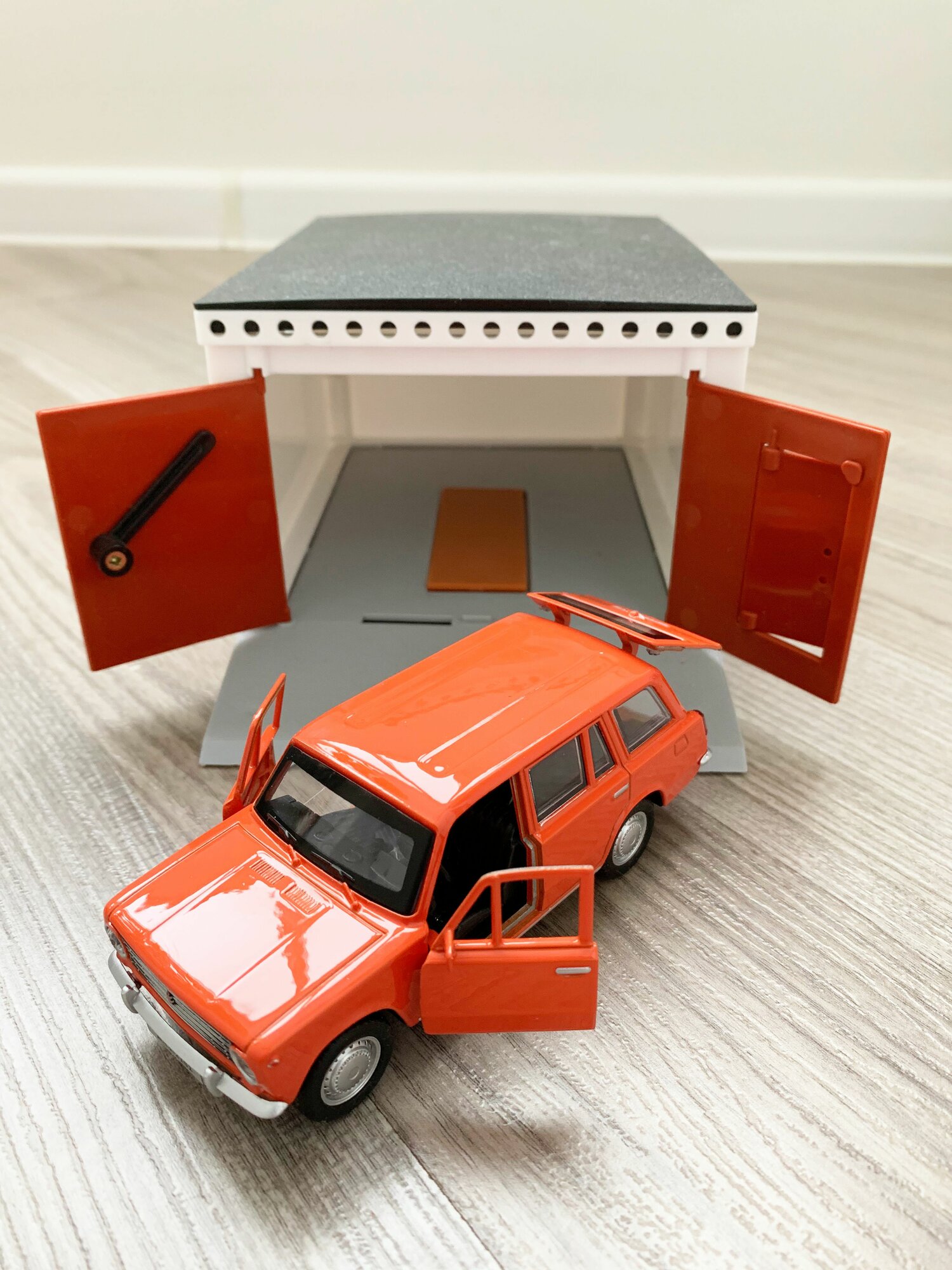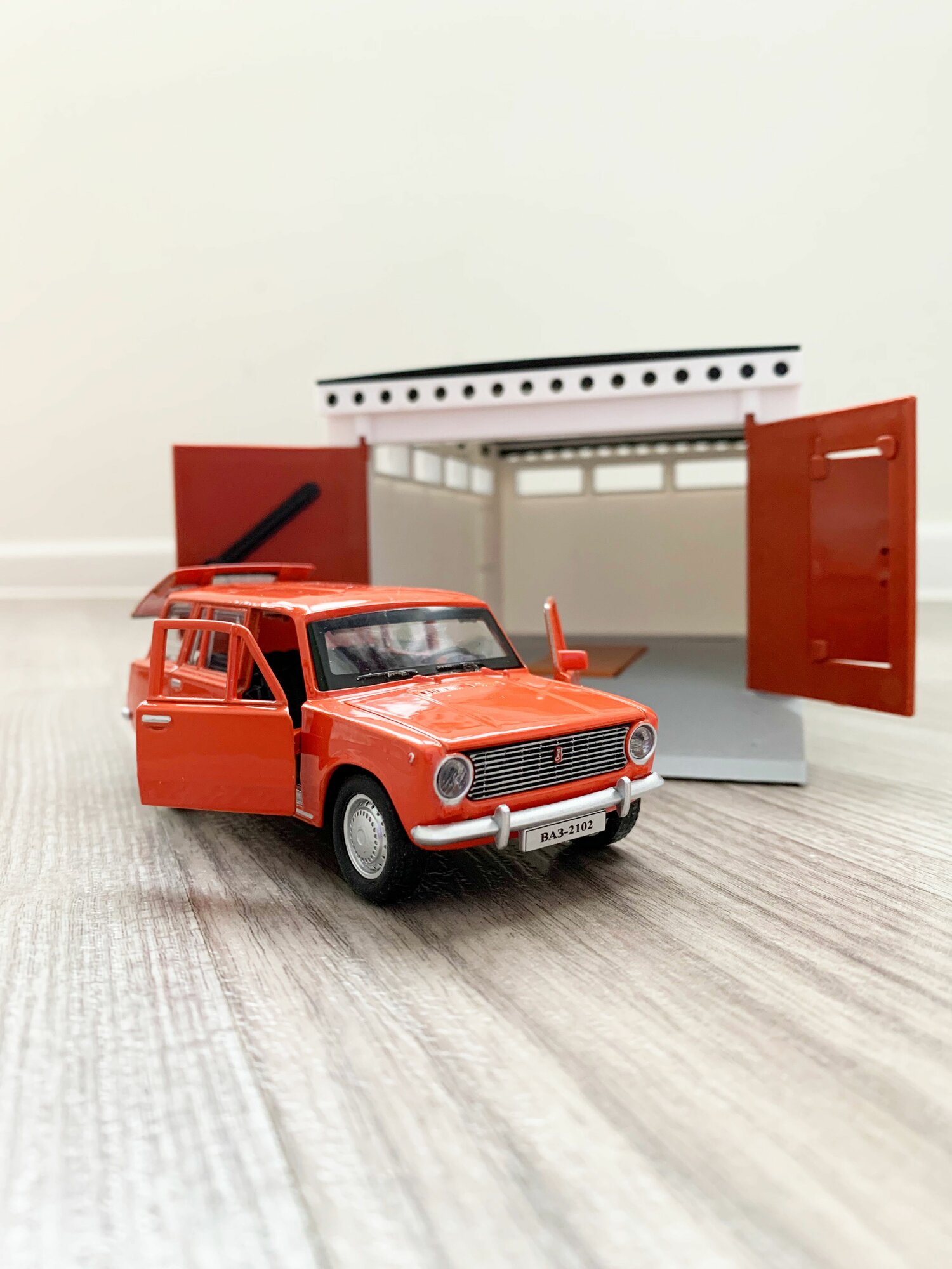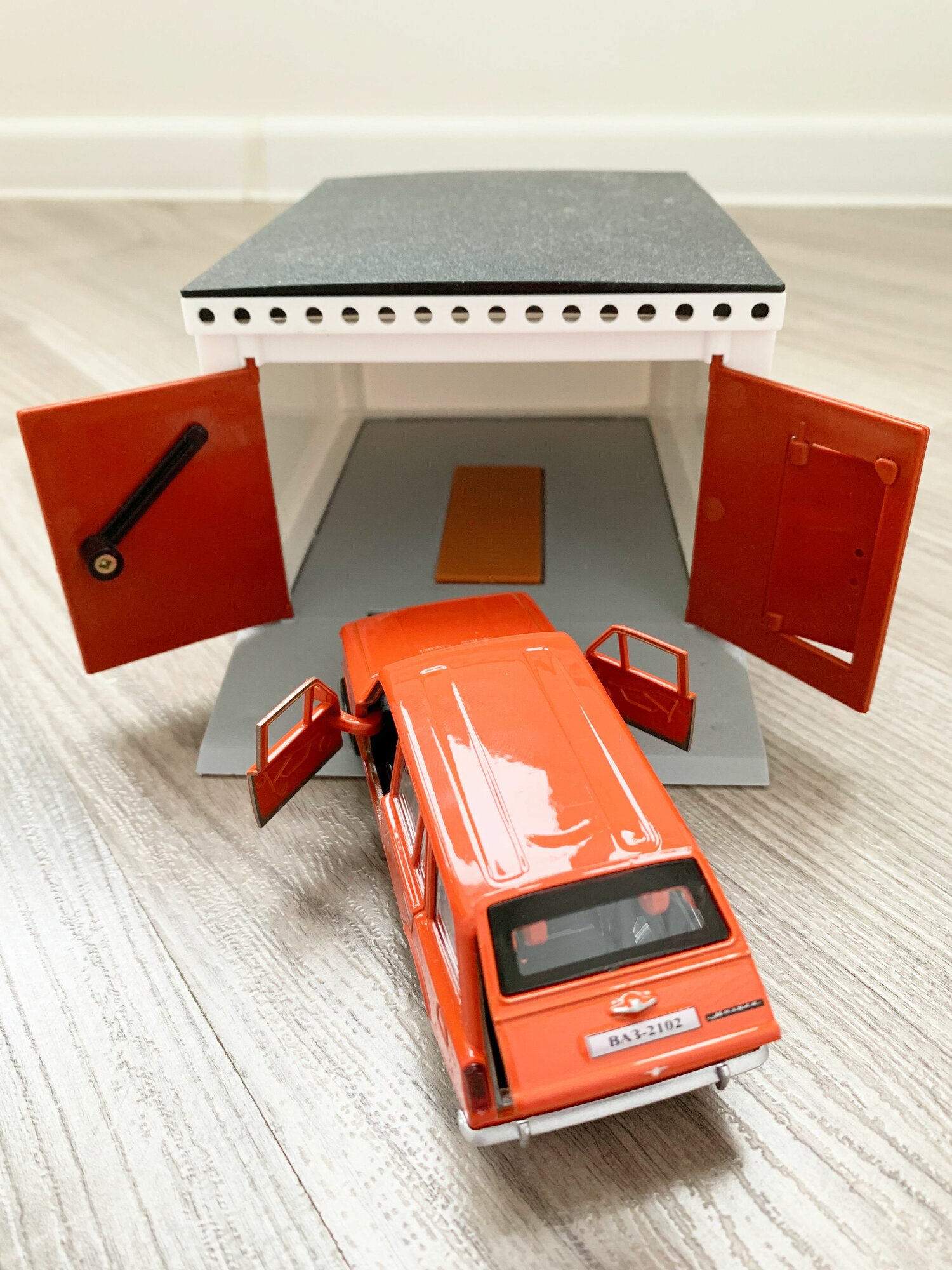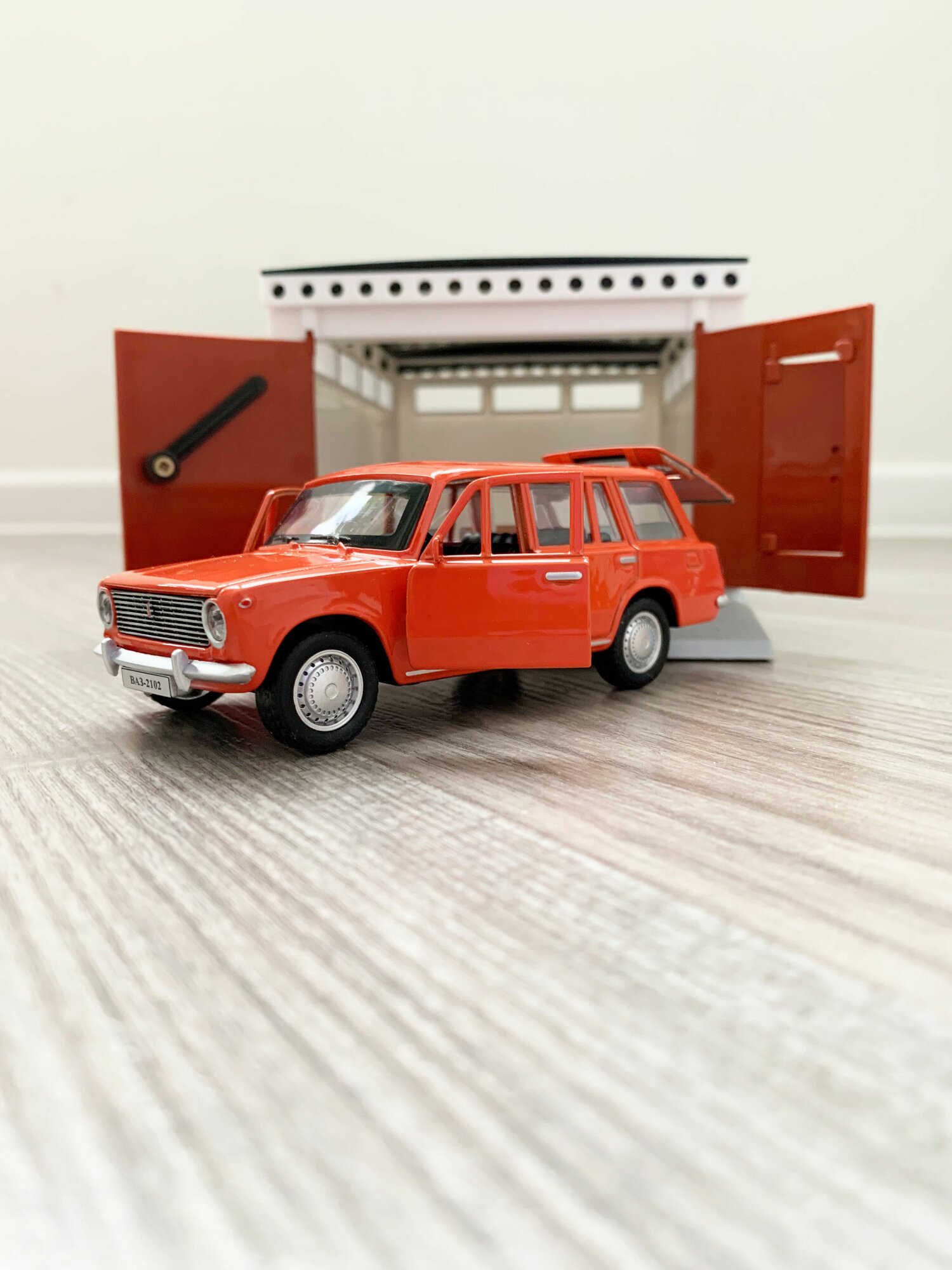 СохранитьГараж + машинка модель ВАЗ 2102 (метал, 12 см, инерция, открытие 2-х дверей и багажника) - оранжевая интересное: