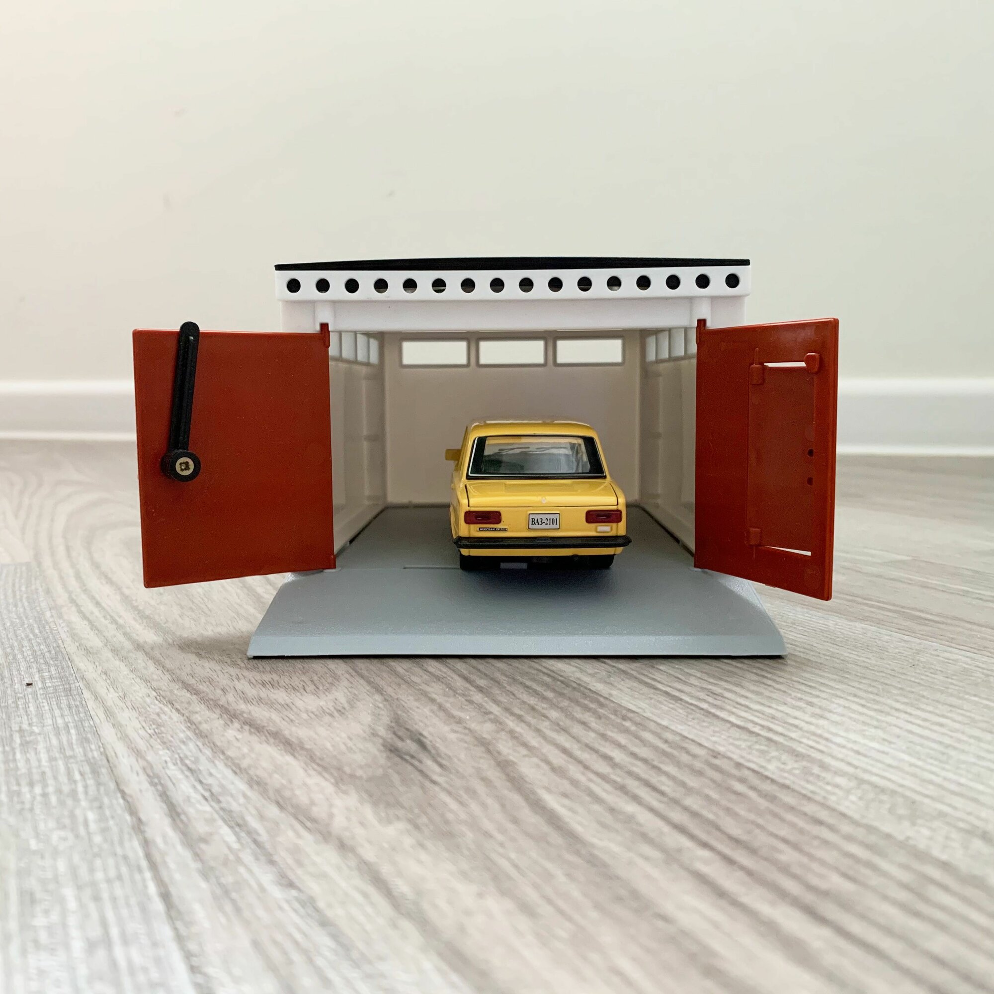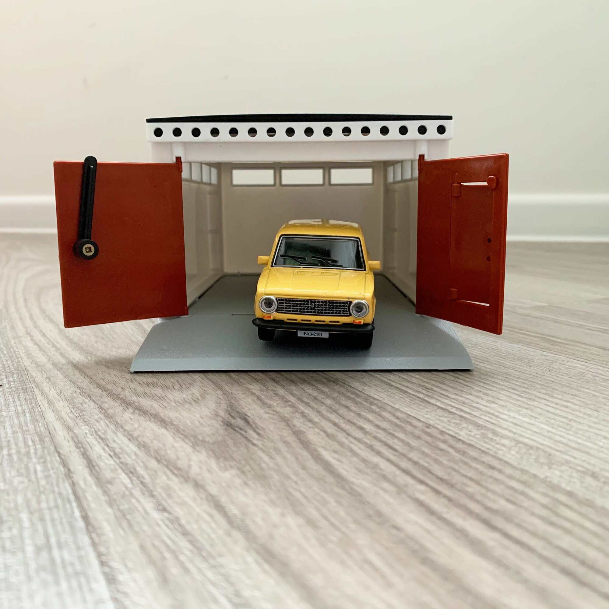 Гараж + машинка модель ВАЗ 2102 (метал, 12 см, инерция, открытие 2-х дверей и багажника) - оранжевая