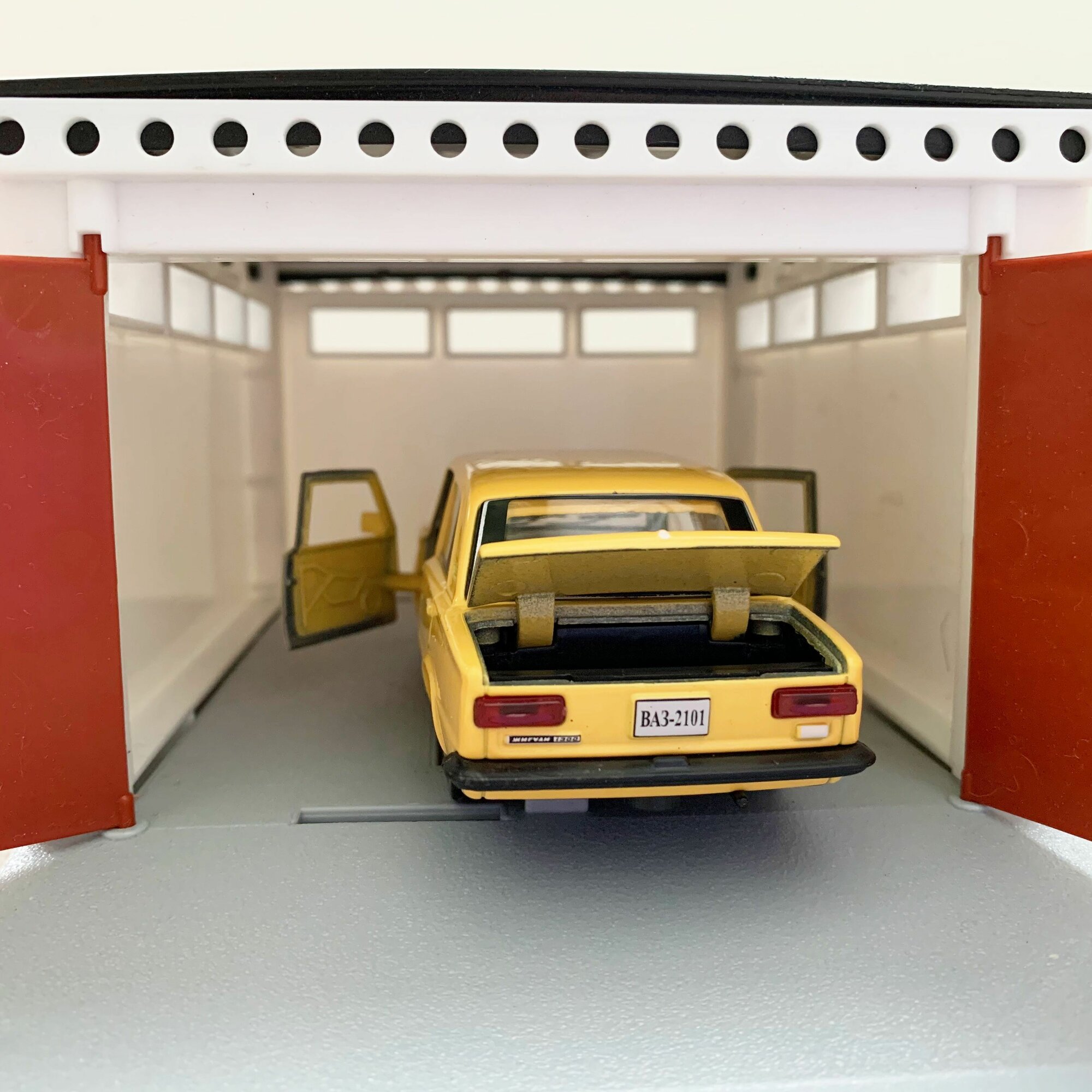 Гараж + машинка модель ВАЗ 2101 (метал, 12 см, инерция, открытие 2-х дверей и багажника) -черная