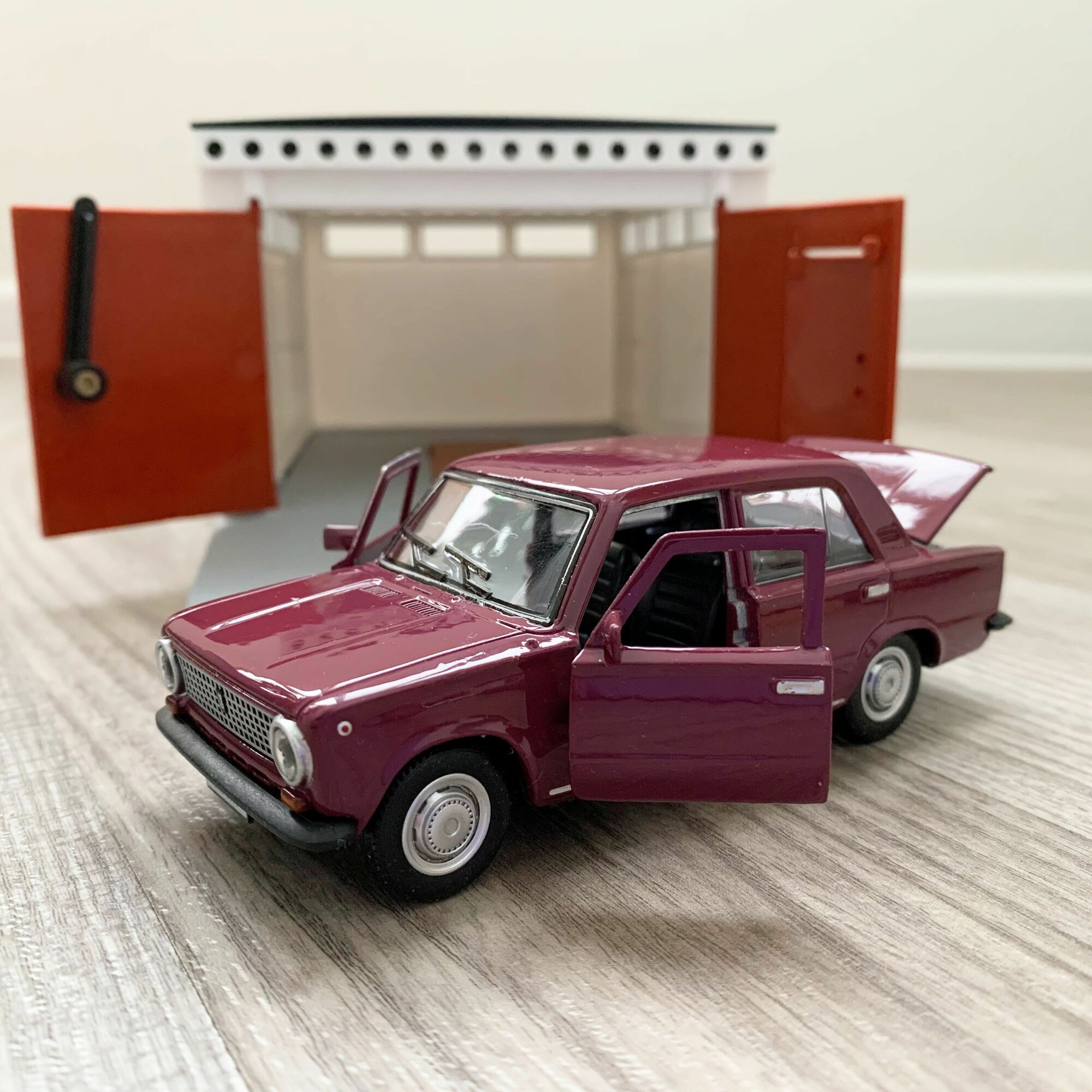 Купить Гараж + машинка модель ВАЗ 2101 (метал, 12 см, инерция, открытие 2-х дверей и багажника) -фиолетовая