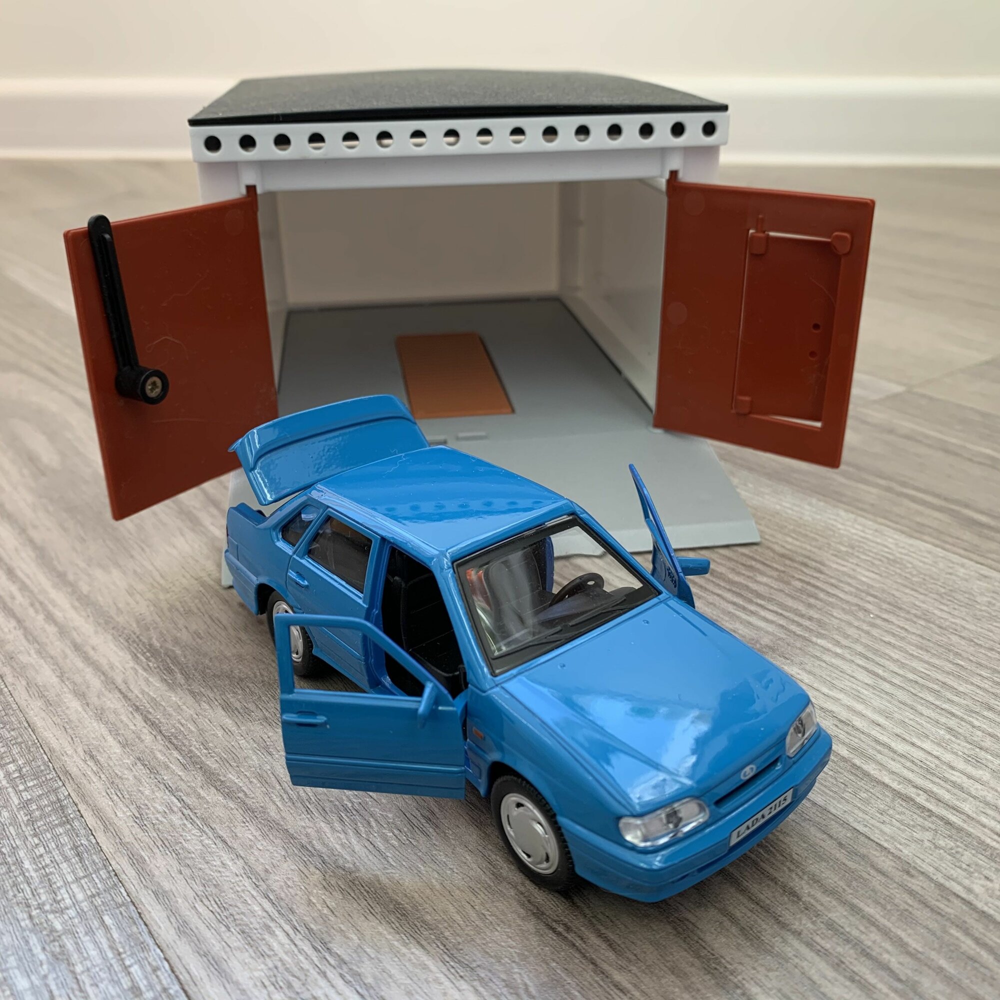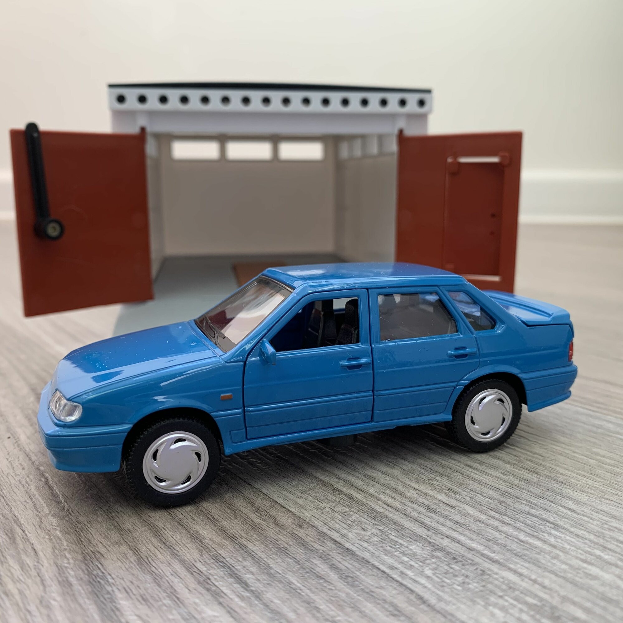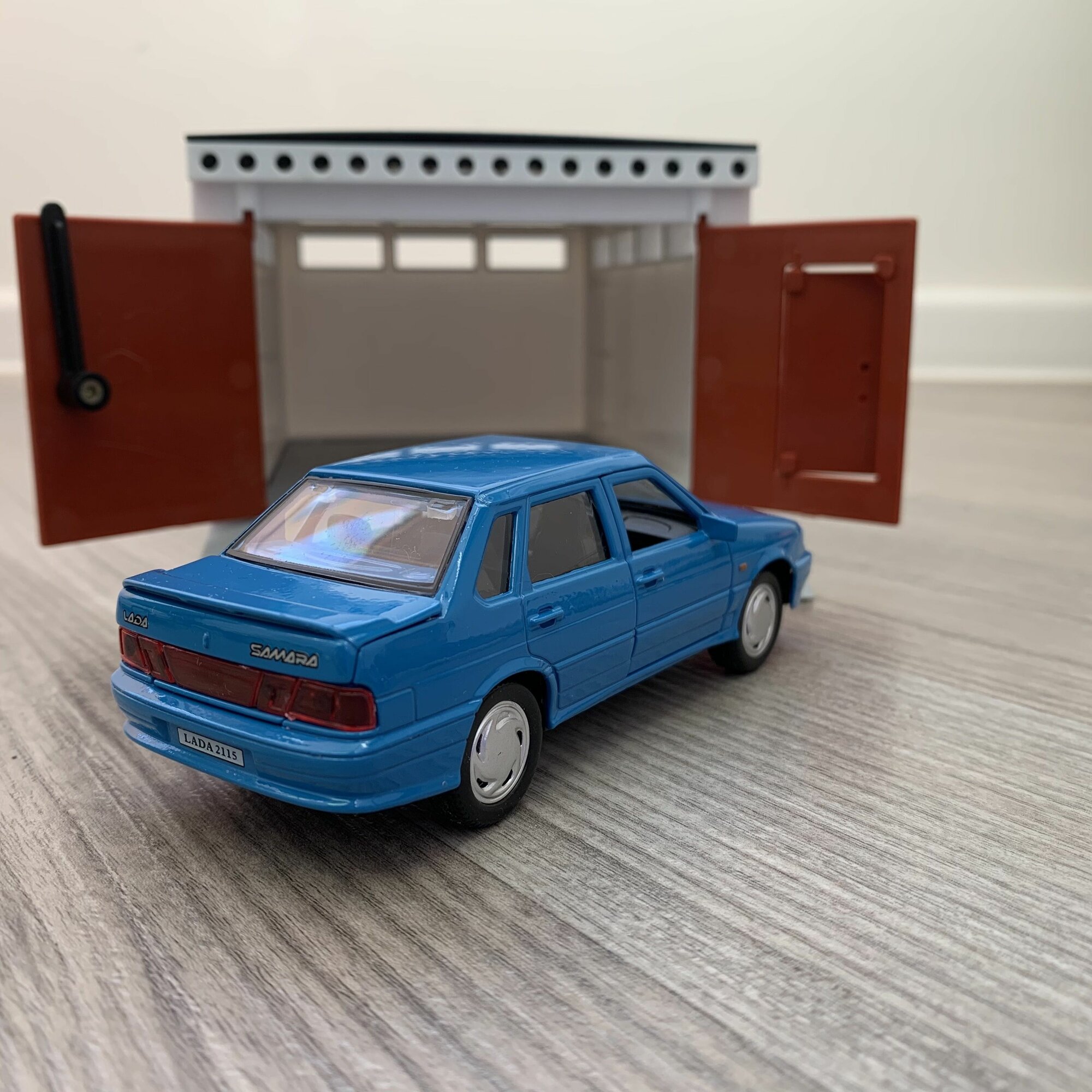 Купить Гараж ретро и машинка ВАЗ 2115 (метал, 12 см, инерция, открытие 2-х дверей и багажника) - синяя