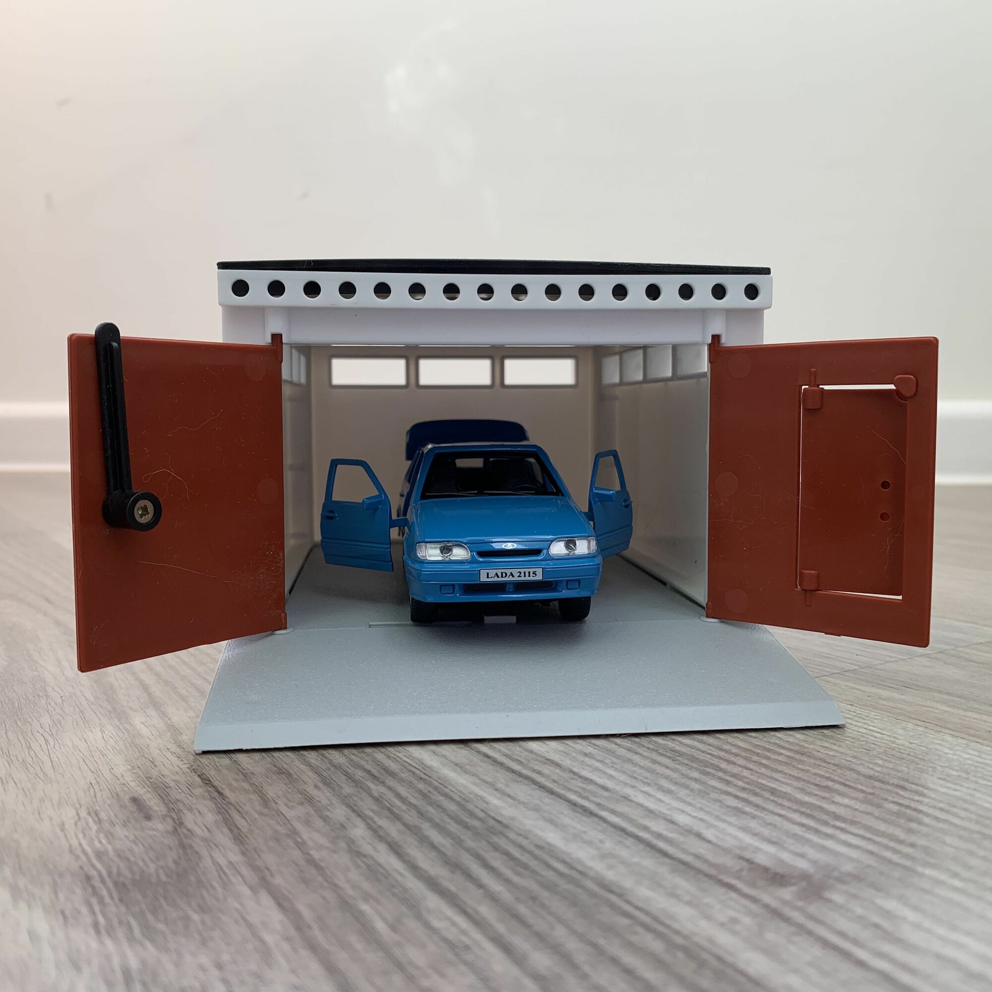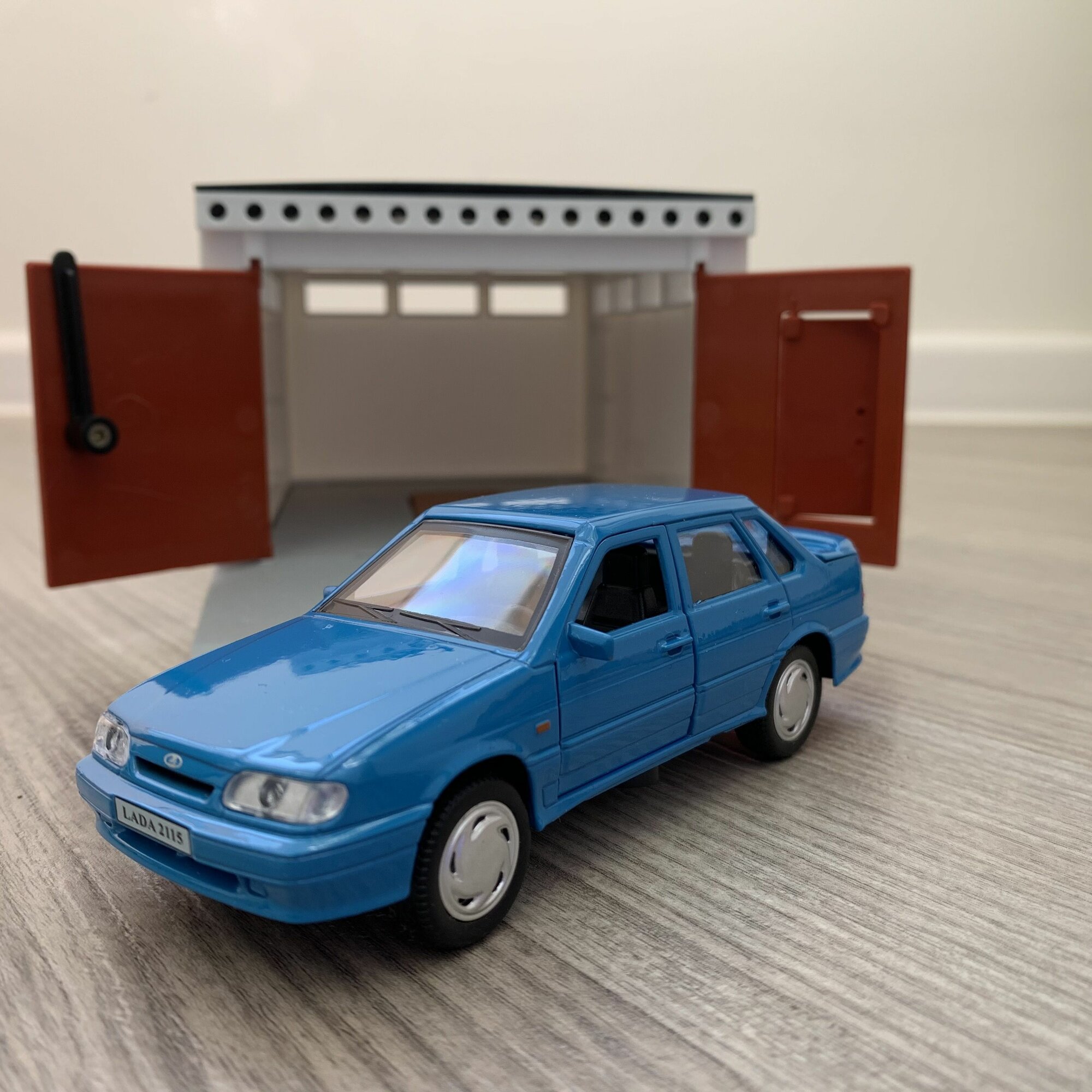 Гараж + LADA 2115 (метал, 12 см, инерция, открытие 2-х дверей и багажника) - коричневая