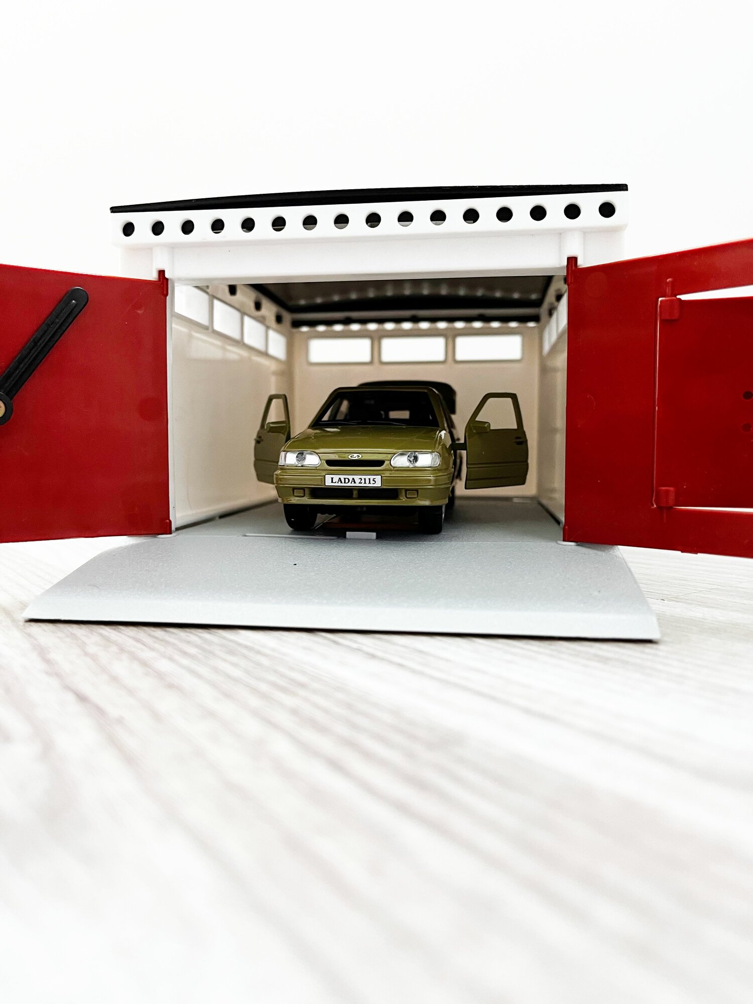 Гараж + LADA 2115 (метал, 12 см, инерция, открытие 2-х дверей и багажника) - коричневая