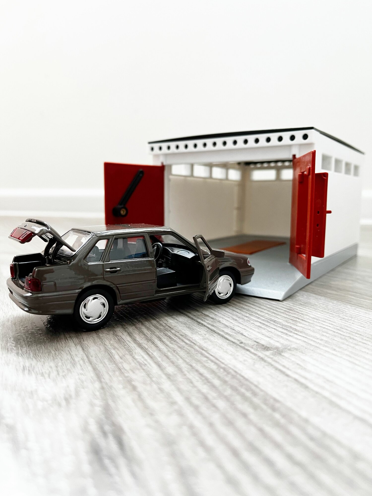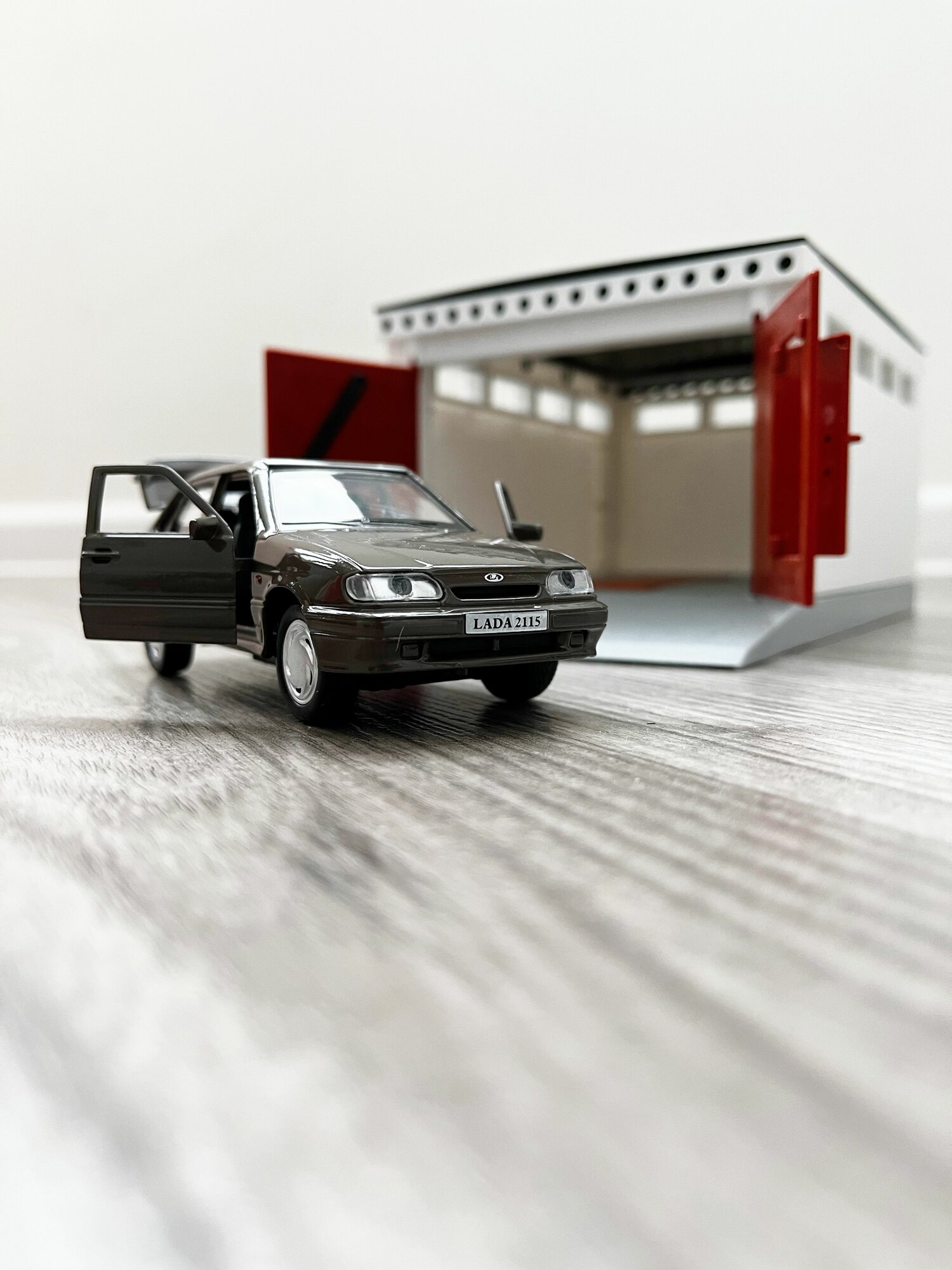 Купить Гараж + LADA 2115 (метал, 12 см, инерция, открытие 2-х дверей и багажника) - коричневая