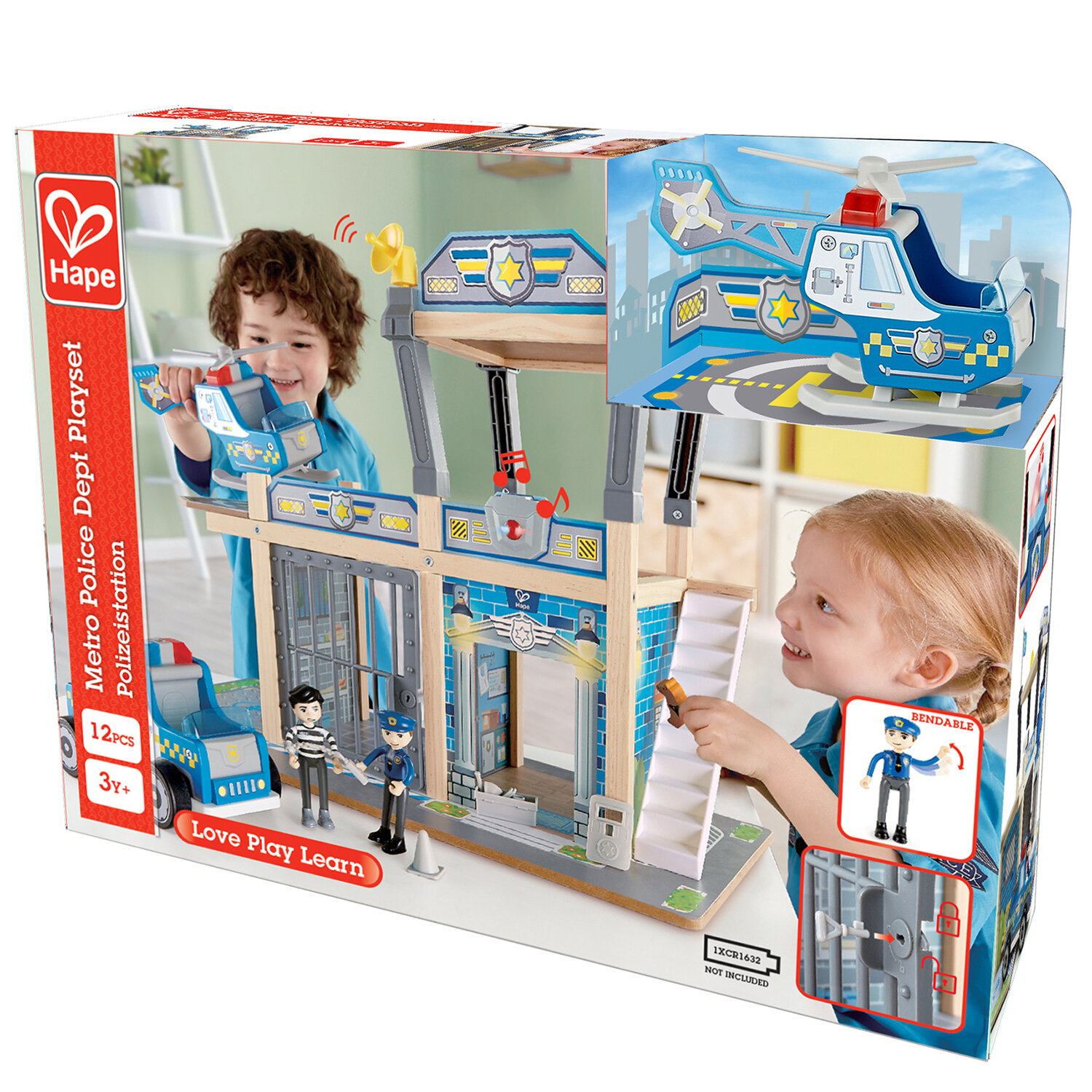 Купить Игровой набор с парковкой и деревянными фигурками Hape "Полицейский участок" E3050_HP