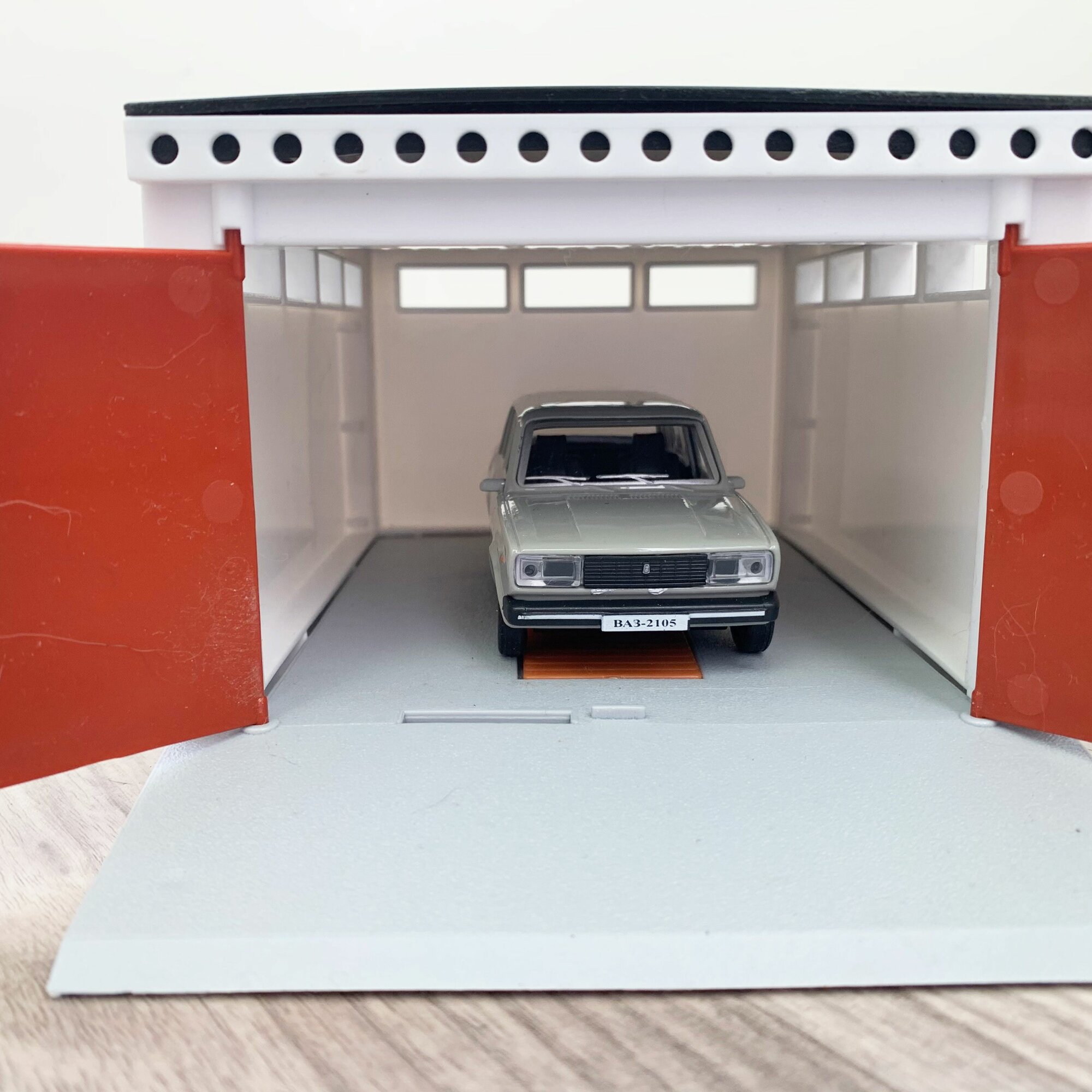 Гараж + машинка модель ВАЗ 2105 (12 см, метал, инерция, открытие 2-х дверей, багажника) - черный