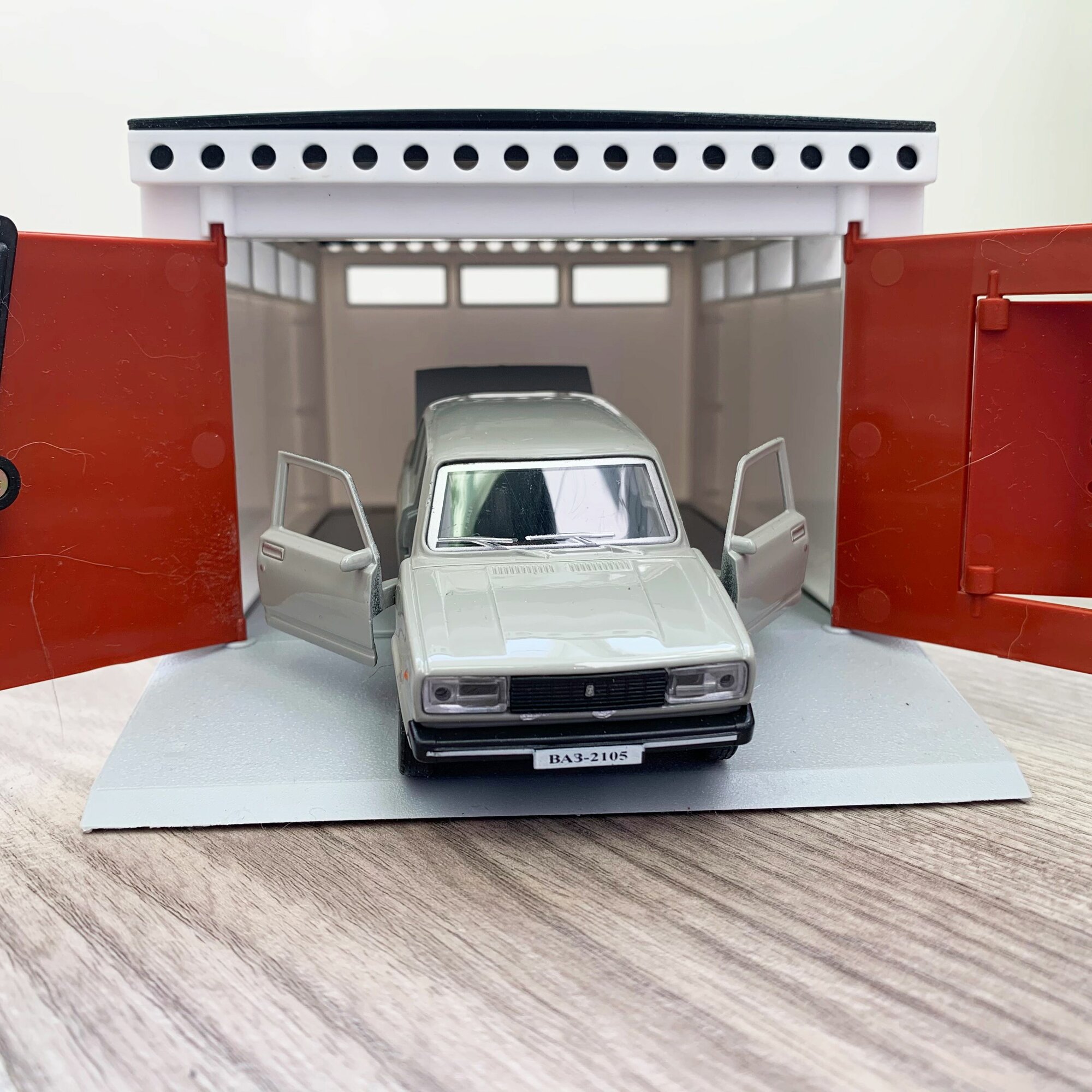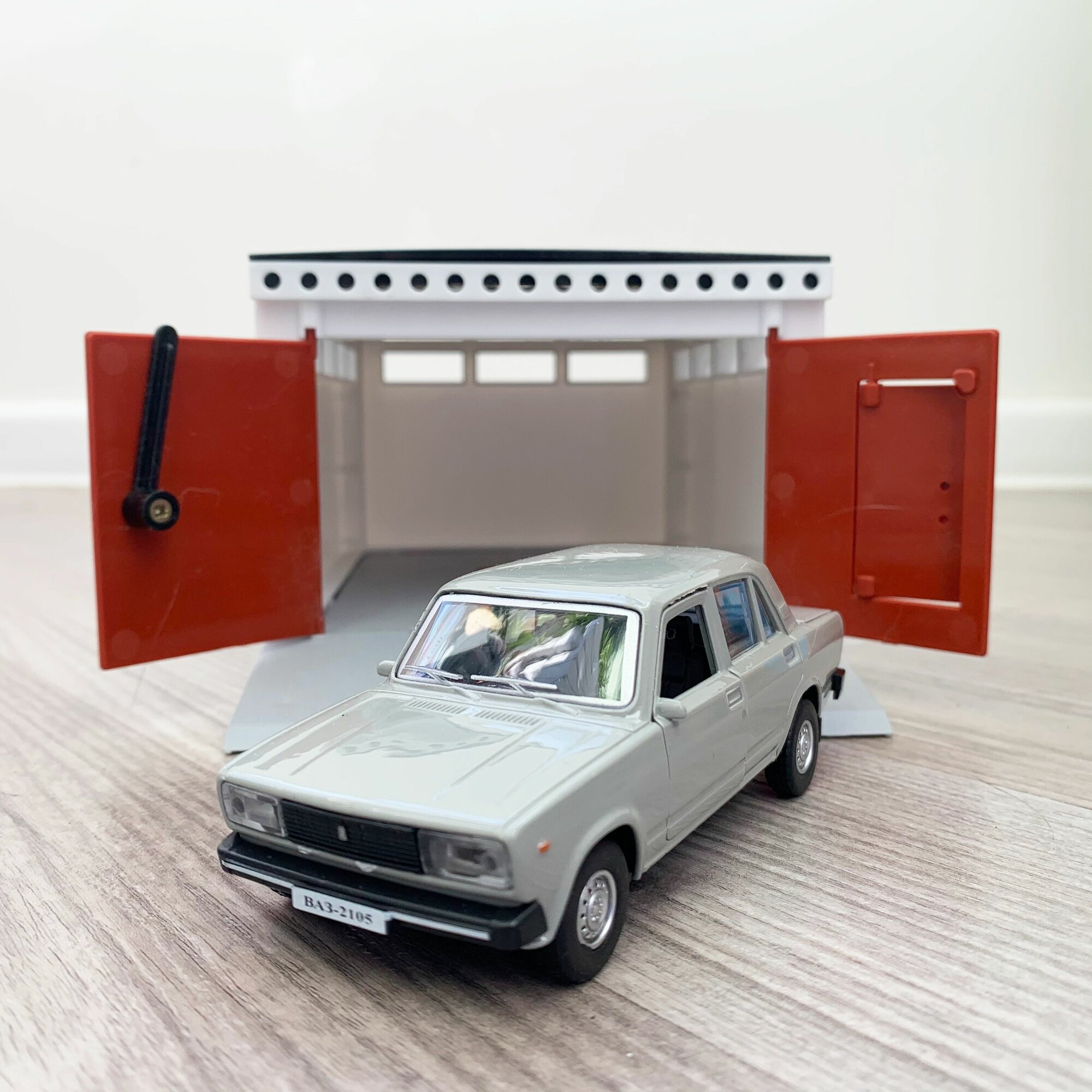 Купить Гараж + машинка модель ВАЗ 2105 (12 см, метал, инерция, открытие 2-х дверей, багажника) - серый