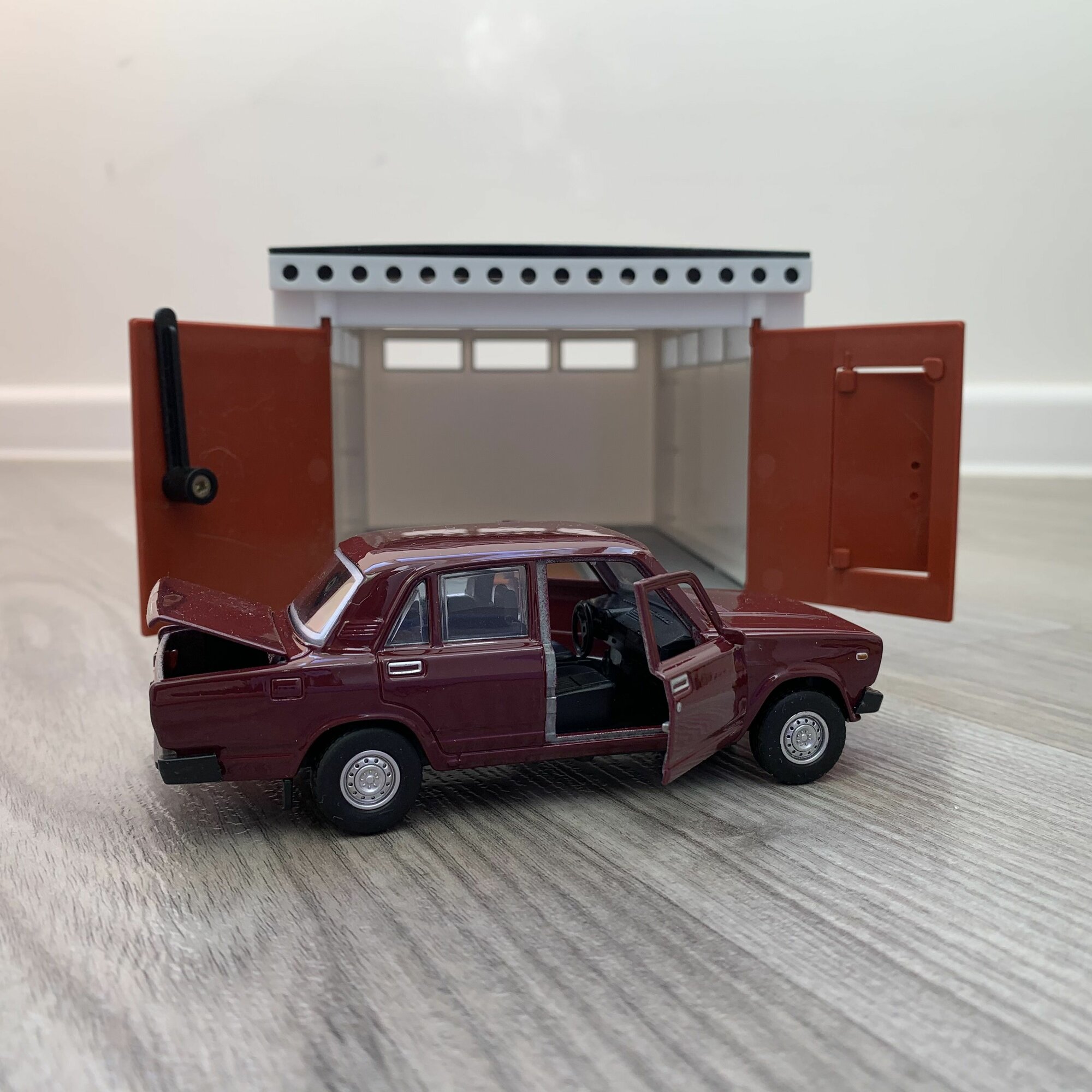 Гараж + машинка модель ВАЗ 2105 (12 см, метал, инерция, открытие 2-х дверей, багажника) - вишневый интересное: