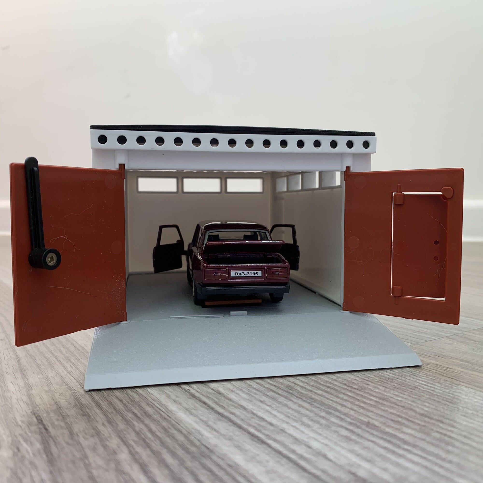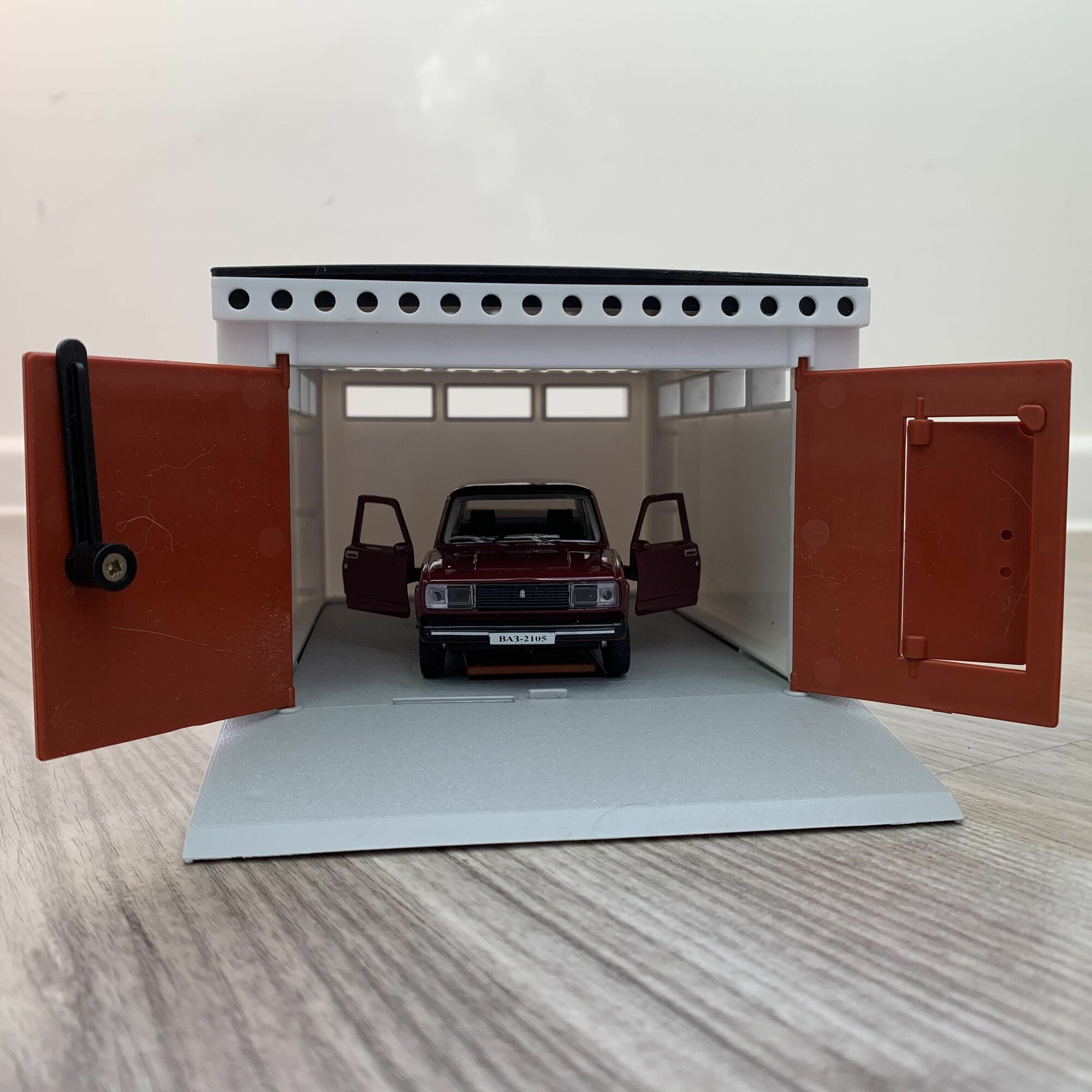 Гараж + машинка модель ВАЗ 2105 (12 см, метал, инерция, открытие 2-х дверей, багажника) - серый