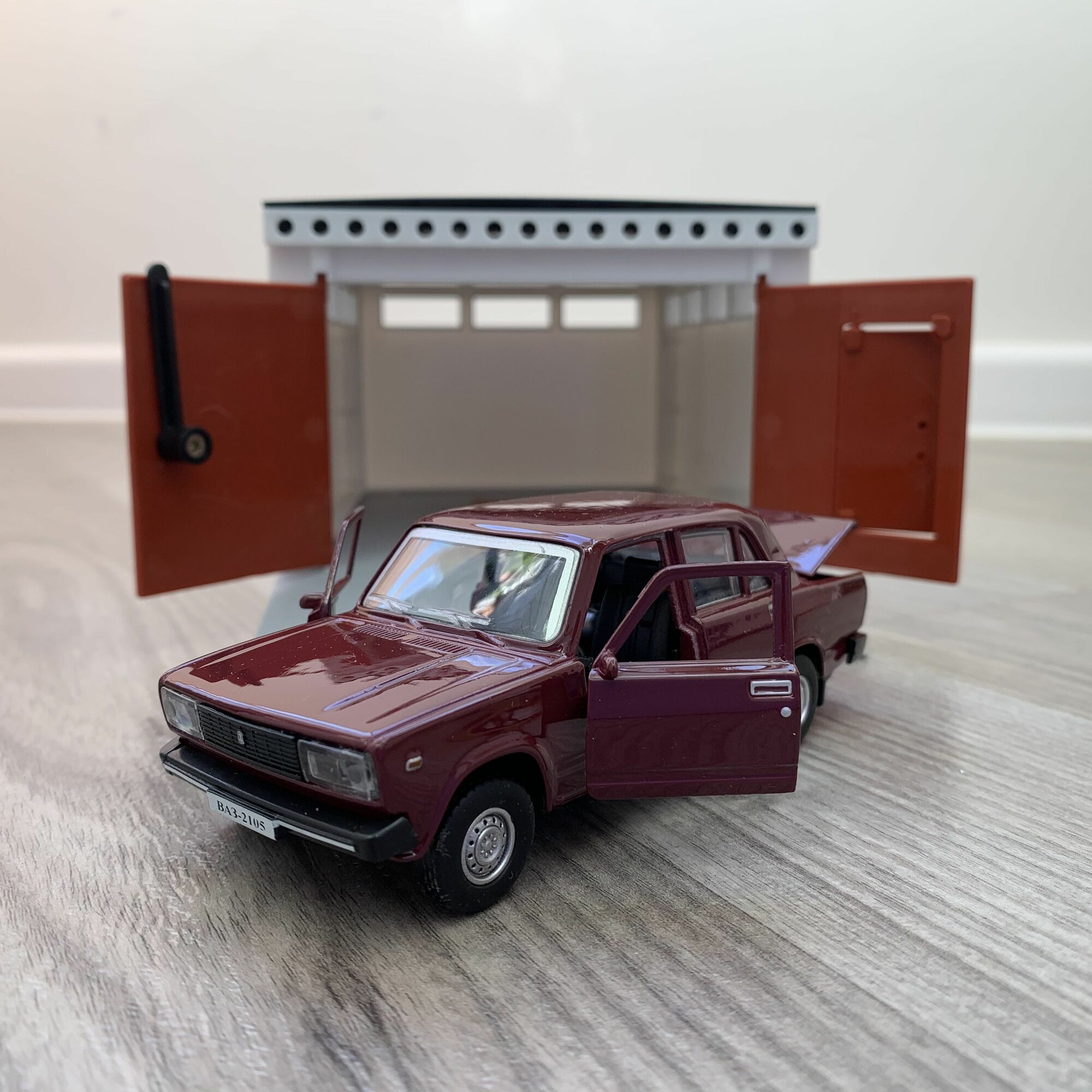 Купить Гараж + машинка модель ВАЗ 2105 (12 см, метал, инерция, открытие 2-х дверей, багажника) - вишневый