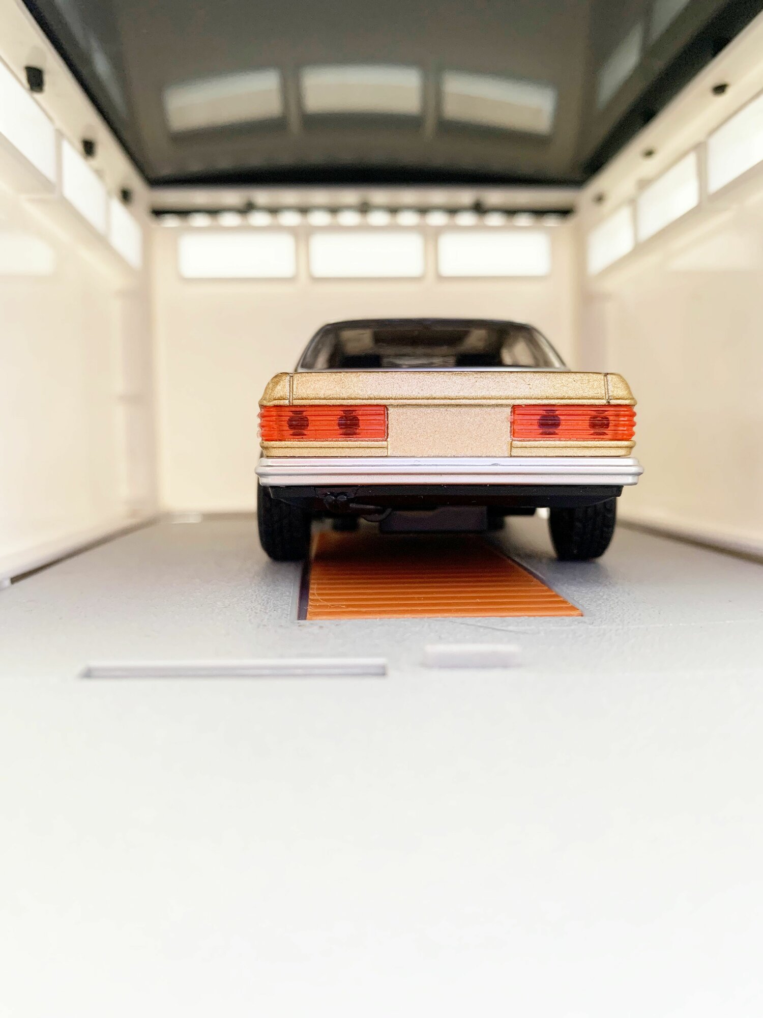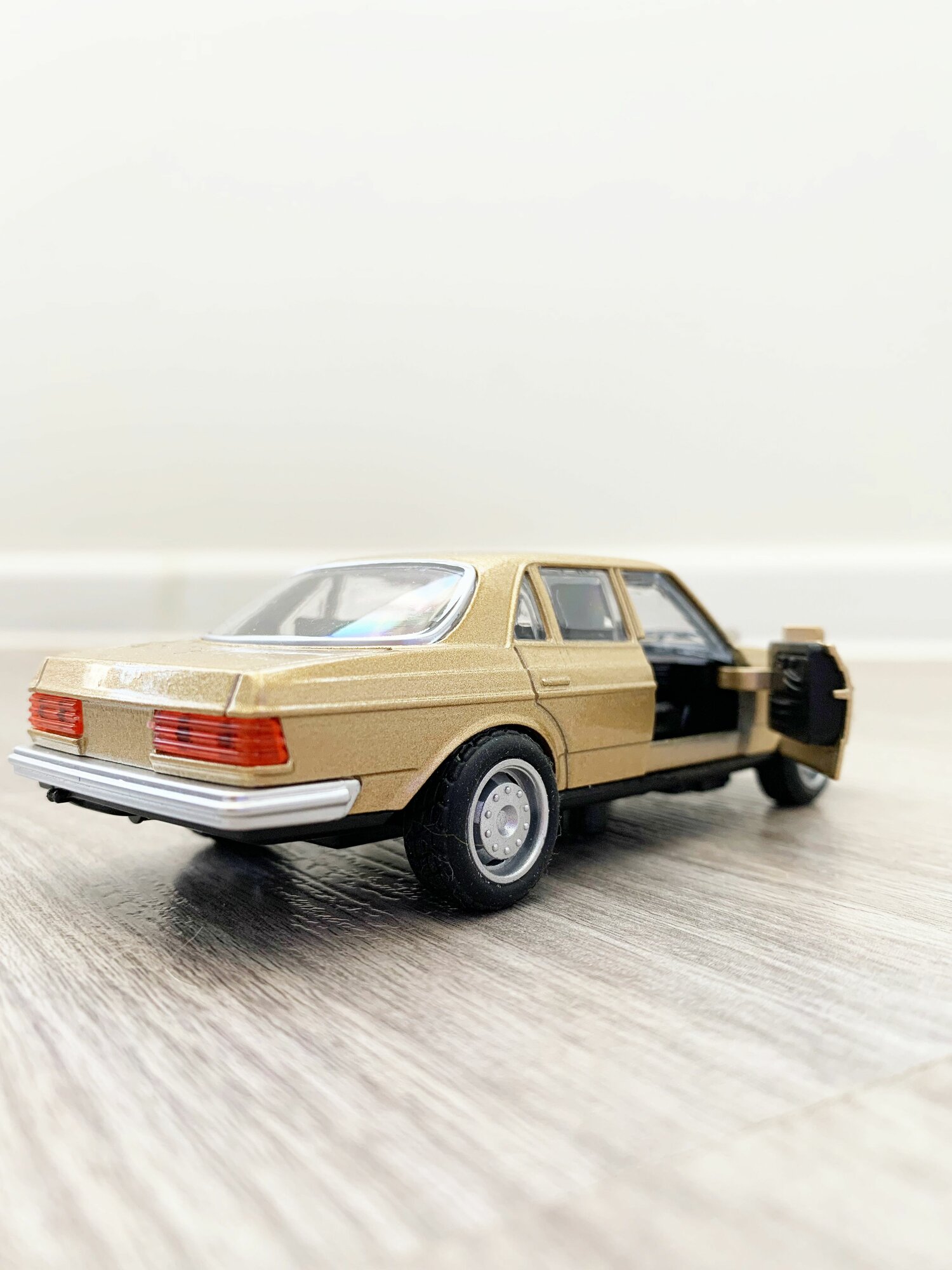 Купить Гараж + Mercedes-Benz W116 (седан, 12 см, метал, инерц, откр. 2-х дверей) - золотой
