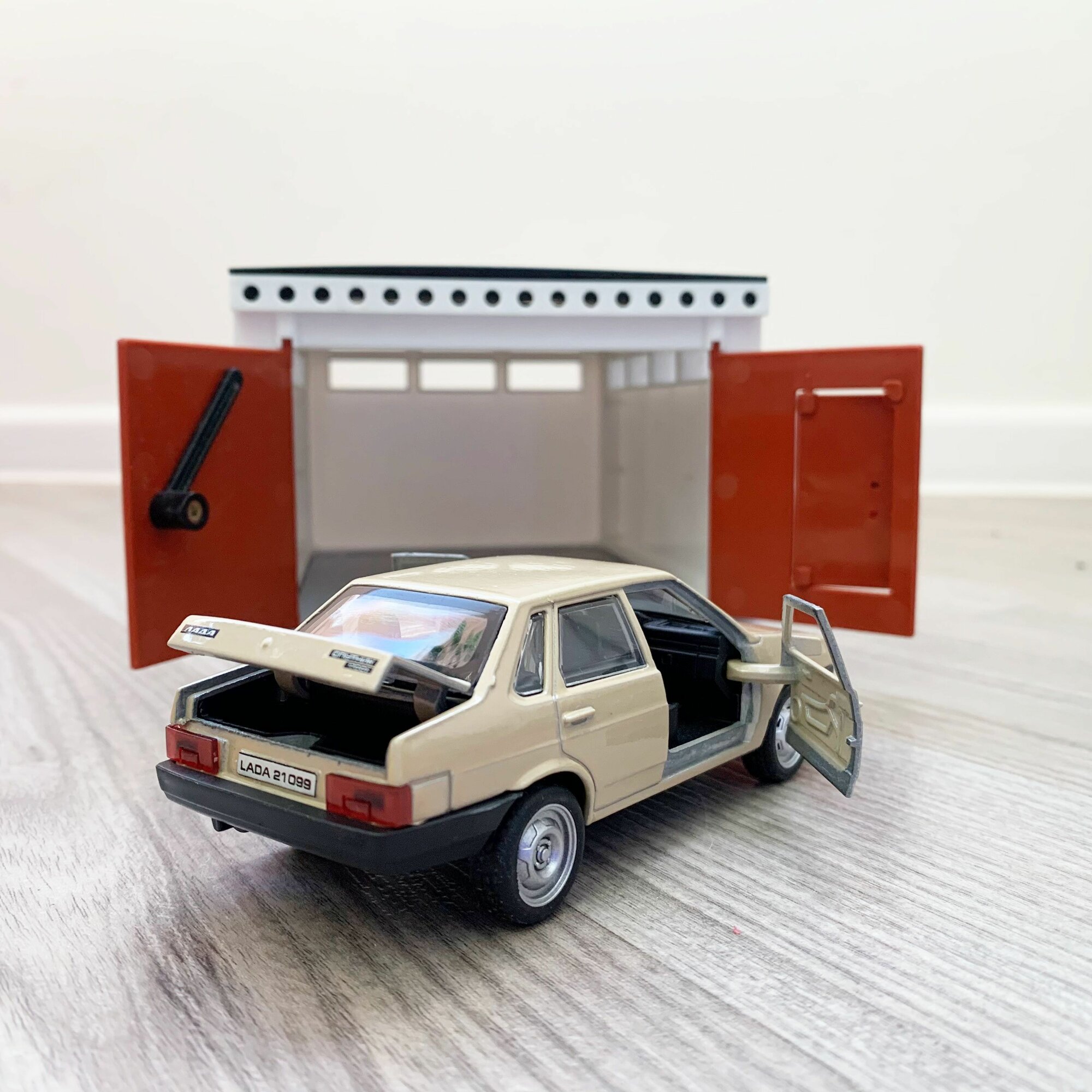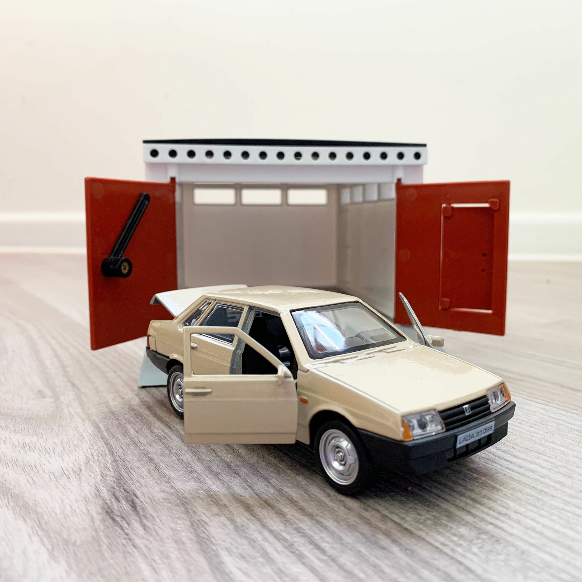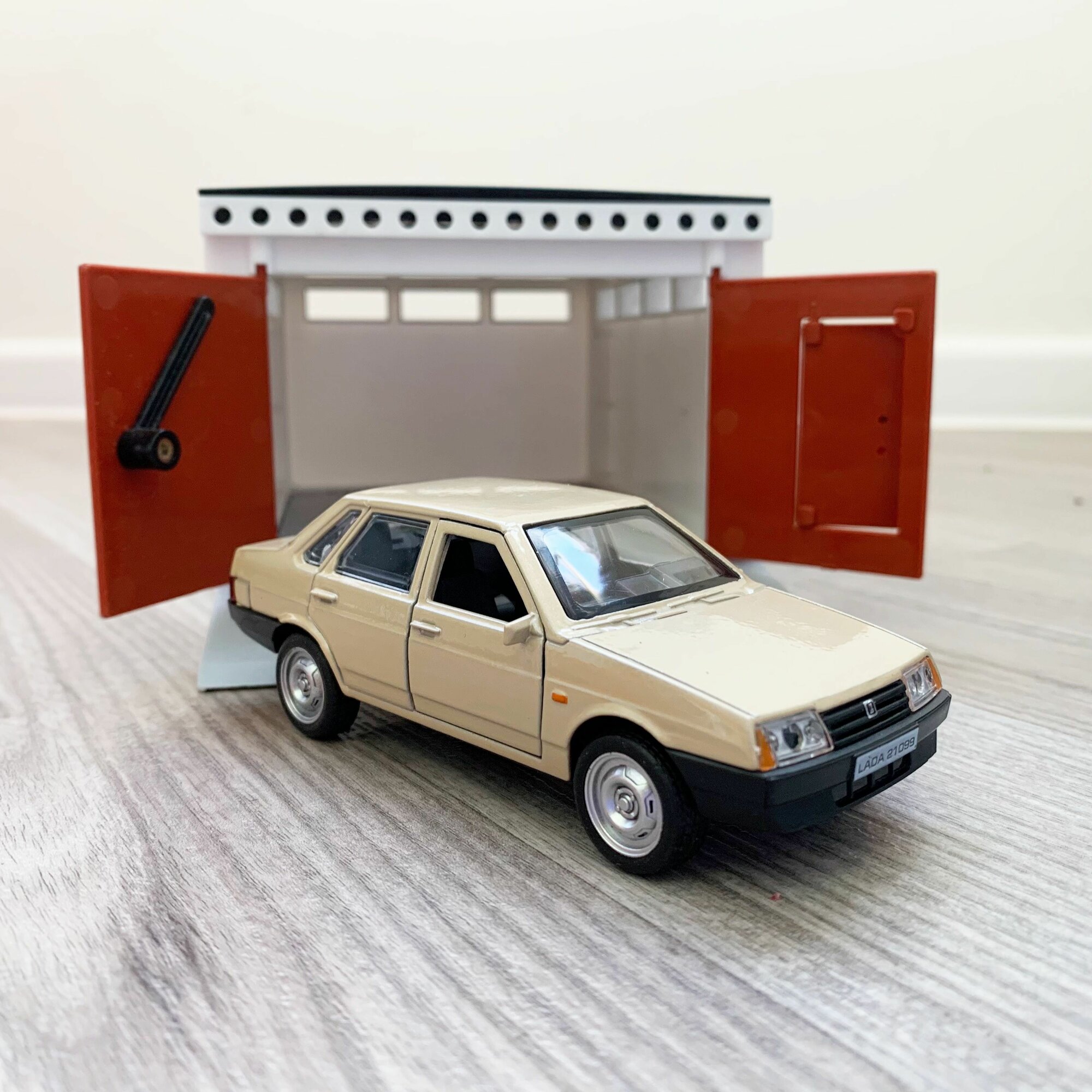 Купить Гараж + машинка модель LADA 21099 (12 см, метал, инерция, откр. 2-х дверей и багажника) - бежевая