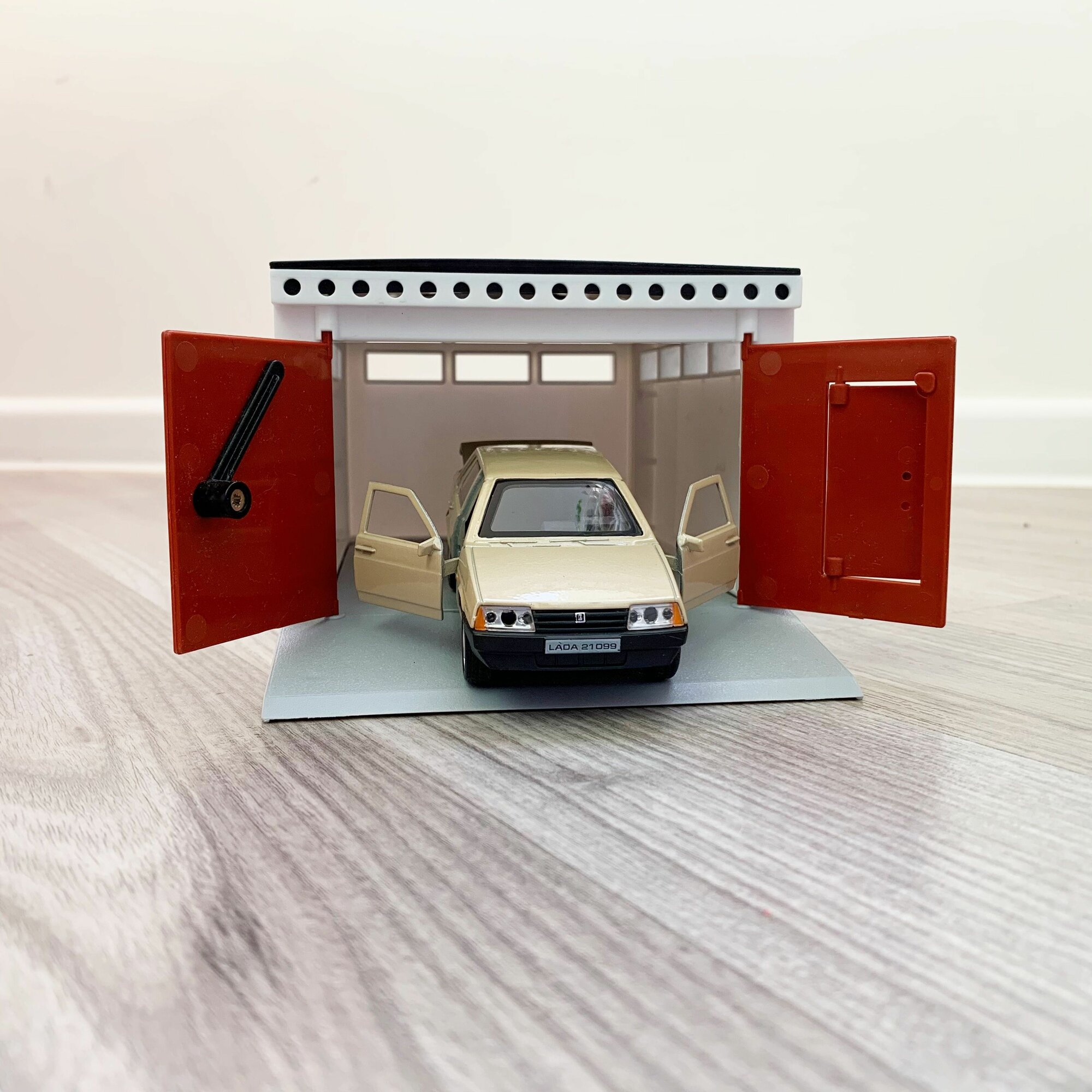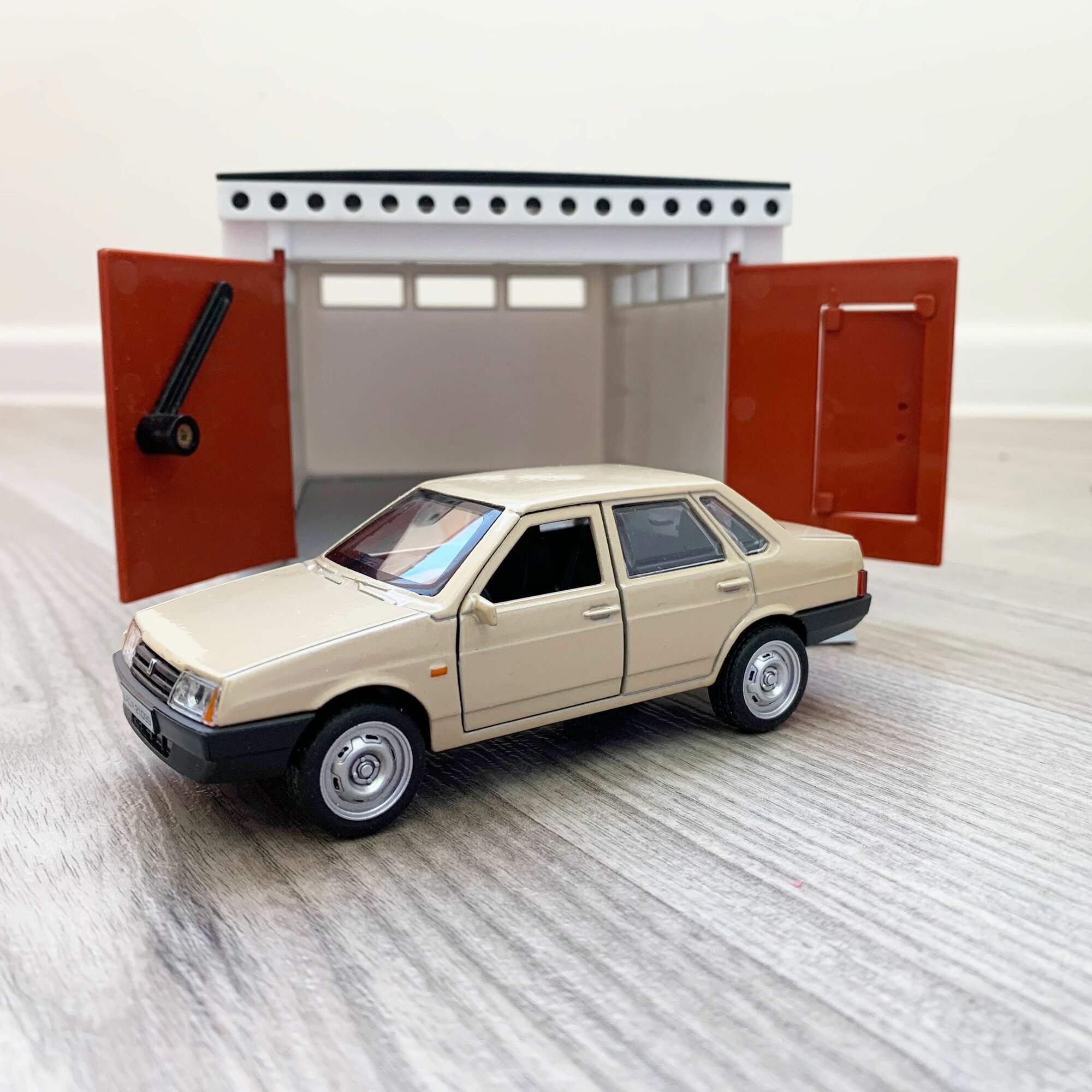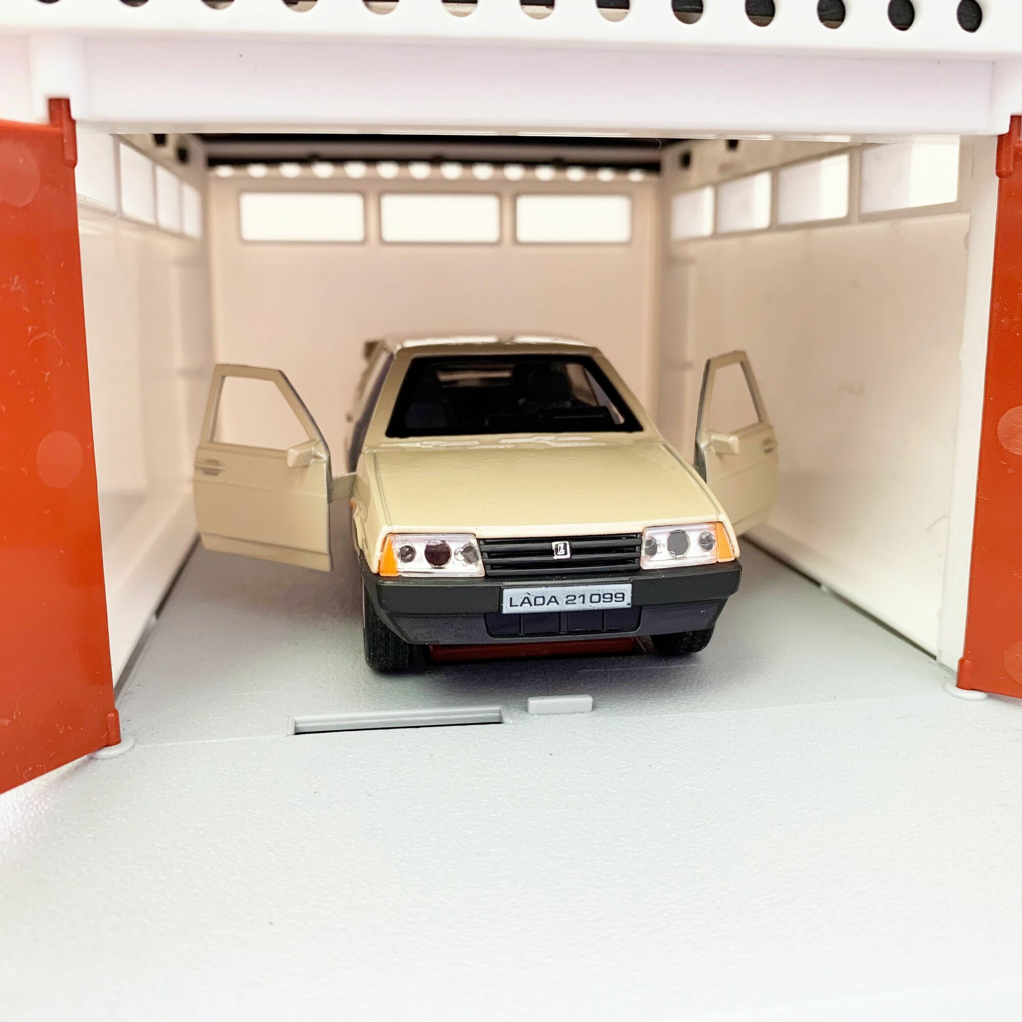 Купить Гараж + машинка модель LADA 21099 (12 см, метал, инерция, откр. 2-х дверей и багажника) - бежевая