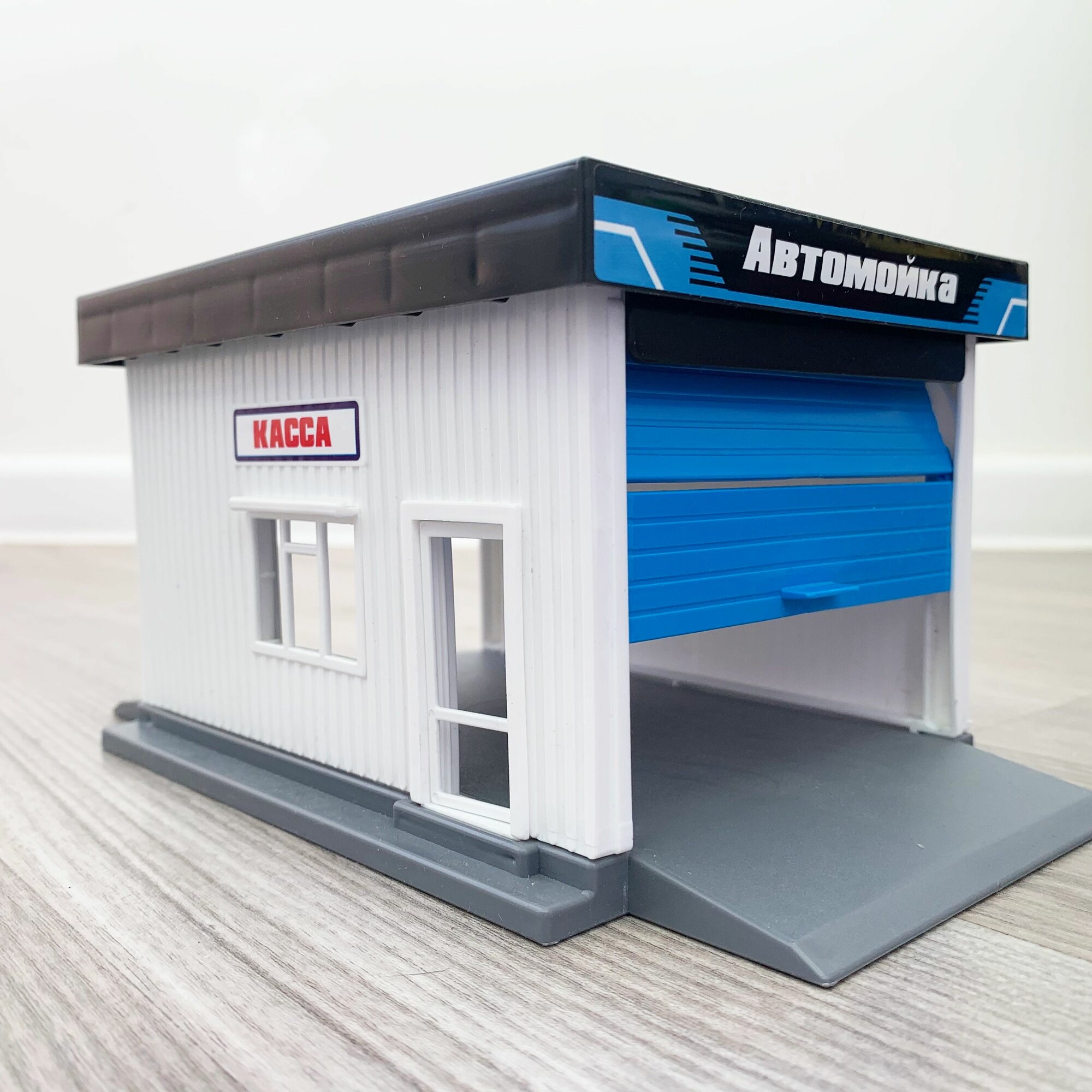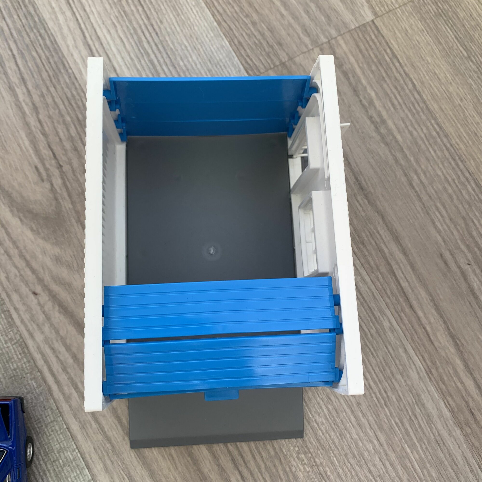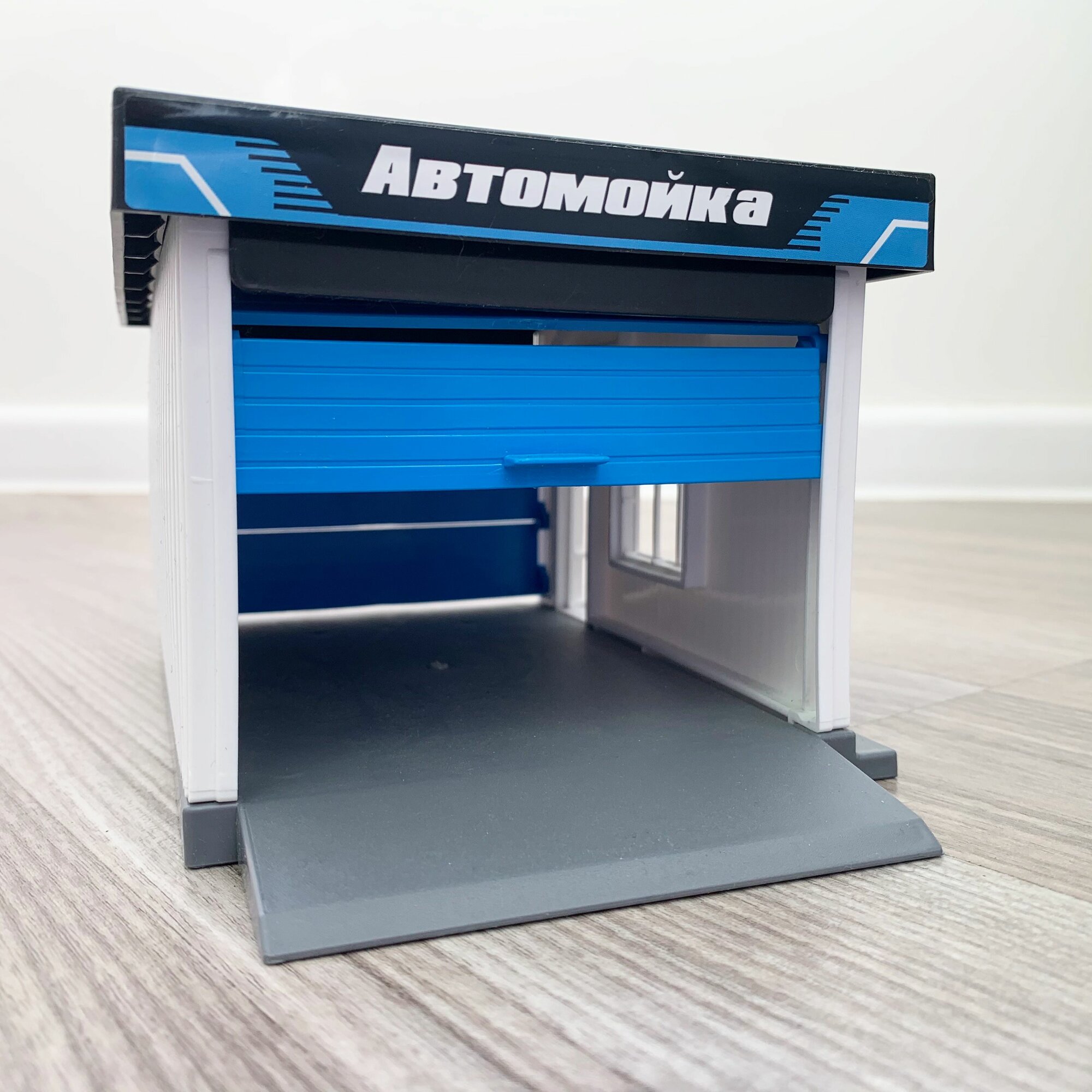 Гараж с 2-мя воротами + машинка пикап (12 см, пластик, инерция) / Полесье синий интересное: