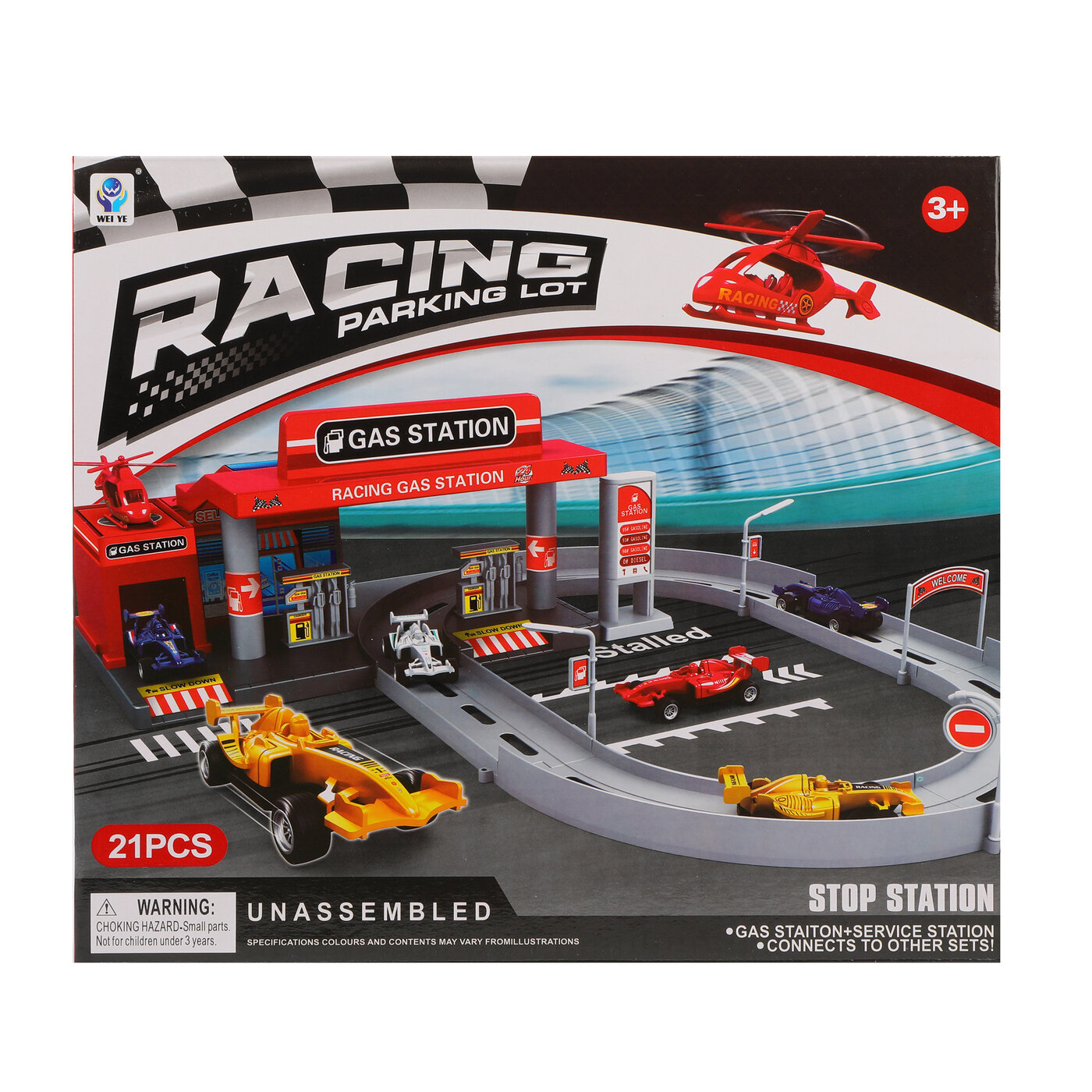Купить Игровой набор парковка "Автозаправочная станция" 5599-64A, 17 деталей, 3 машинки