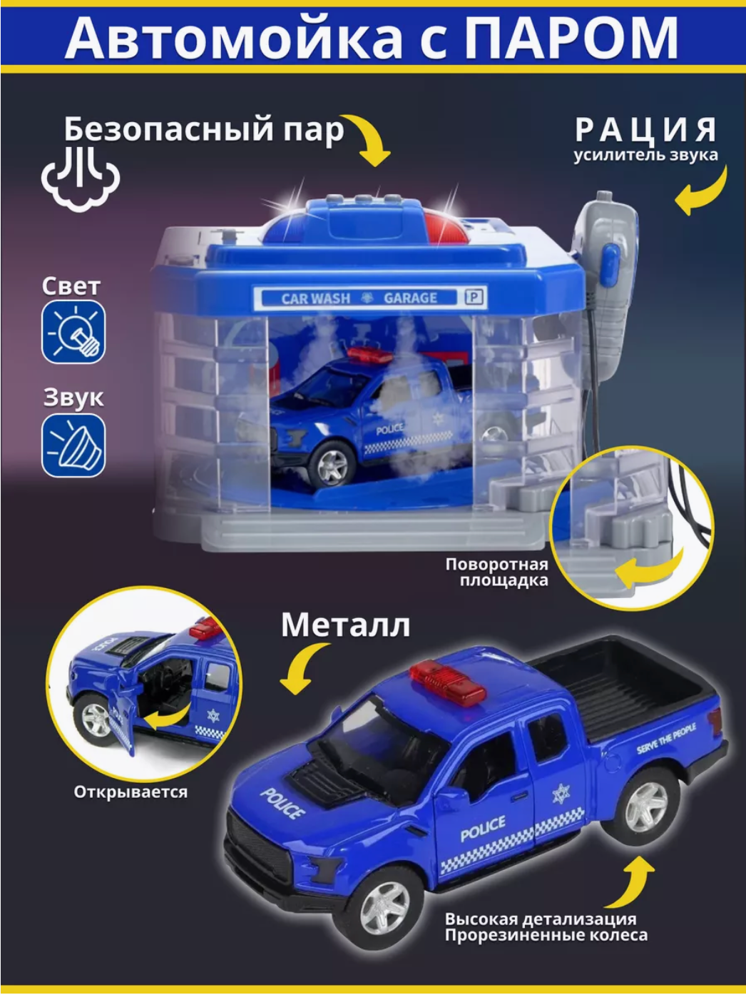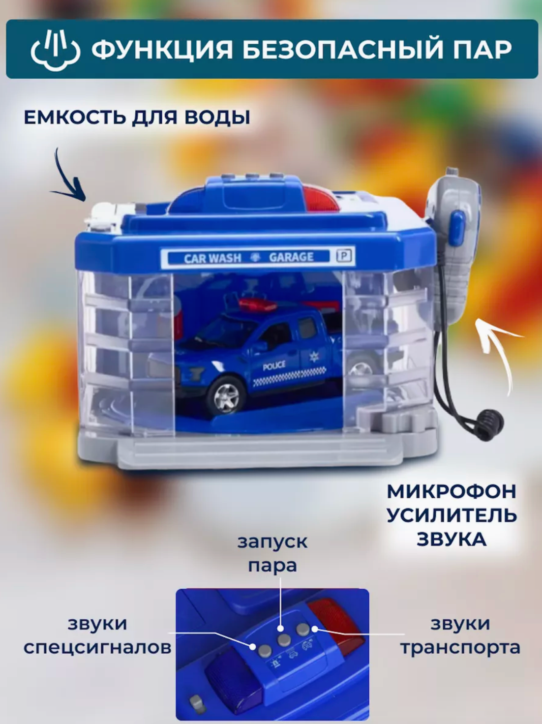 Игровой набор «Автомойка с эффектами света и звука» от бренда Mari Toys модель CLM-888 интересное: