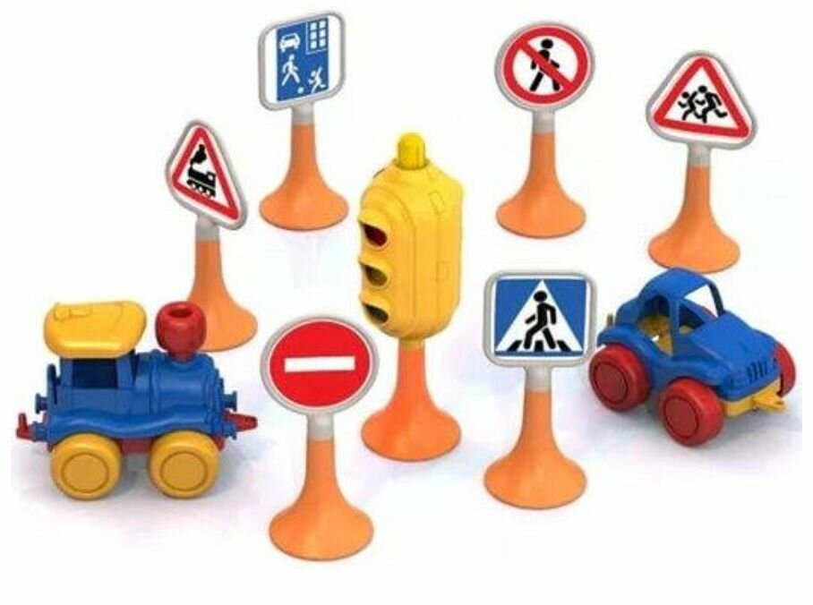 Набор Нордпласт Дорожные знаки №2, светофор, 3 знака и машинка 886 интересное: