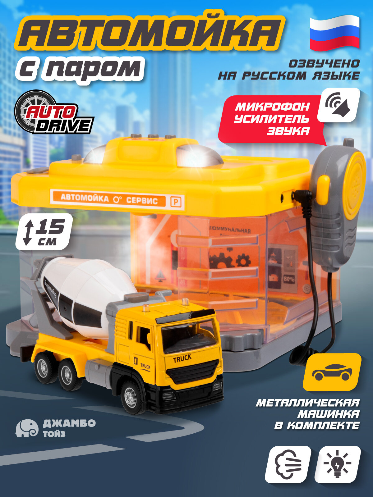 Автомойка с паром, металлическая машинка, свет, звук, JB0404639 интересное: