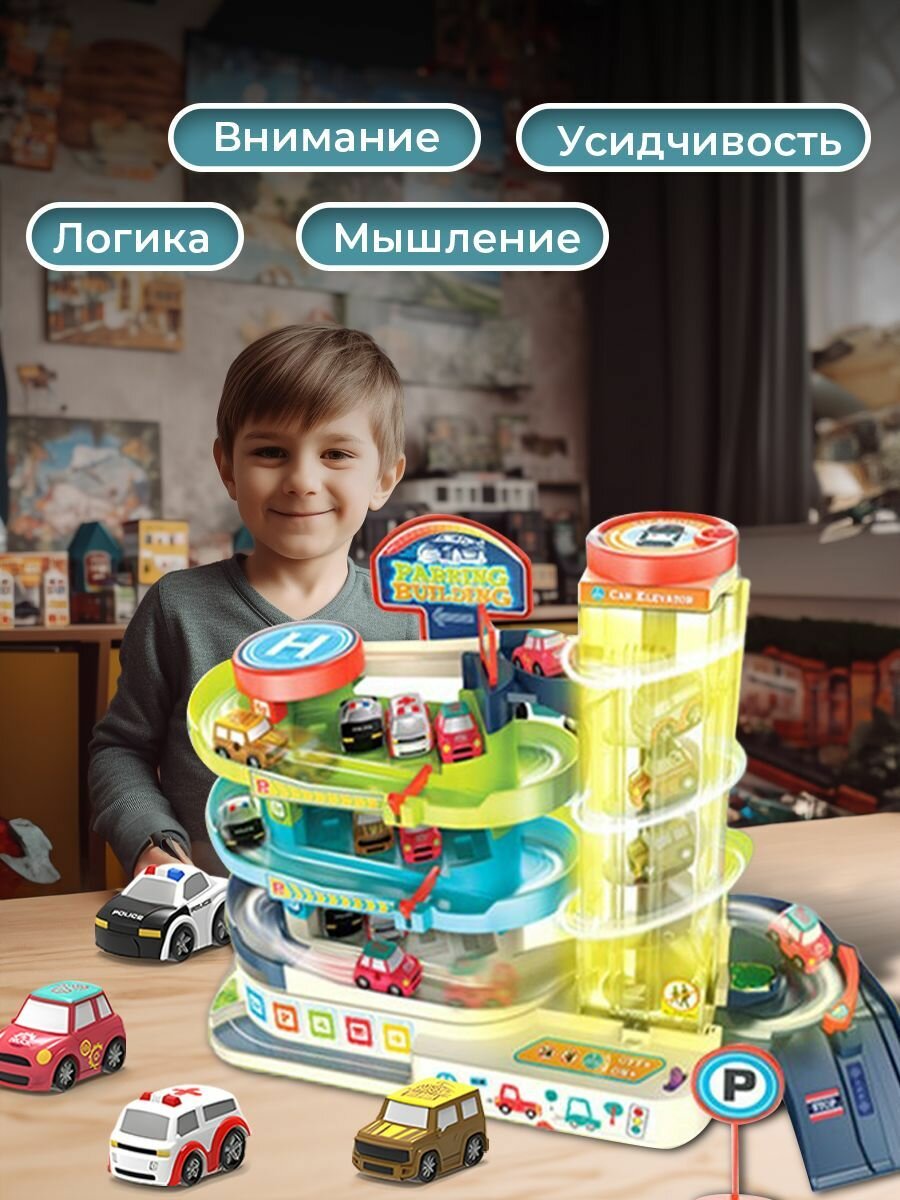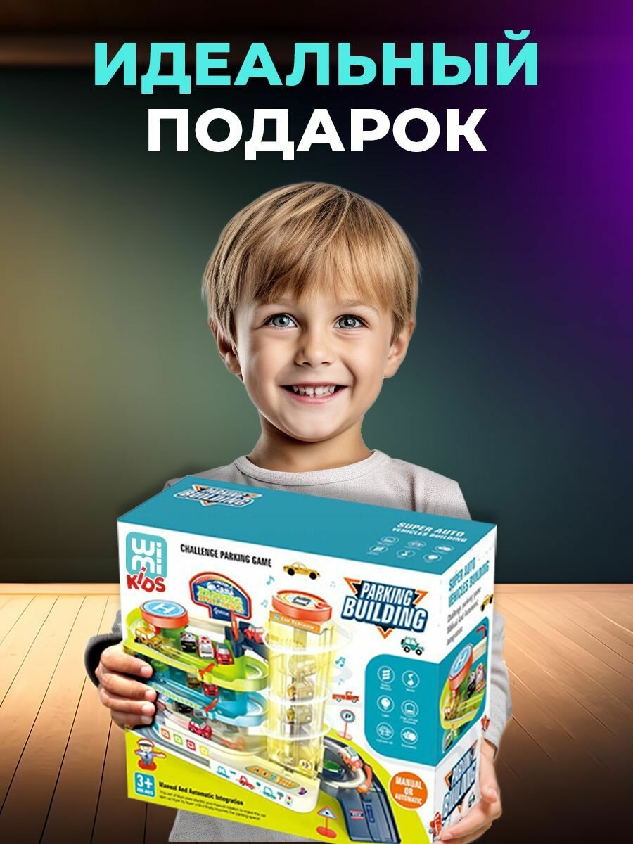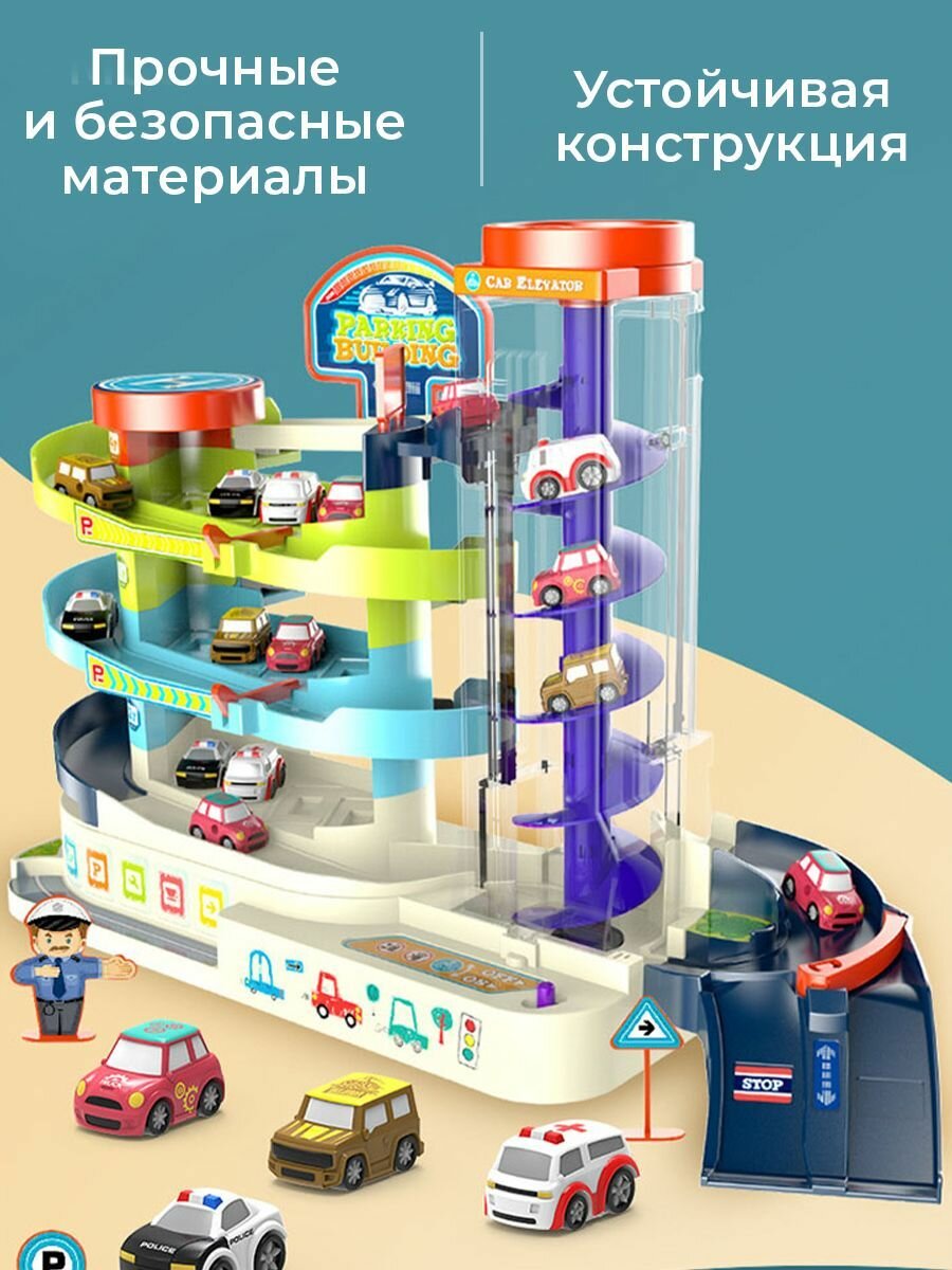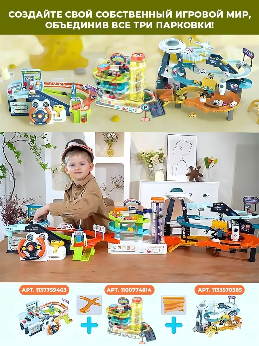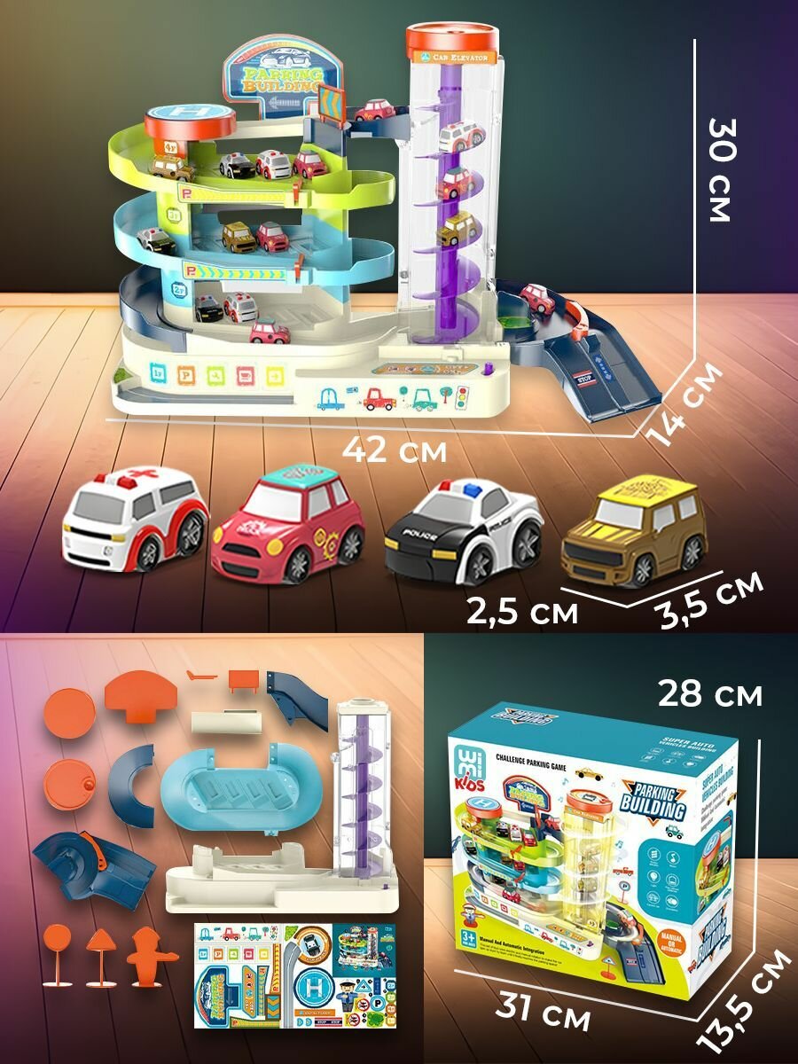 Купить Гоночный автотрек с машинками WiMi, парковка с лифтом, гараж