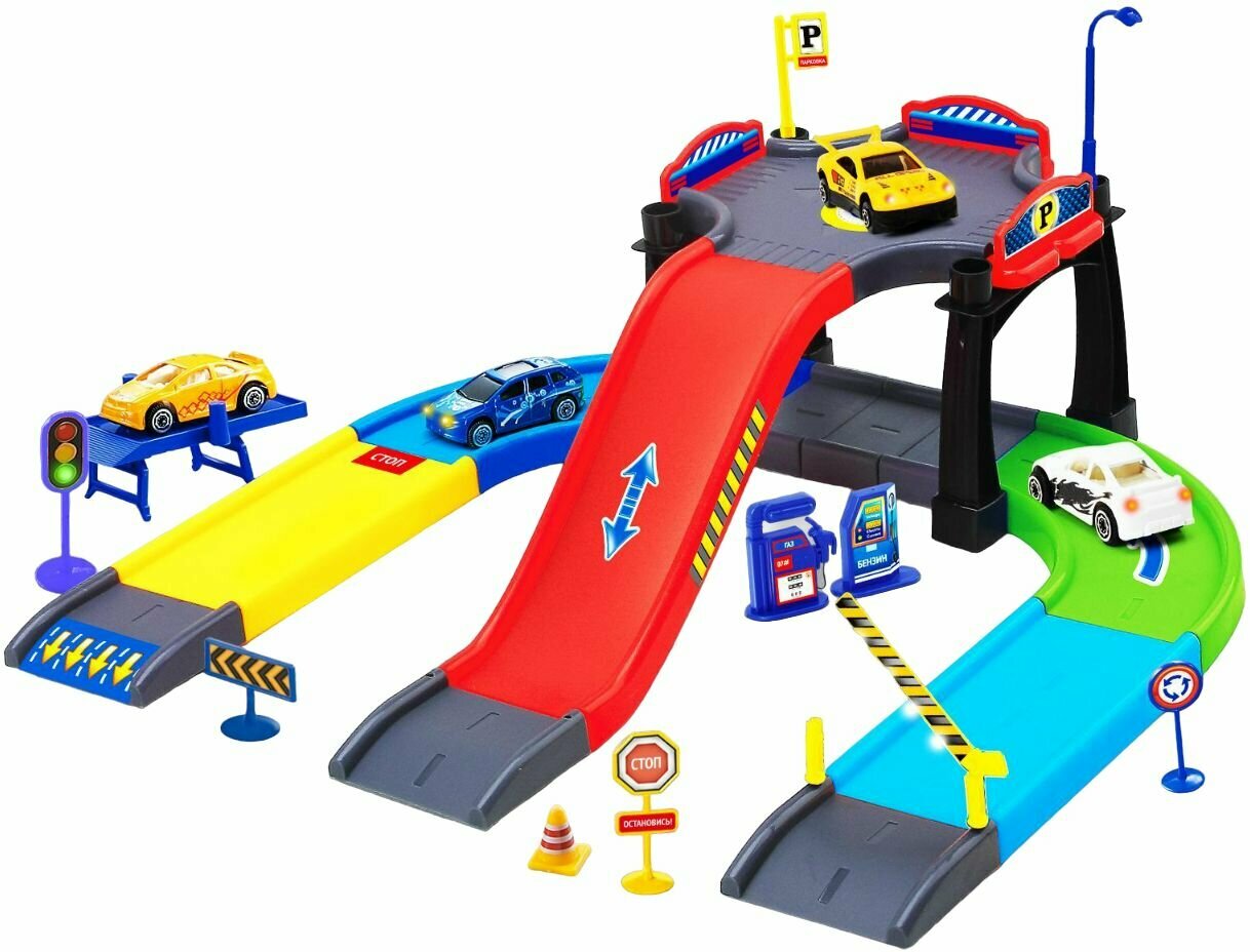Купить Детский игровой автотрек-парковка "Город" многоуровневый, машинка в наборе