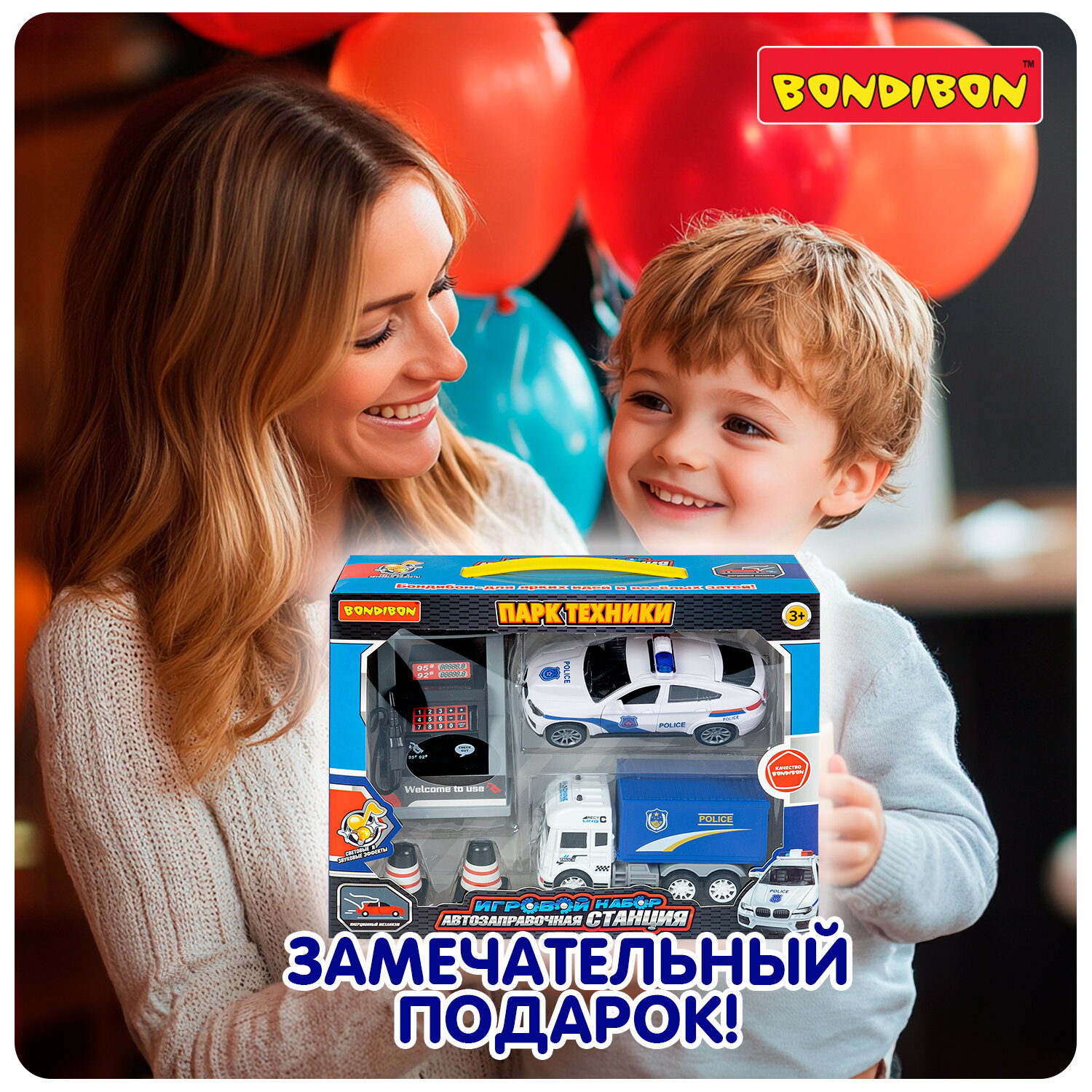Игровой набор Bondibon Автозаправочная станция Полиция, инерционная машинка интересное: