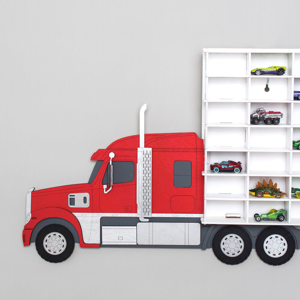 Полка парковка для машинок на 49 ячеек - масштаб 1:64 - трак красный интересное: