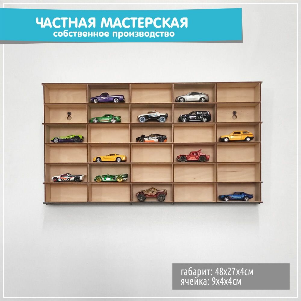 Полка для машинок - 30 мест. Деревянная парковка настенная. Без покраски. интересное: