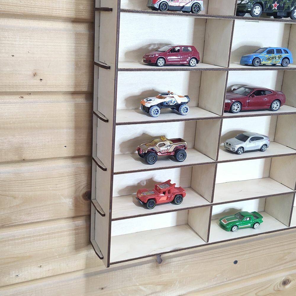 Полка для машинок до 15см - 32 места, деревянная парковка - конструктор без клея. интересное: