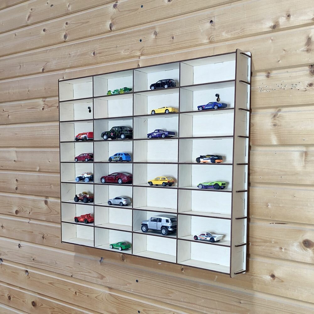 Купить Полка для машинок до 15см - 32 места, деревянная парковка - конструктор без клея.